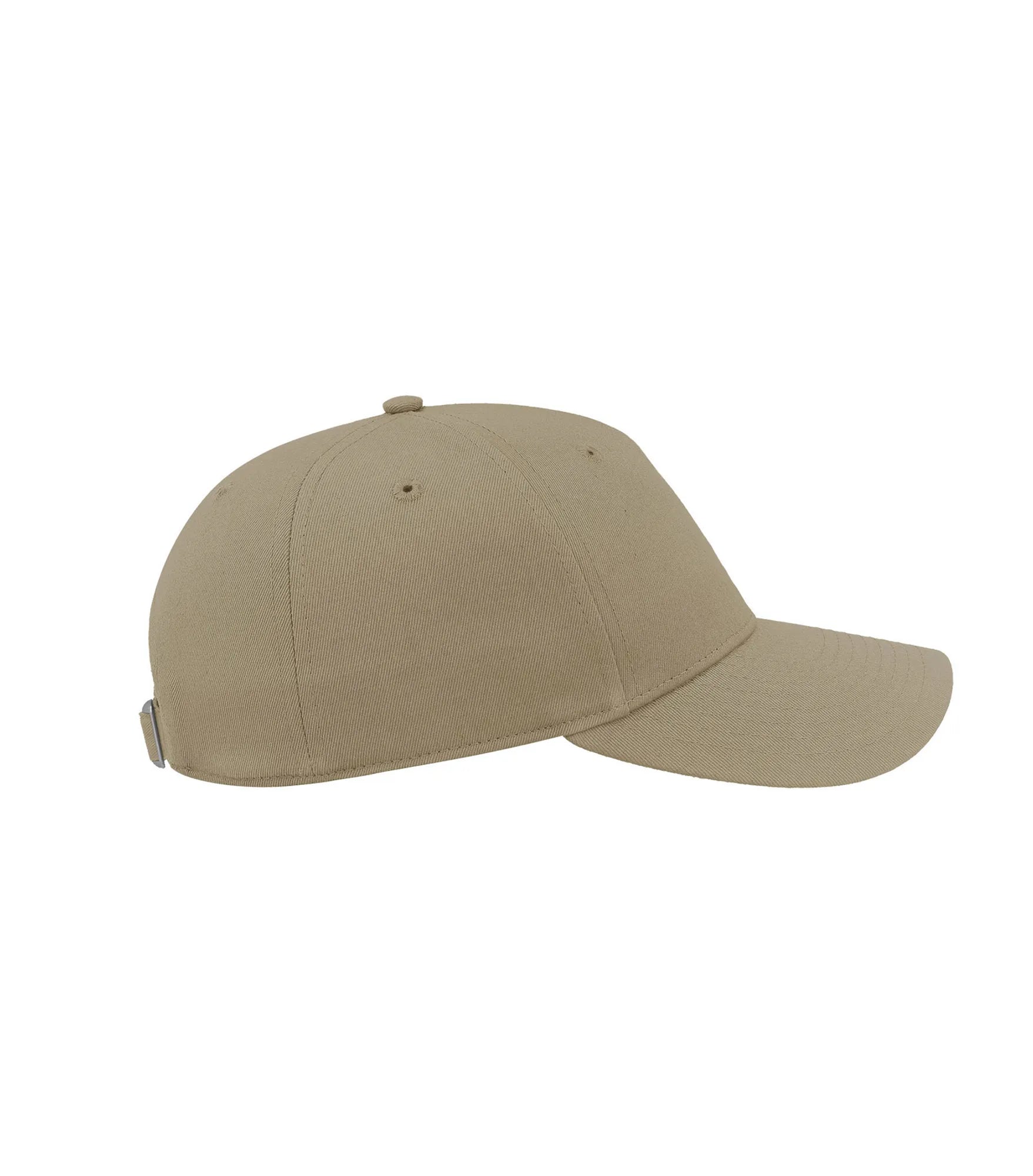 Keps i ekologisk och återvunnen bomull, perfekt för profilering, tack vare den breda 5-panelsfronten. Det justerbara metallspännet ger en ren och tidlös look, medan återvunnen buckram och böjd skärm med ReTraze®-återvunnen insida gör kepsen extra hållbar. Utrustad med sydda öljetter och svettband i samma tyg för en enhetlig finish.