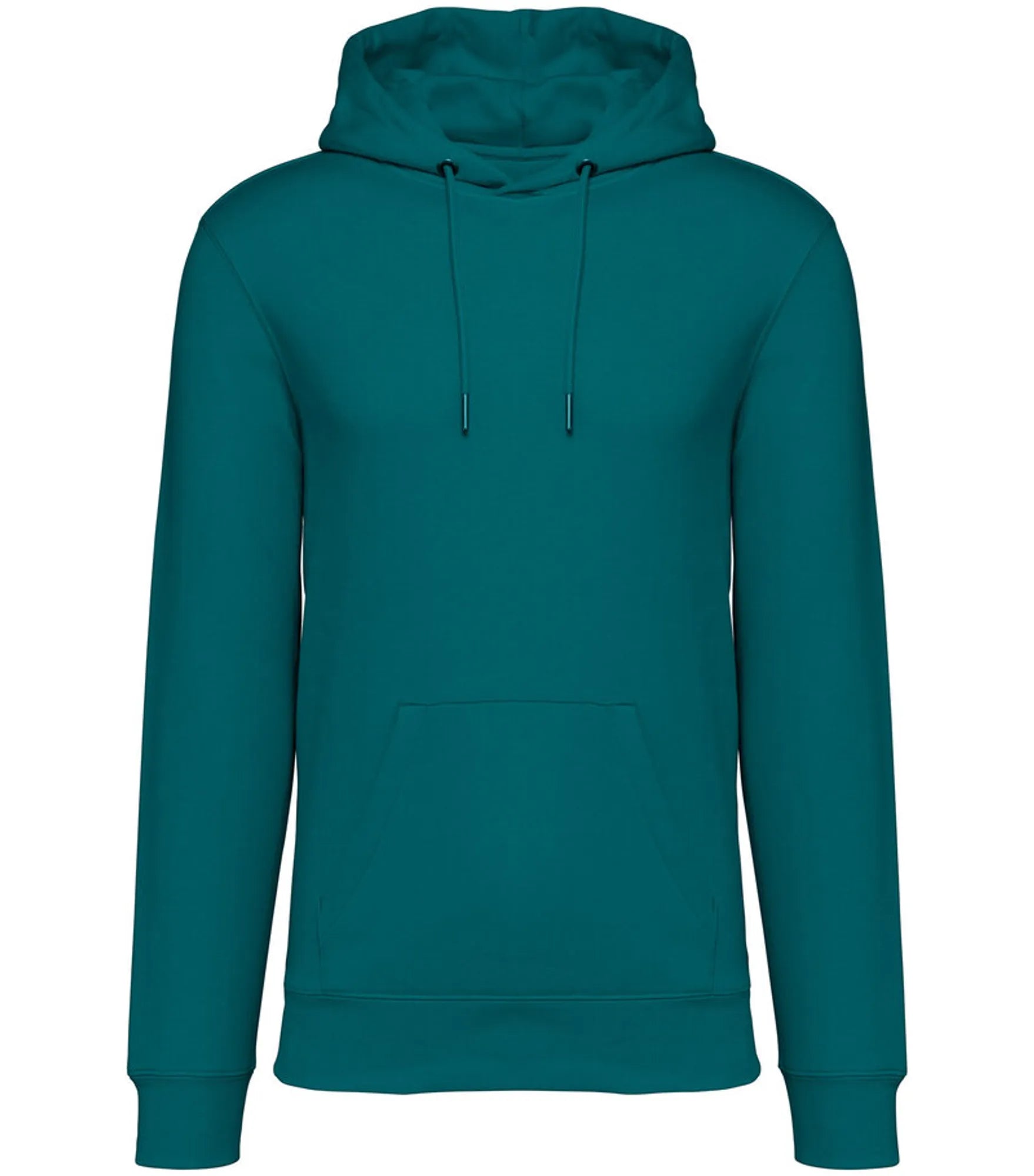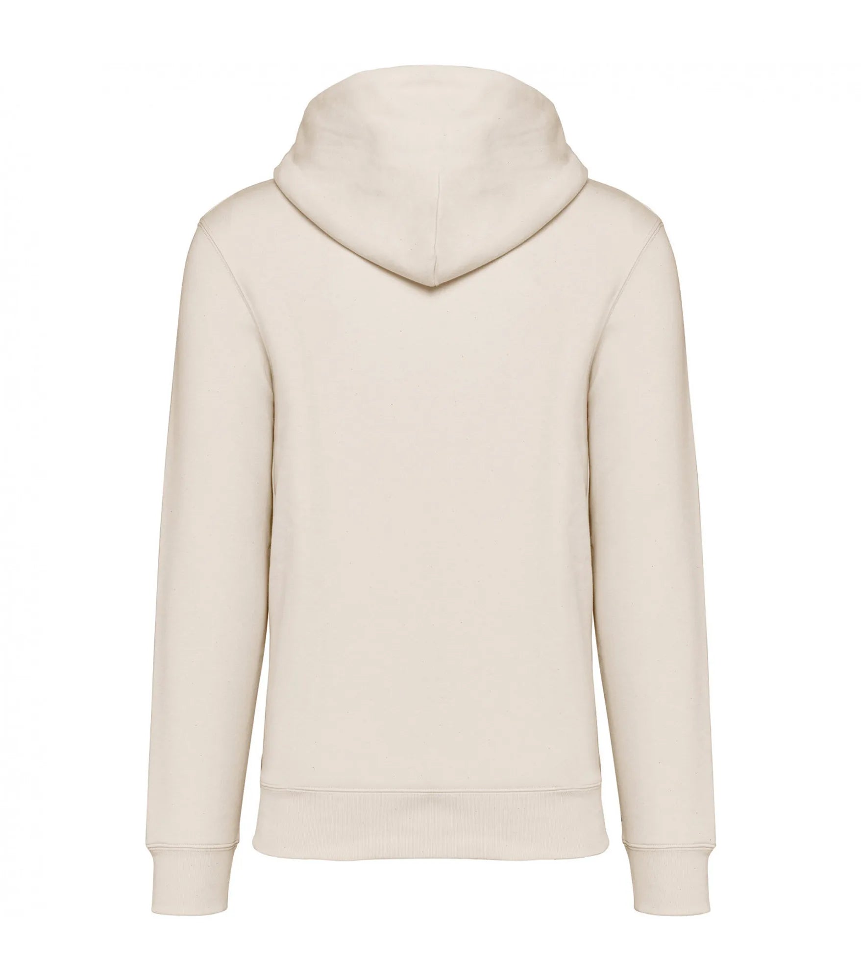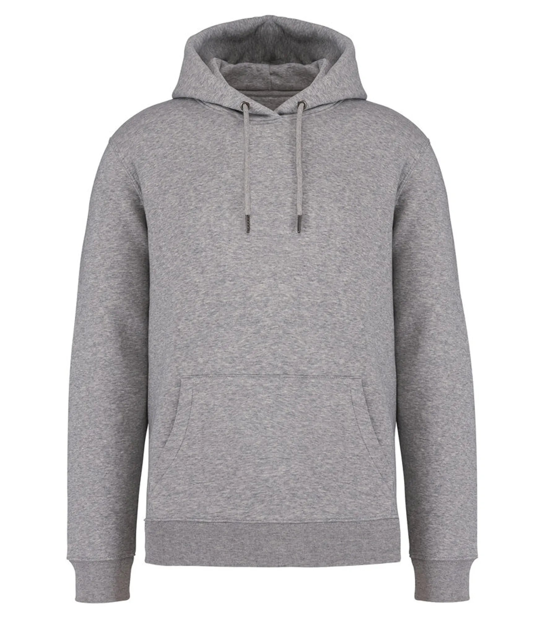 Unisex hoodie tillverkad av ekologisk ringspunnen kammad bomull och återvunnen polyester. 3 lagers borstat LSF-behandlat (Low Shrinkage Fleece: pre-shrunk fleece) tyg. Rak modell. Fodrad huva med dragsko. Runt dragsko med spetsar och öljetter av återvunnen metall. Känguruficka. 1x1 ribbstickning vid nederkant och ärmslut. Dubbla översömmar på ärmslut, ärmhål och nederkant. Halvmåne bak och inre tejpad hals för ökad komfort.