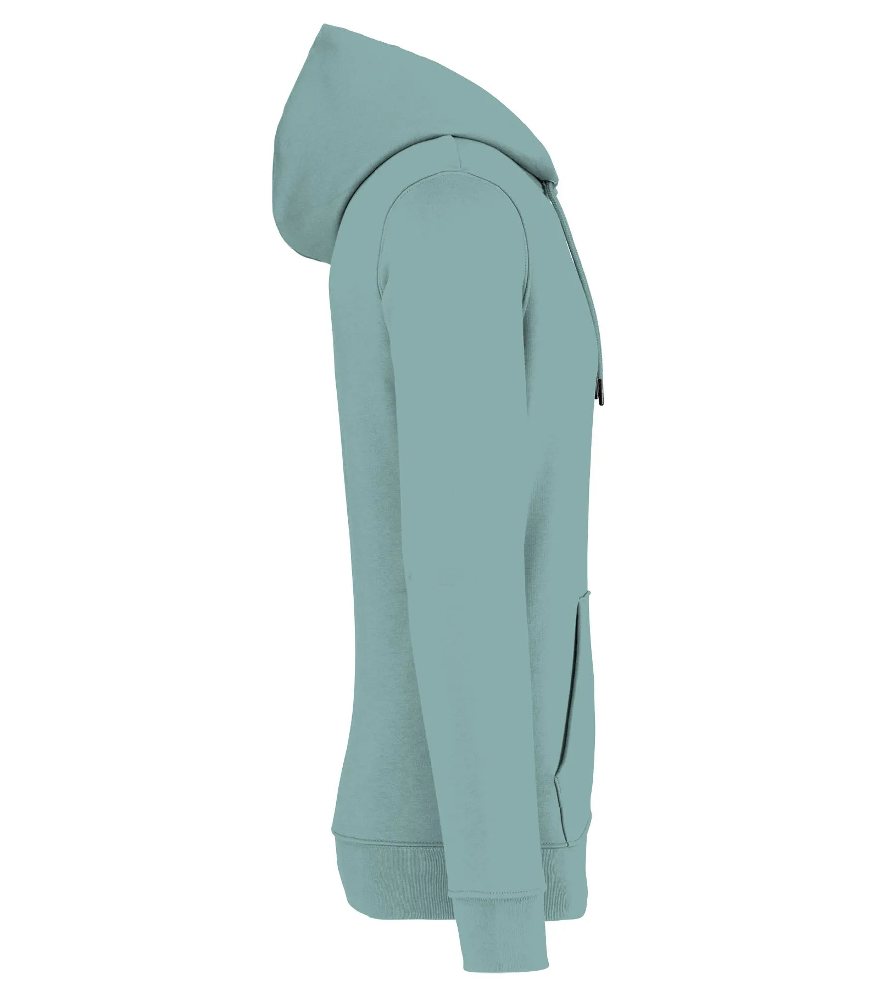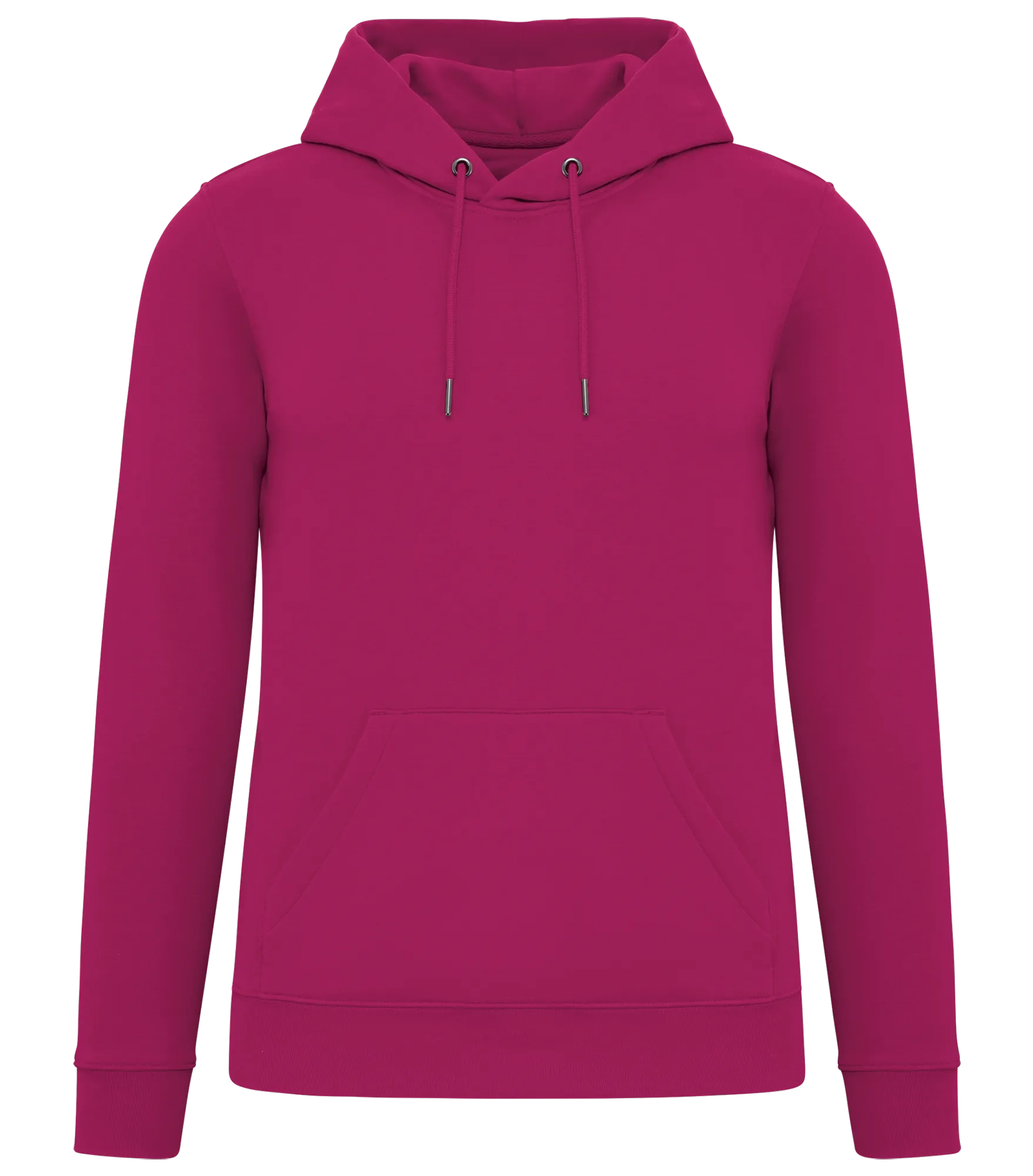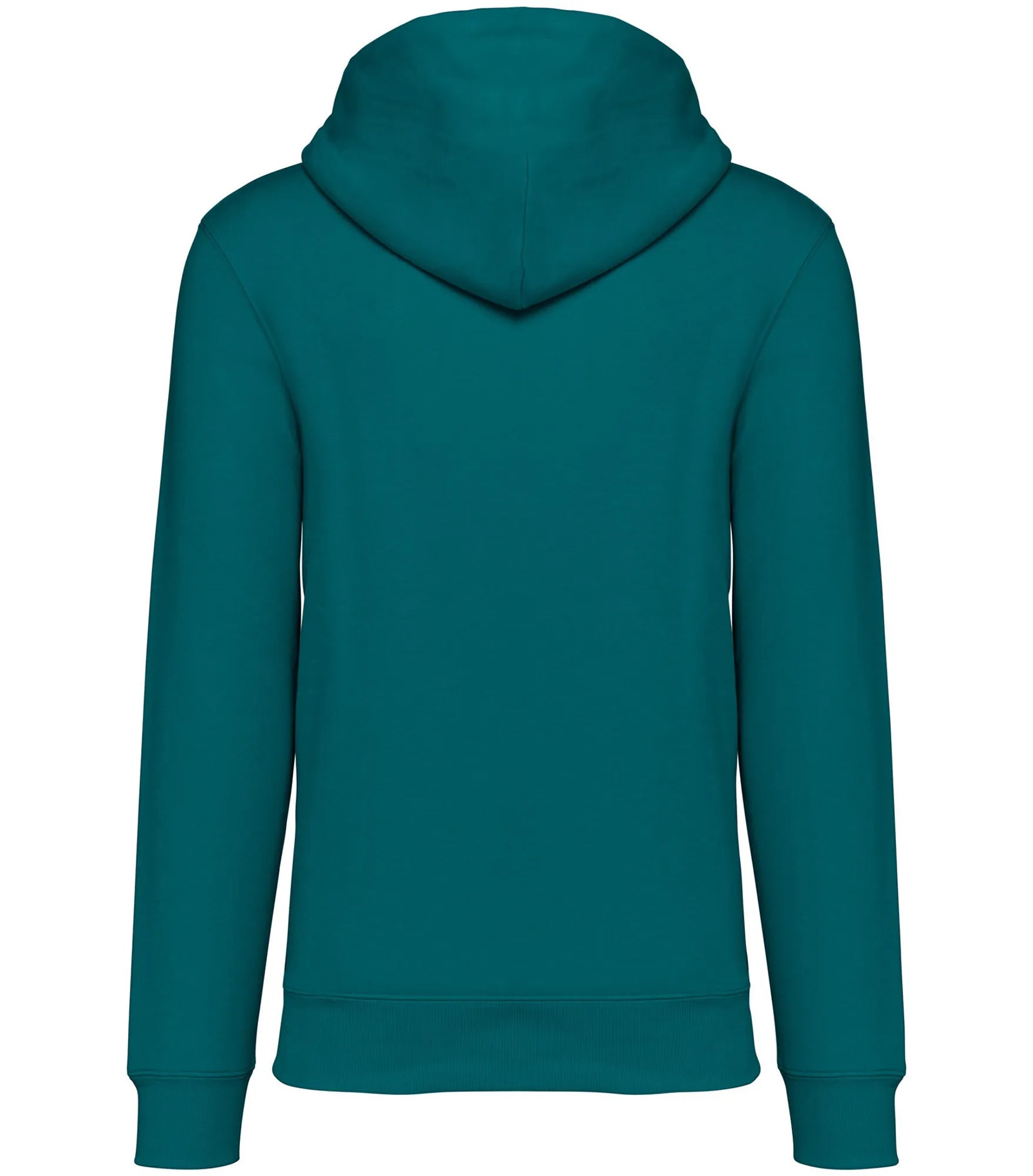 Unisex hoodie tillverkad av ekologisk ringspunnen kammad bomull och återvunnen polyester. 3 lagers borstat LSF-behandlat (Low Shrinkage Fleece: pre-shrunk fleece) tyg. Rak modell. Fodrad huva med dragsko. Runt dragsko med spetsar och öljetter av återvunnen metall. Känguruficka. 1x1 ribbstickning vid nederkant och ärmslut. Dubbla översömmar på ärmslut, ärmhål och nederkant. Halvmåne bak och inre tejpad hals för ökad komfort.