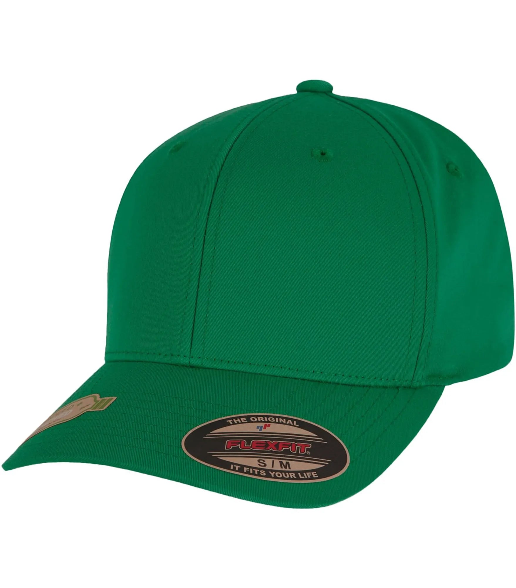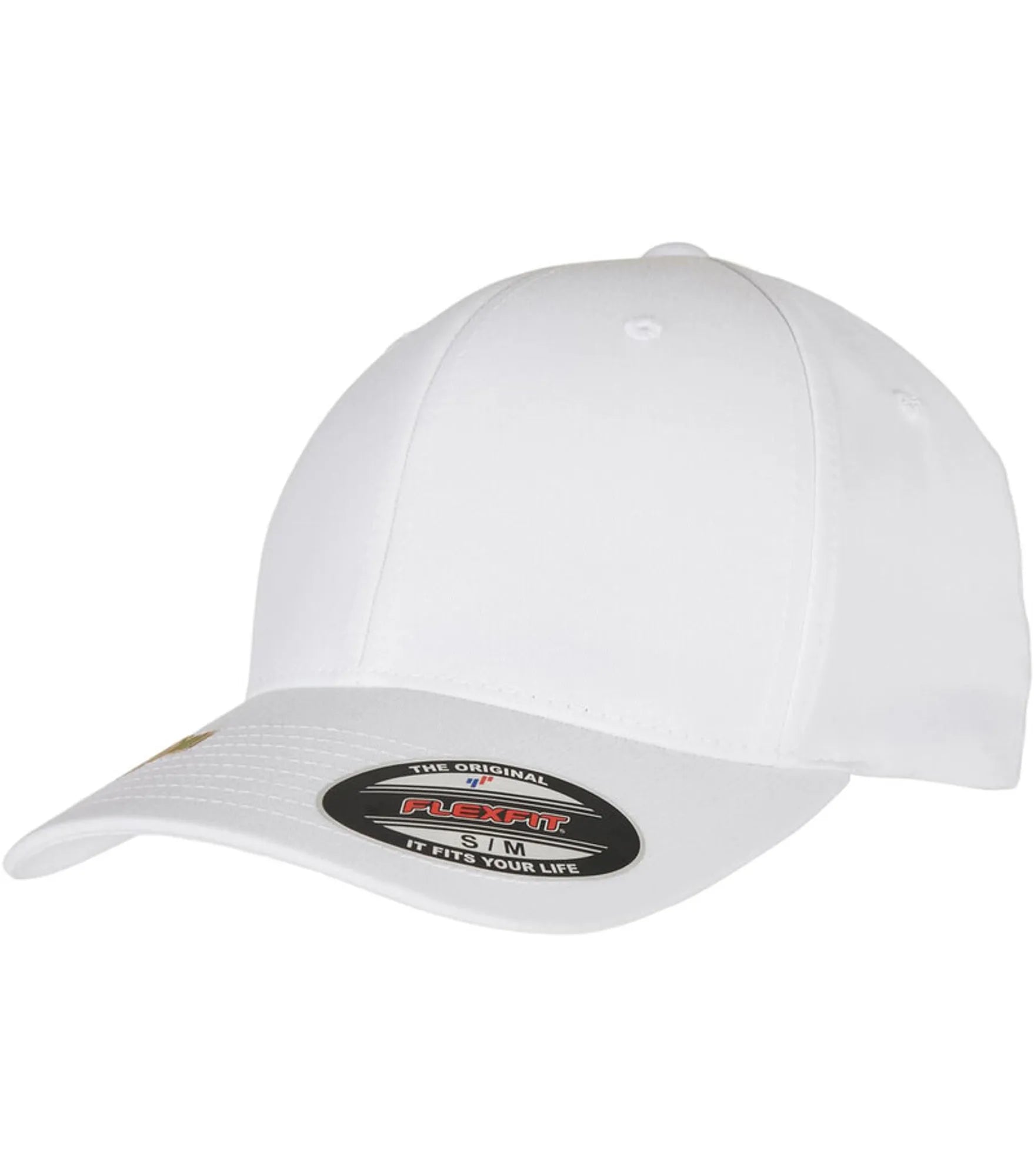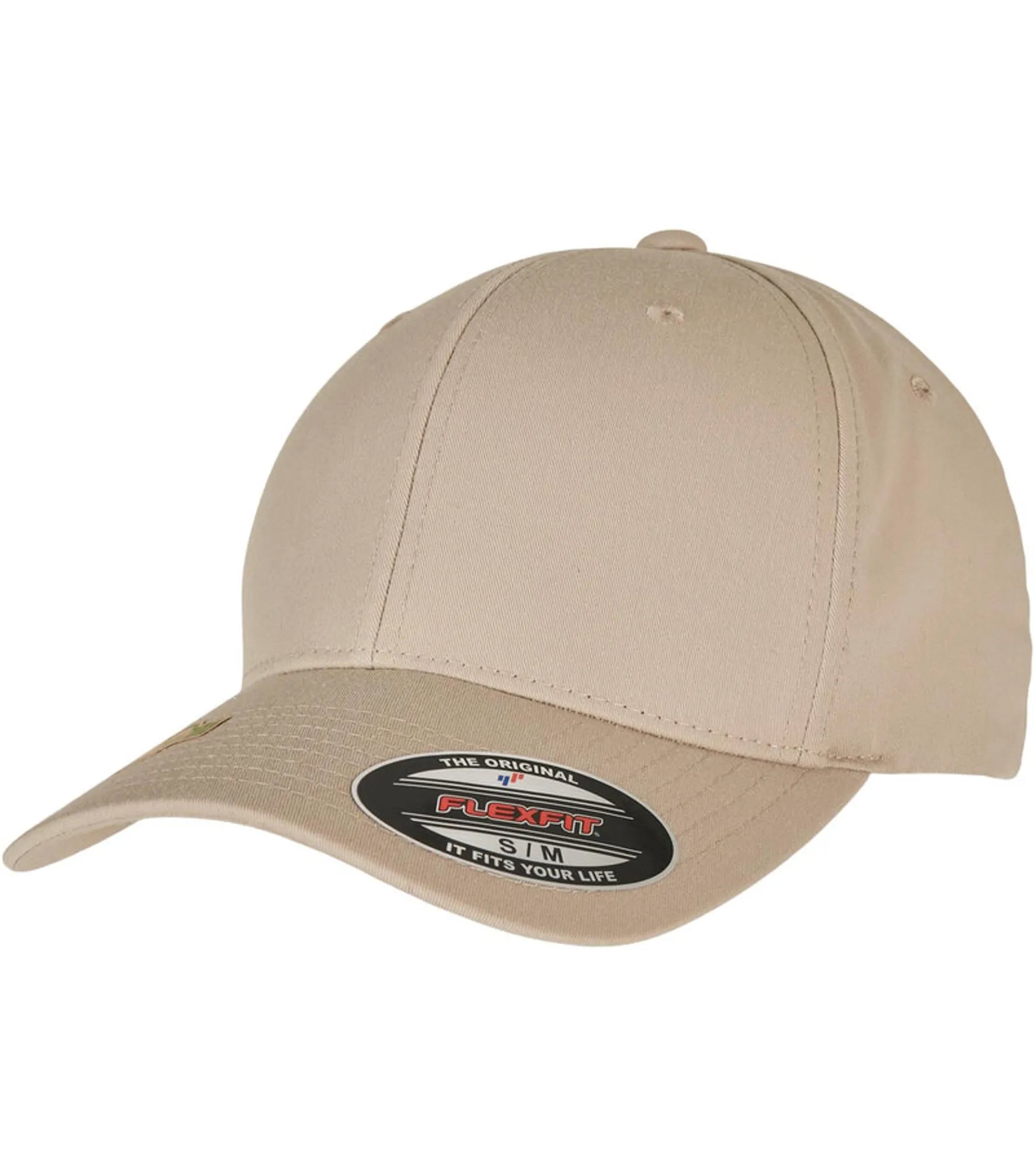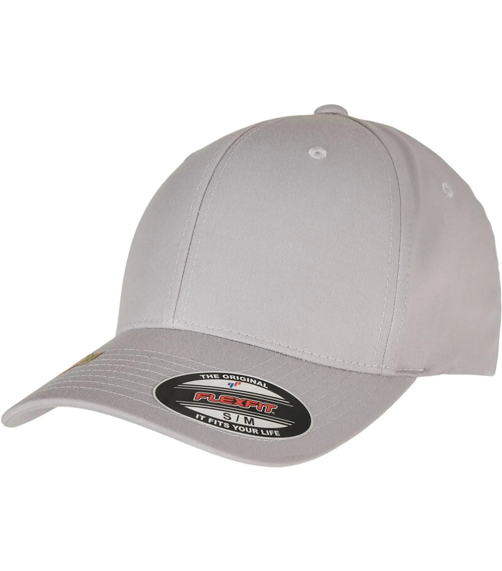 Cap med 6 paneler og bøyd brem, uten spenne (FLEXFIT). Finnes i størrelse S/M og L/XL.