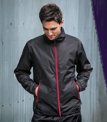 Vindjacka med sportiga och snygga detaljer. Dragkedjor i kontrastfärg. Modellen är medelkort och är fodrad med finmaskig mesh. Yttertyg i vattenavvisande ripstop liknande material vilket ger jackan ett levande intryck. Två fickor fram och innerficka.
