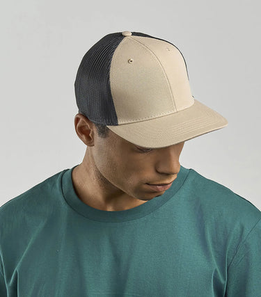 Klassisk strukturerad 6-panel truckerkeps i återvunnen polyestertwill. Ventilerande mesh i återvunnet material som håller dig sval samt justerbar snapback-stängning i återvunnen plast. Perfekt för sommaren eller på resan.