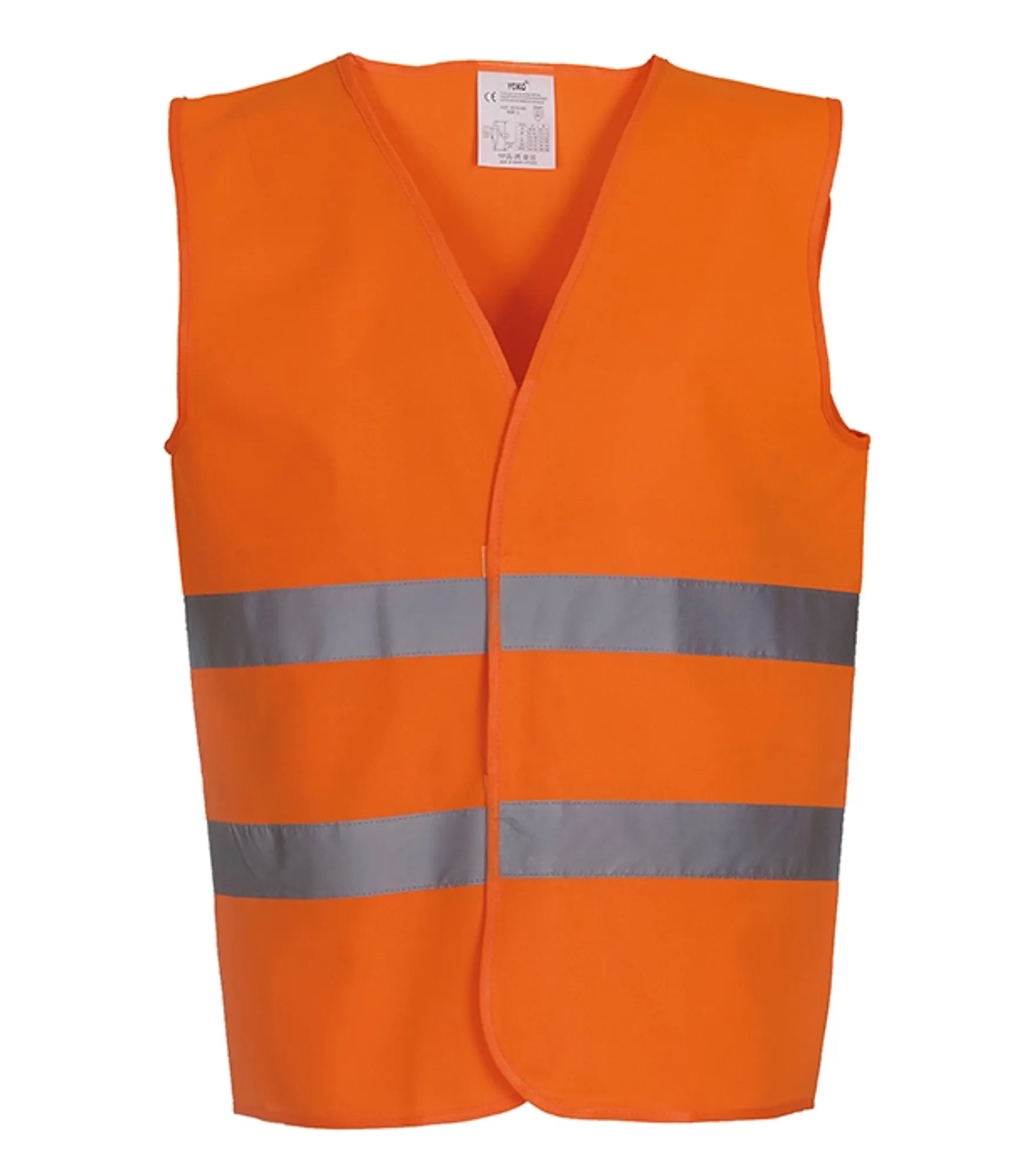 Väst med 5 cm tjocka reflekterande band för extra synlighet i mörker. 100% polyesterväv med kardborre. Yellow & Orange överensstämmer med EN ISO20471 klass 2.