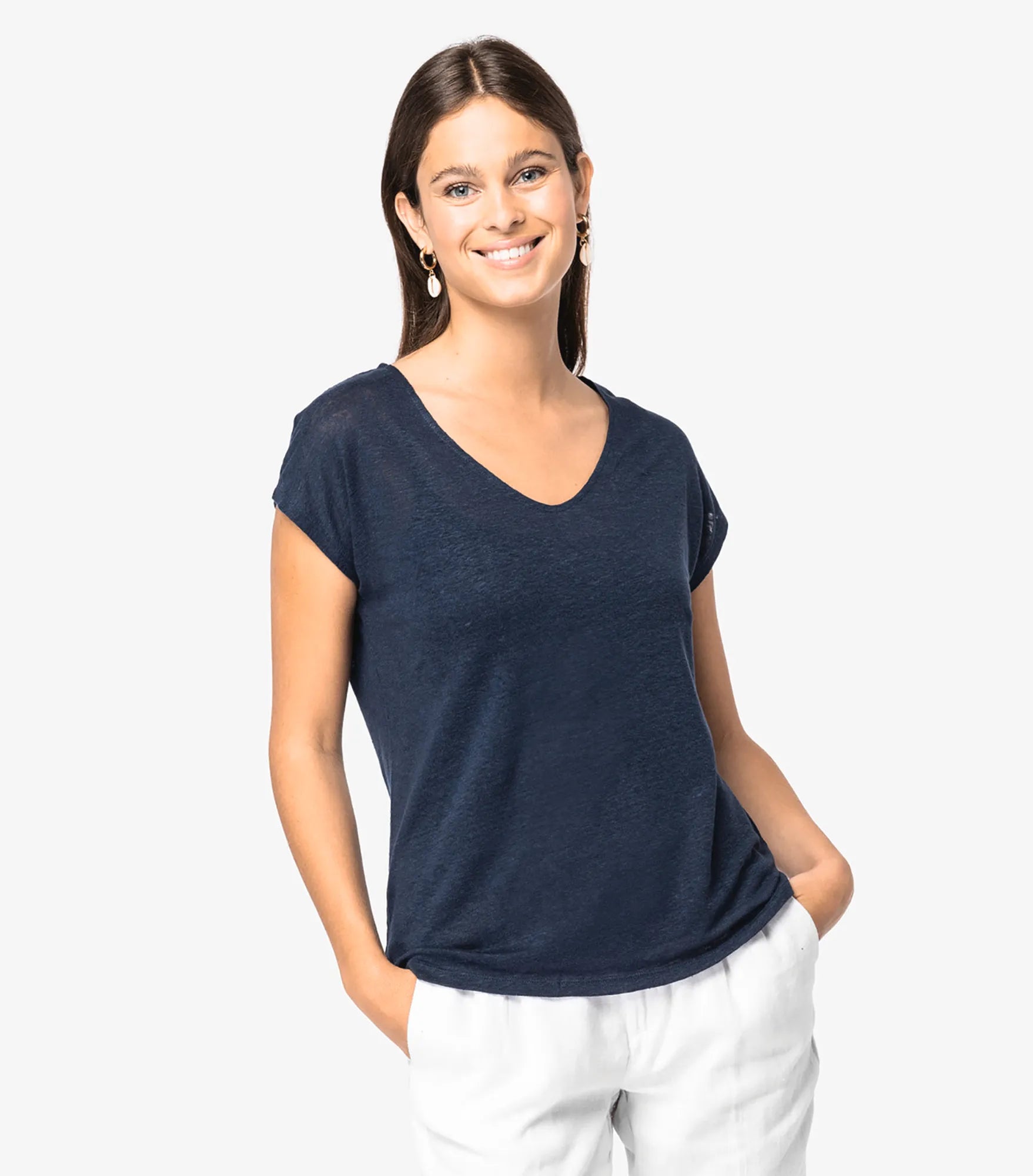 Ladies' V-neck Linen T-shirt