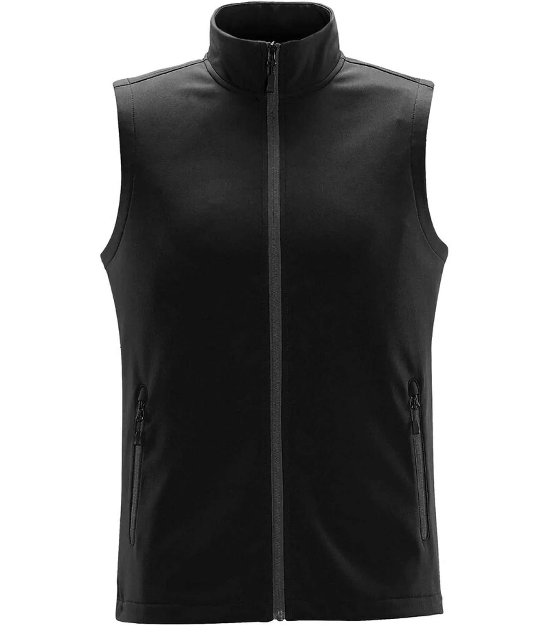 Softshell-vest i blødt vejrbestandigt materiale med vandafvisende stof som mellemlag og indvendigt fleecefor.