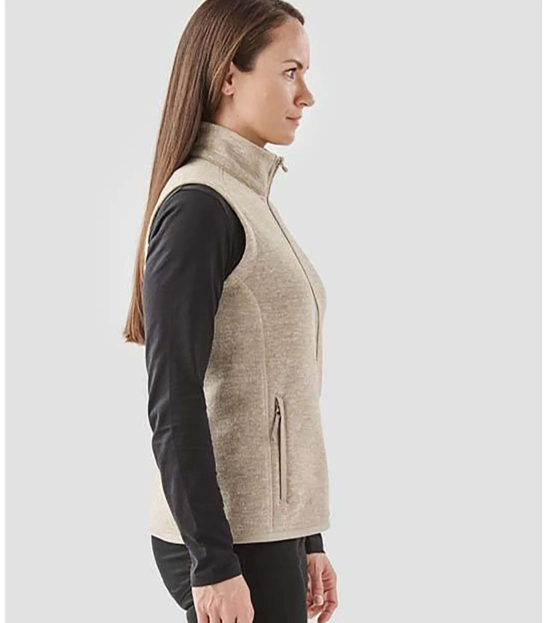 Damevest i ultrablød strik fleece med børstet inderside. Foret krave. To sidelommer med lynlås. Farve matchende kant. Flatlock sømme. Hagebeskytter. Fremstillet med genanvendt polyester for en reduceret miljøbelastning.