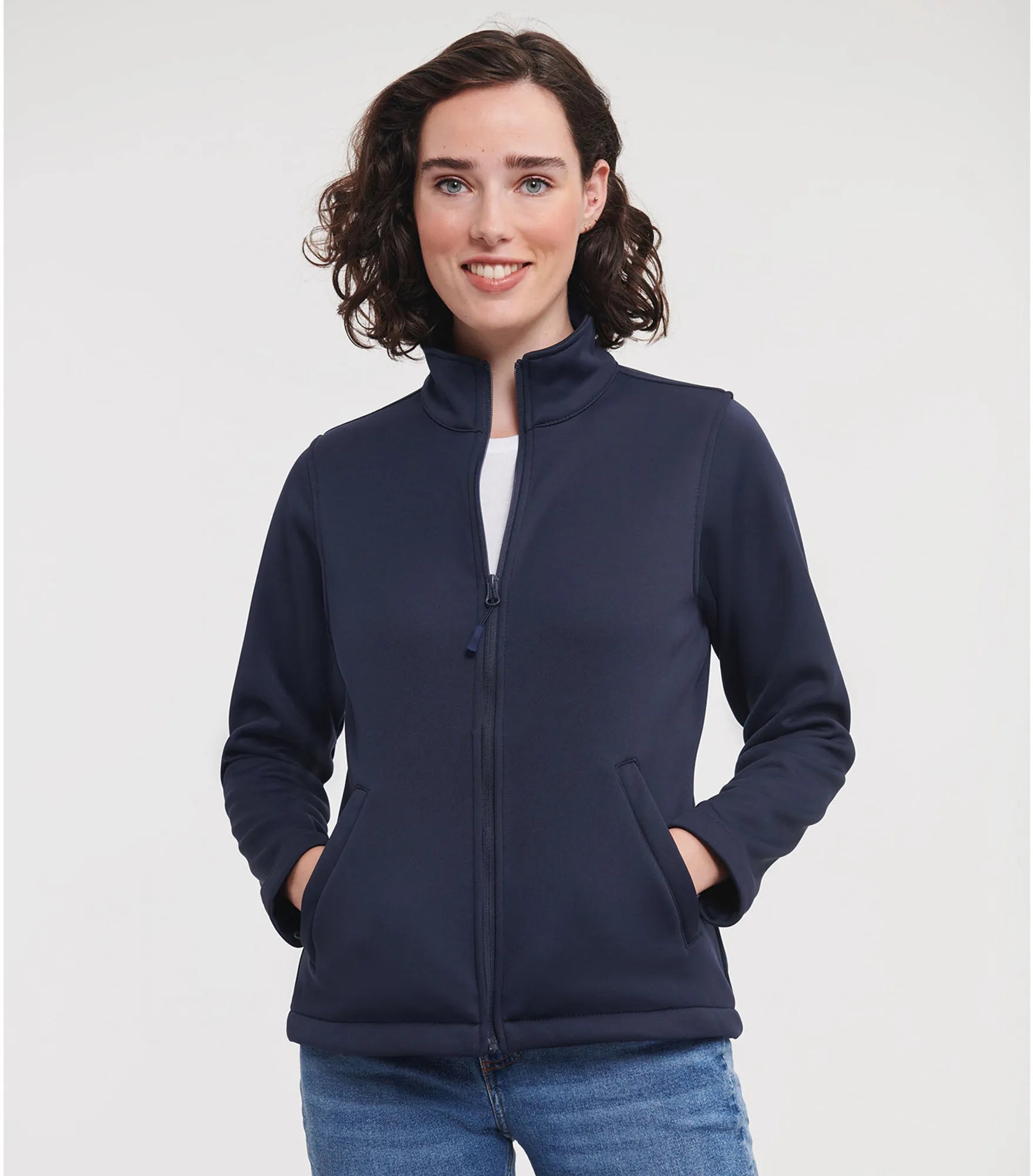Figursyet stilren Softshell jakke. God mod vind og vejr. 2 lommer foran.