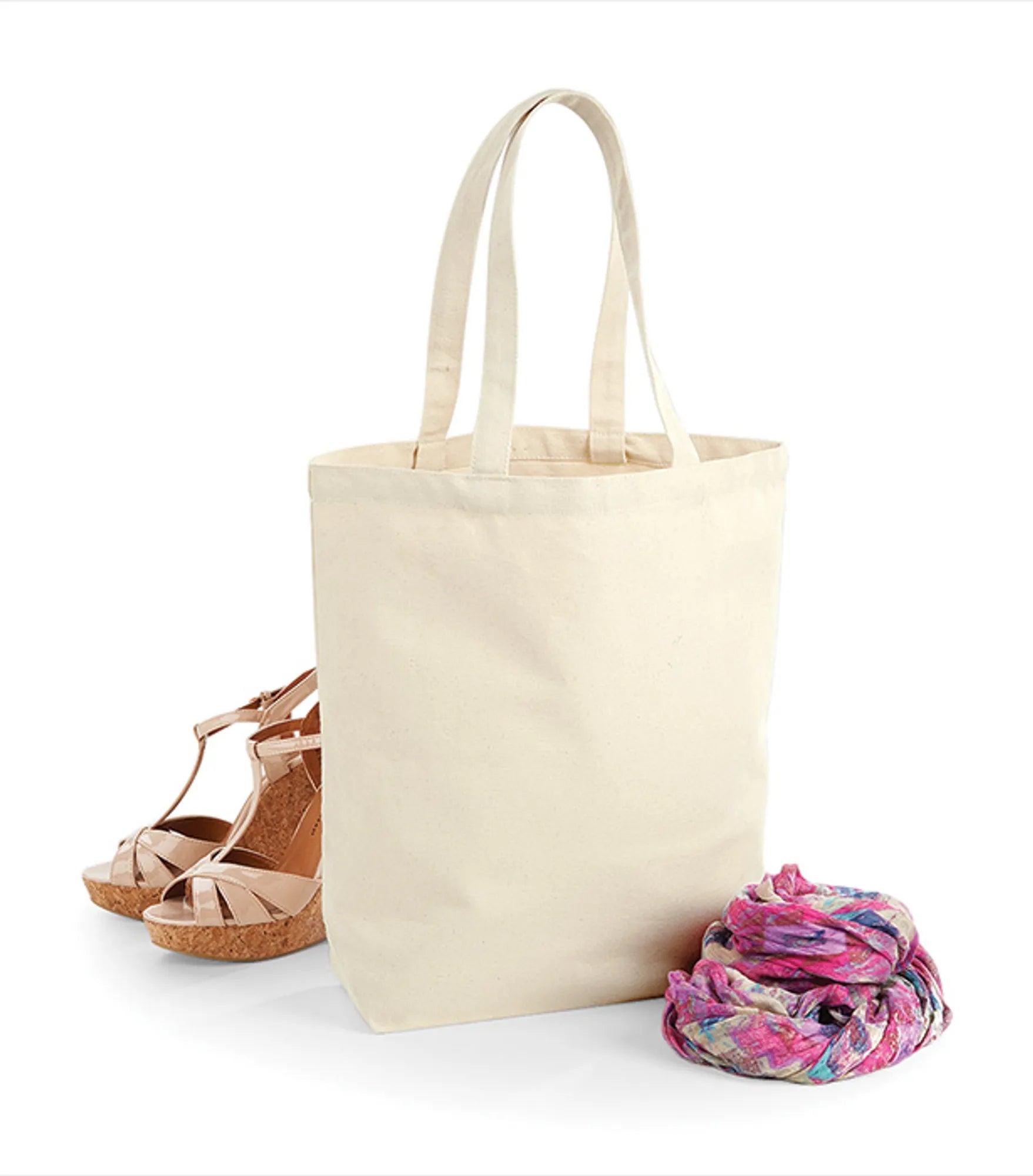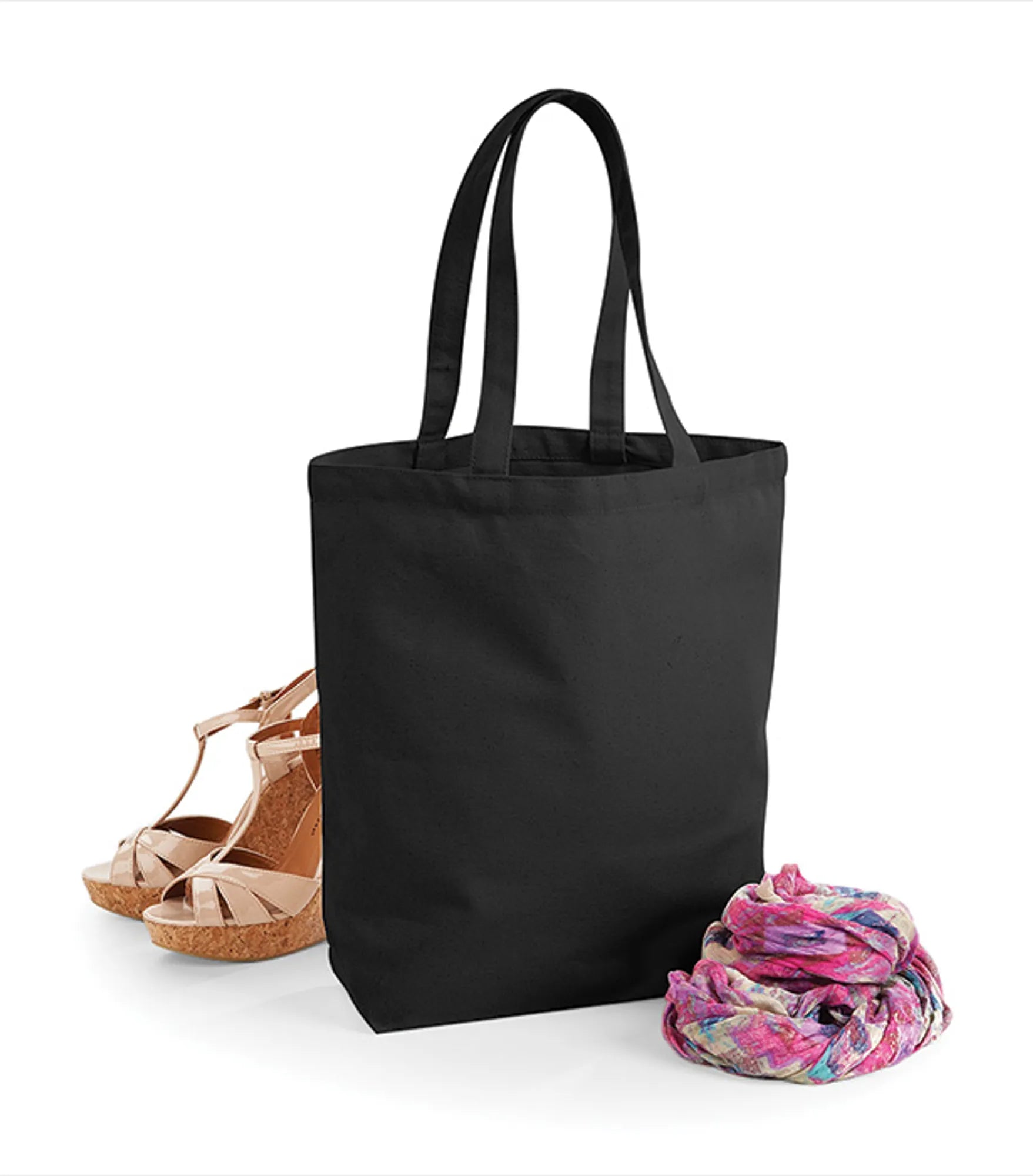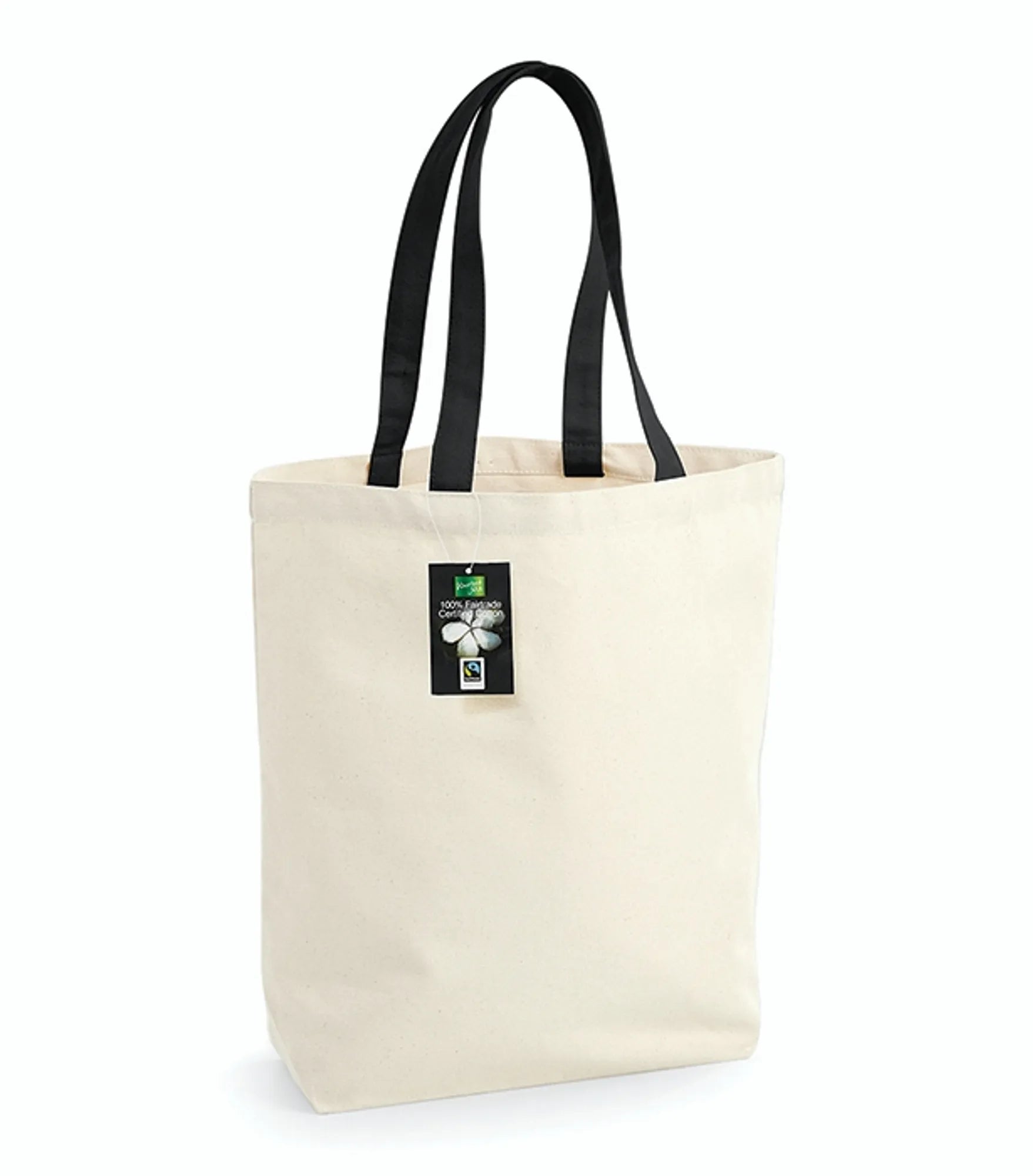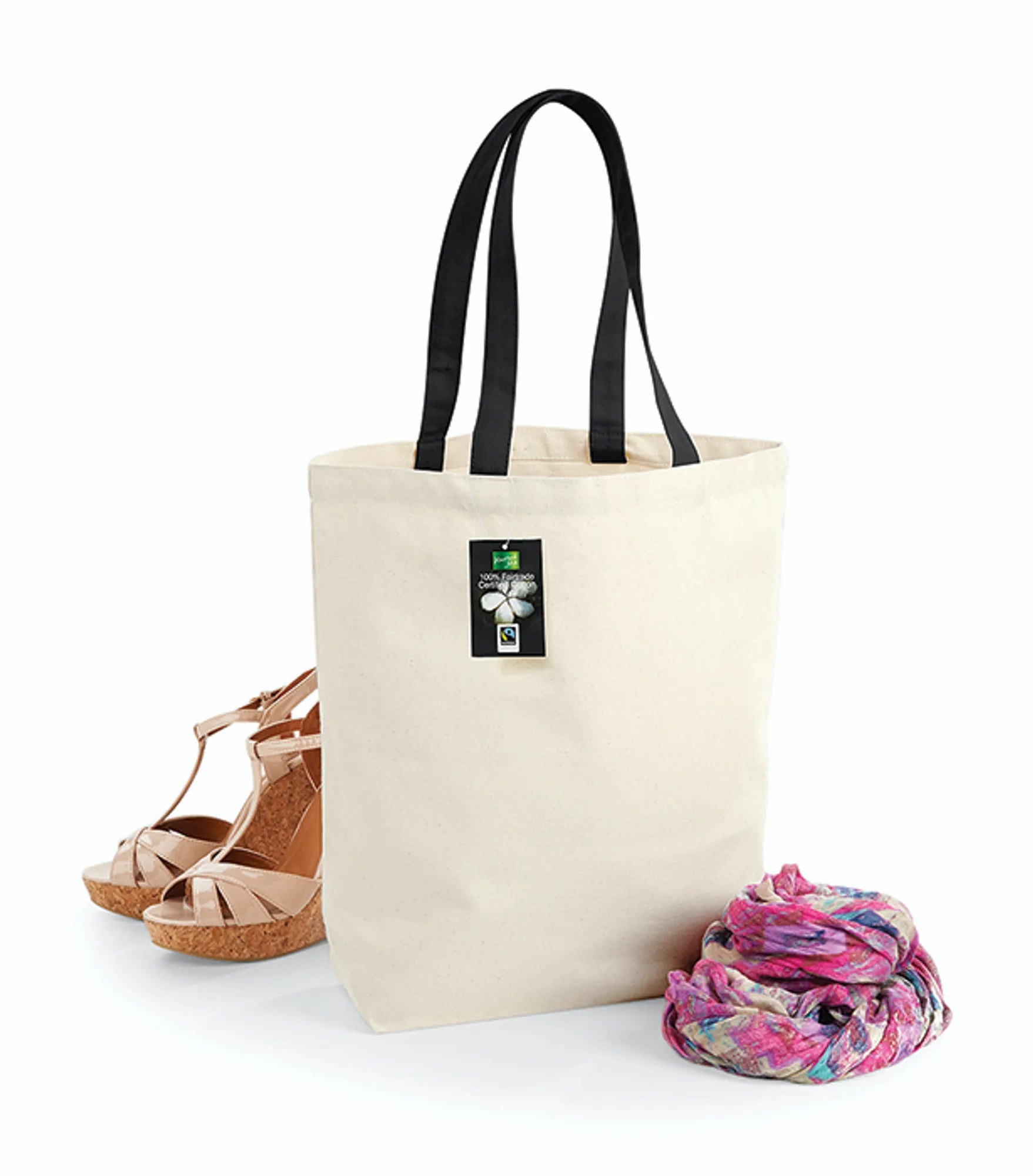 Fairtrade-certificeret stofpose. Kan bæres i hånden eller over skulderen. Længden på håndtagene er 58 cm.