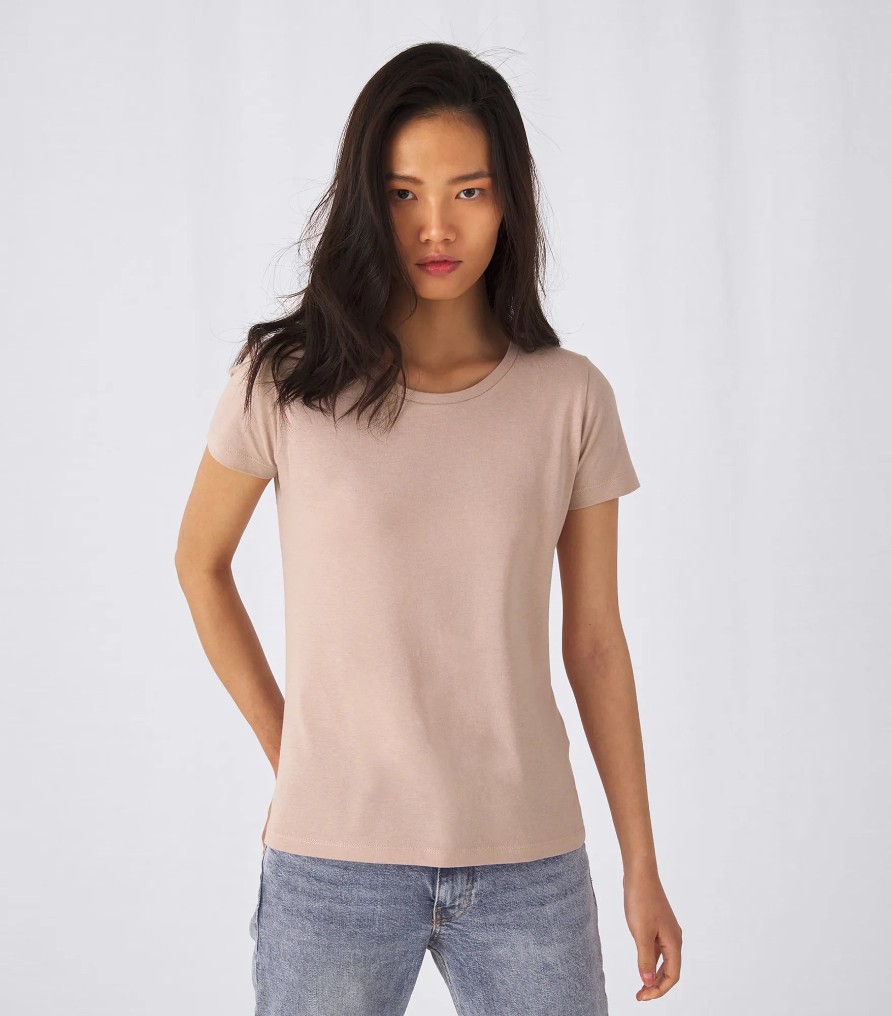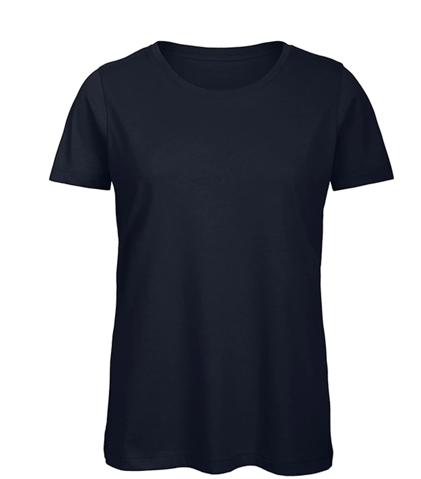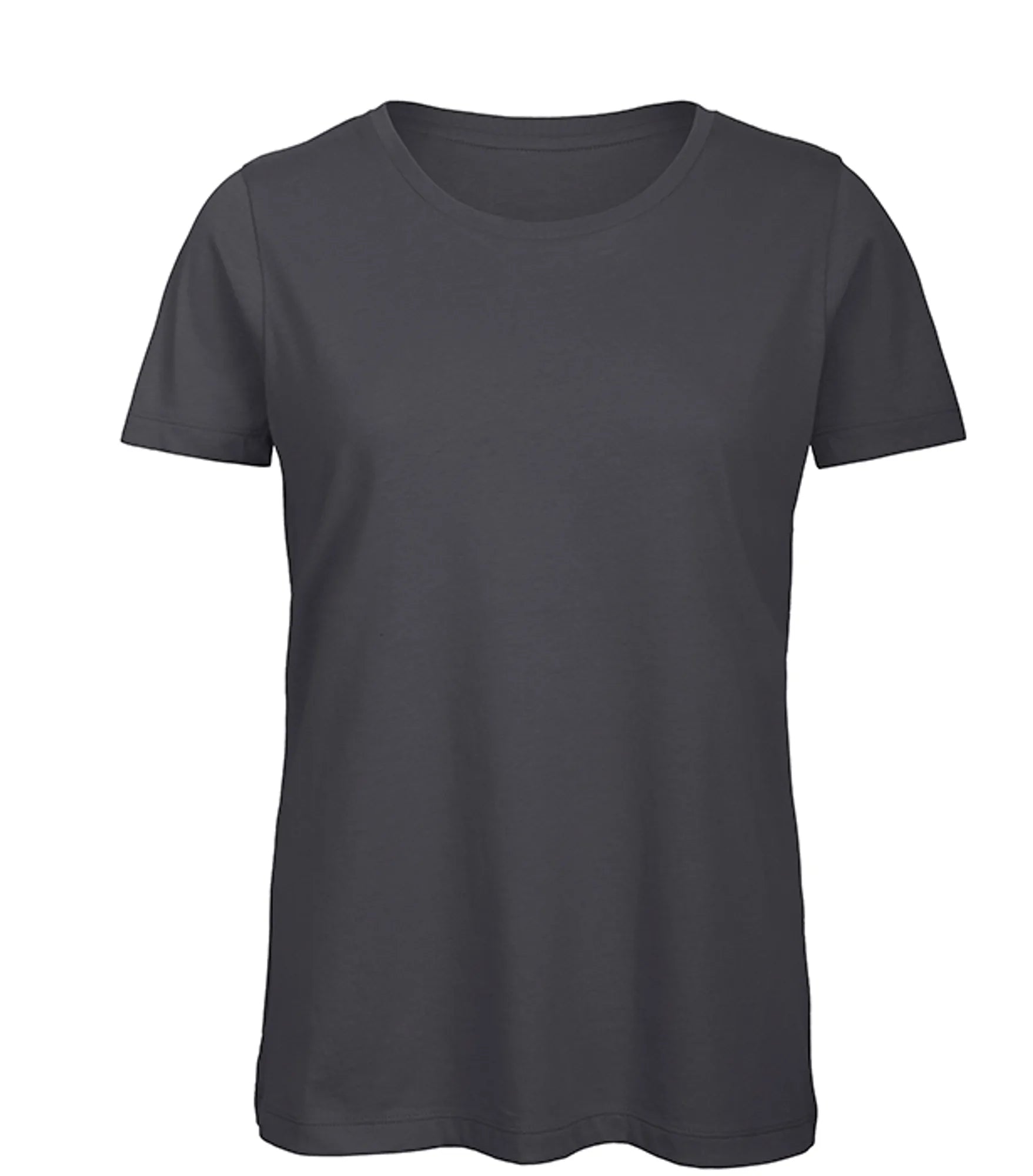 Rund hals T-shirt til damer, 100% økologisk bomuld med perfekt pasform, korte ærmer og sidesømme. Lavet af ring