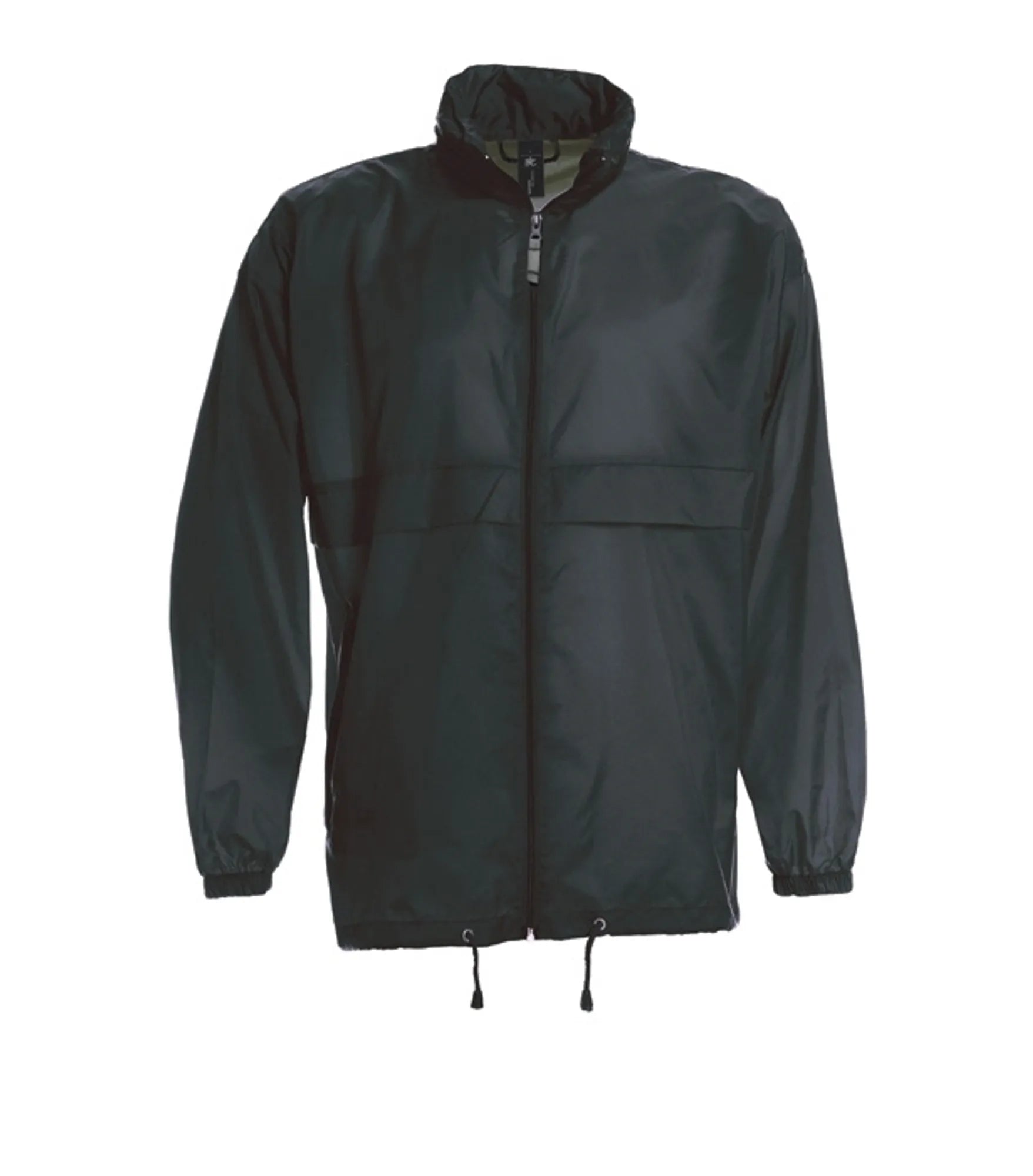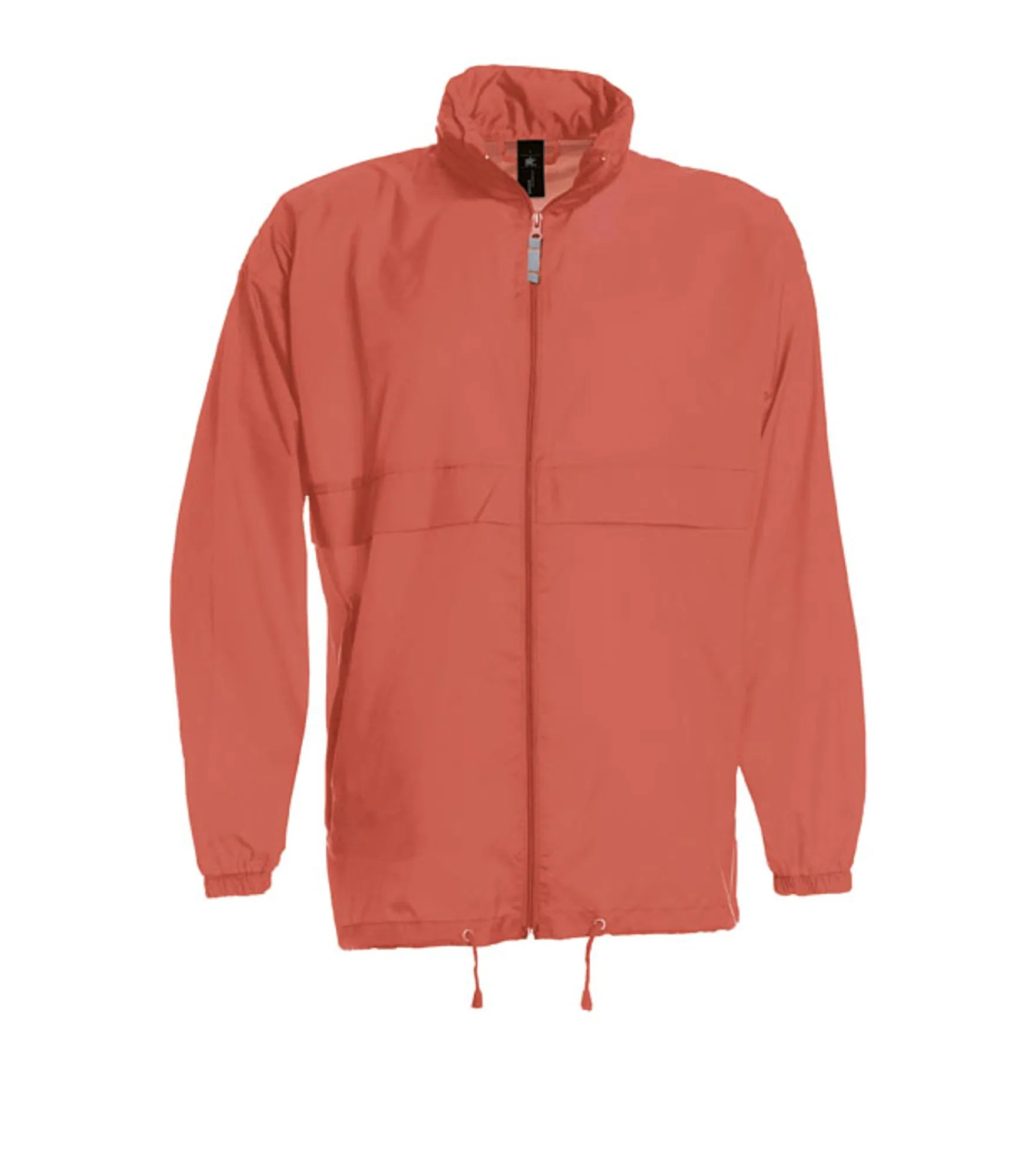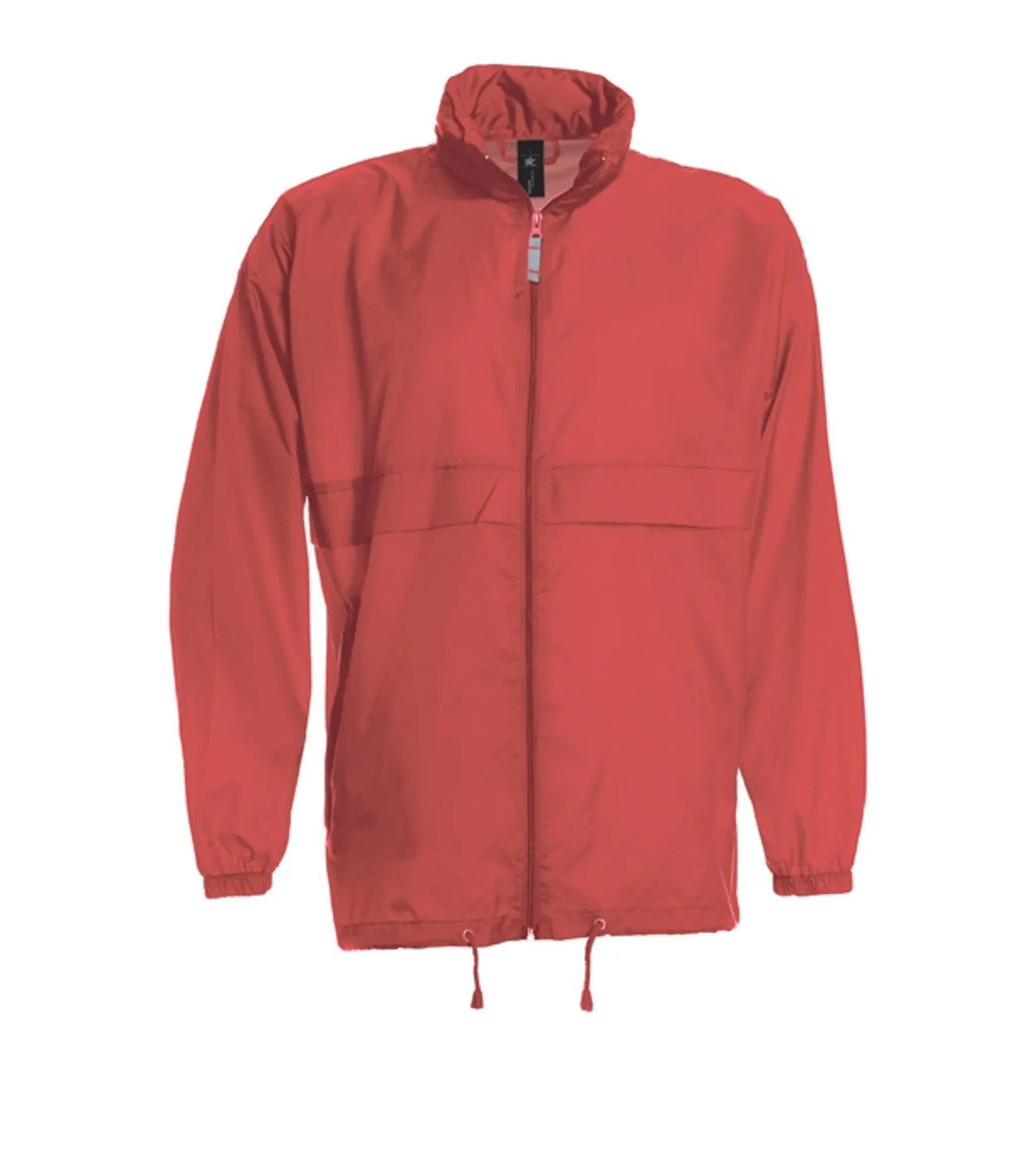 Windbreaker med skjult hætte i kraven. Hætten og jakkens nederkant har snor. Jakken kan foldes sammen og lukkes i lommen. Fås i børnemodel.