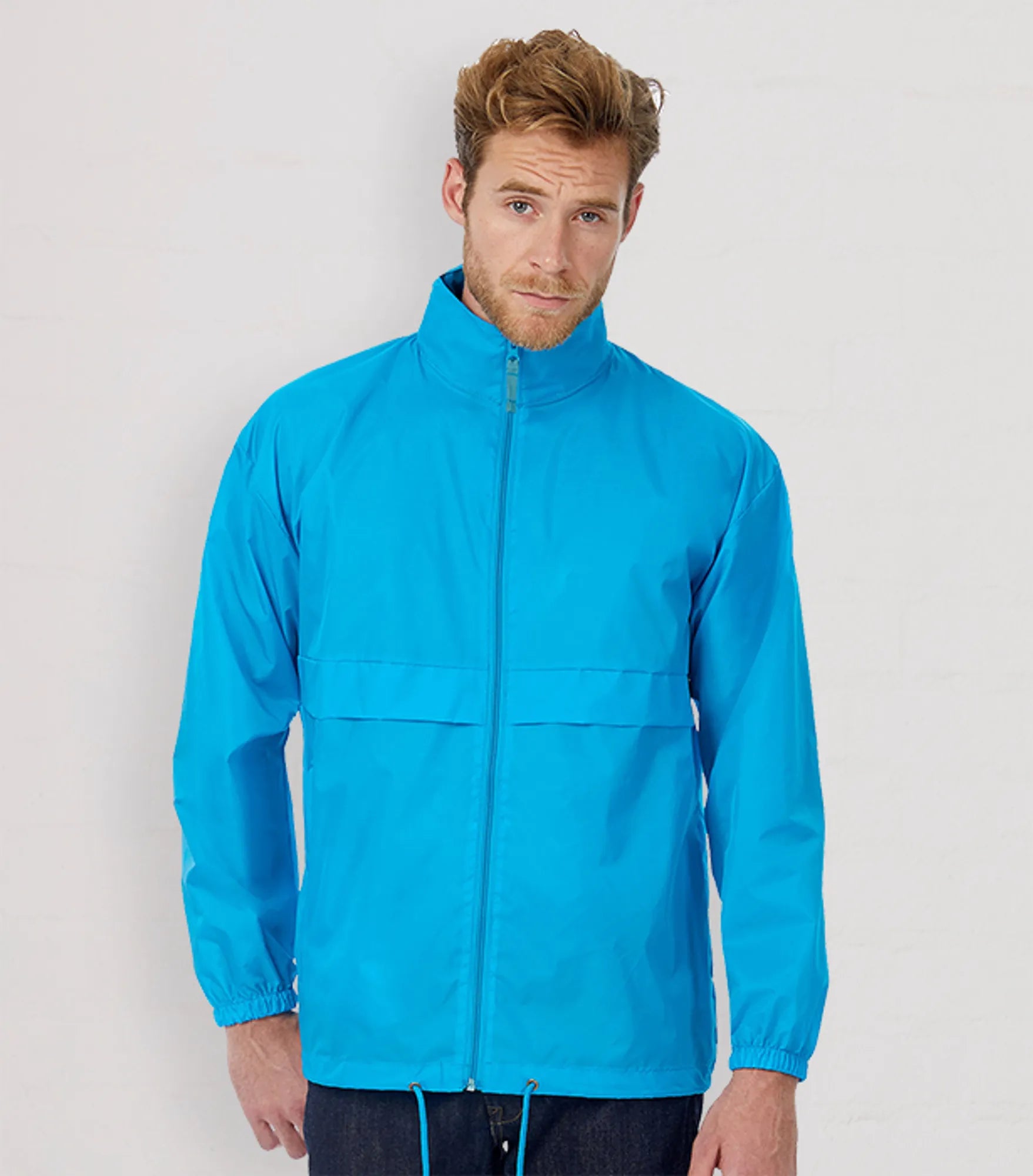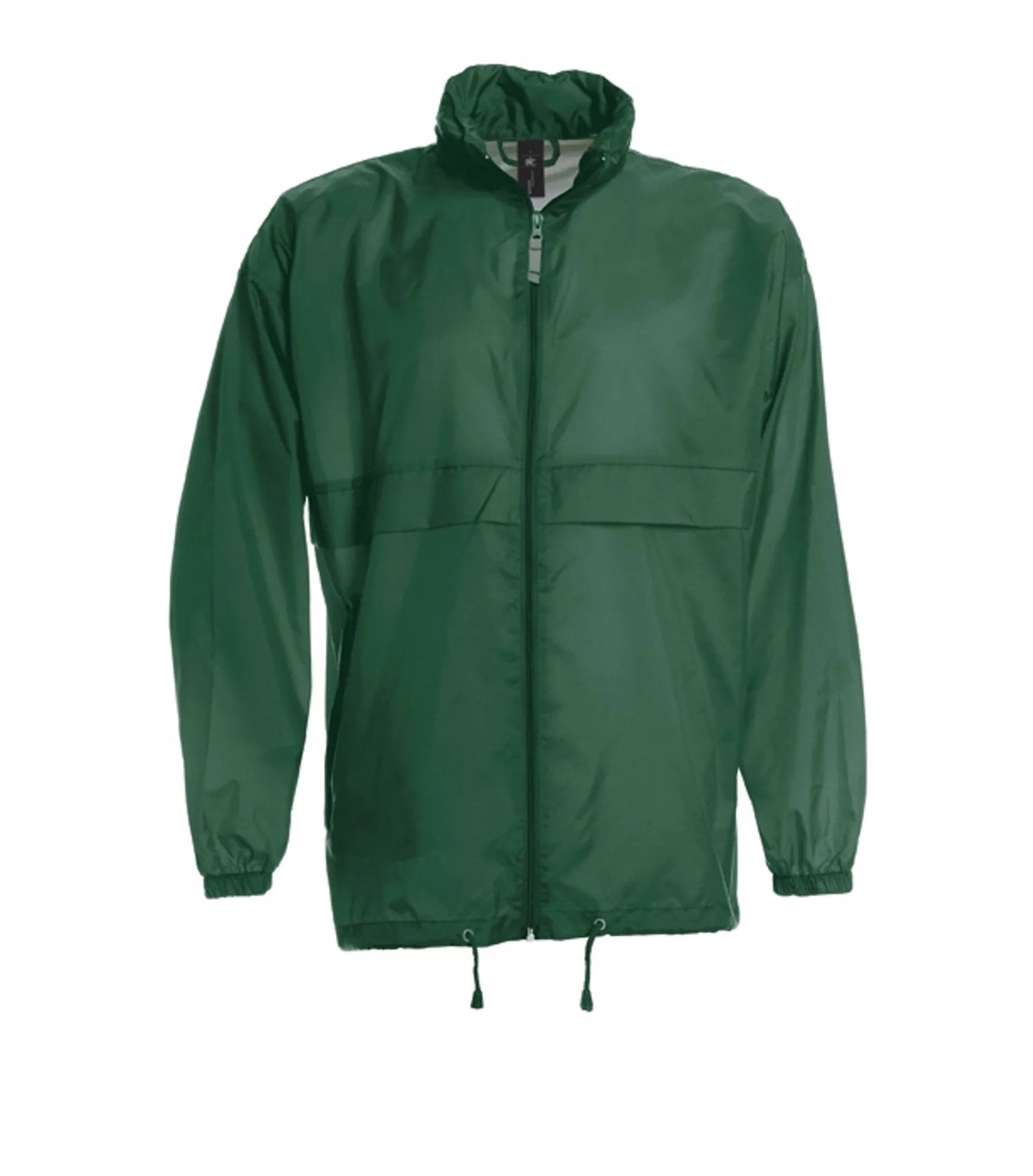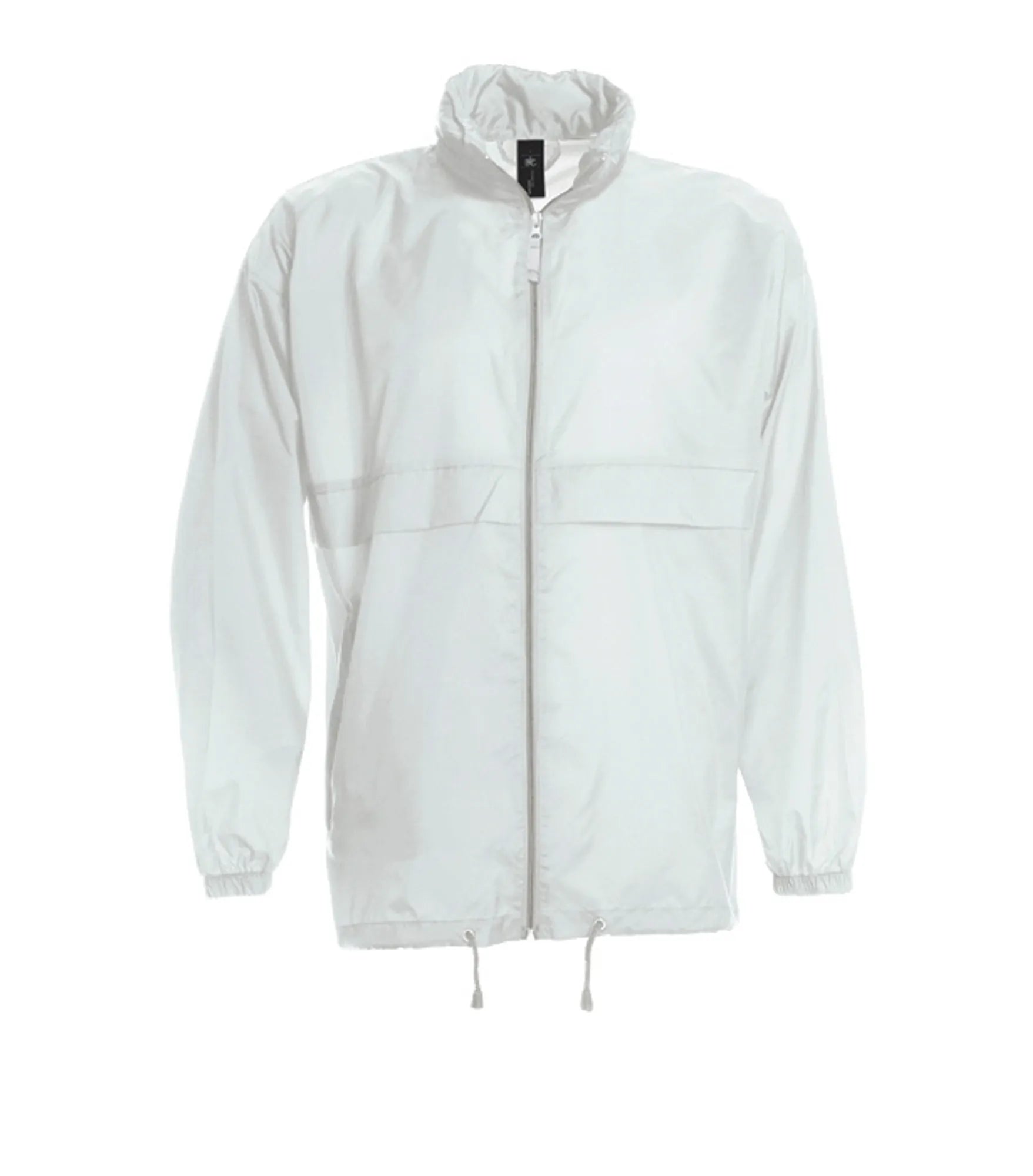 Windbreaker med skjult hætte i kraven. Hætten og jakkens nederkant har snor. Jakken kan foldes sammen og lukkes i lommen. Fås i børnemodel.