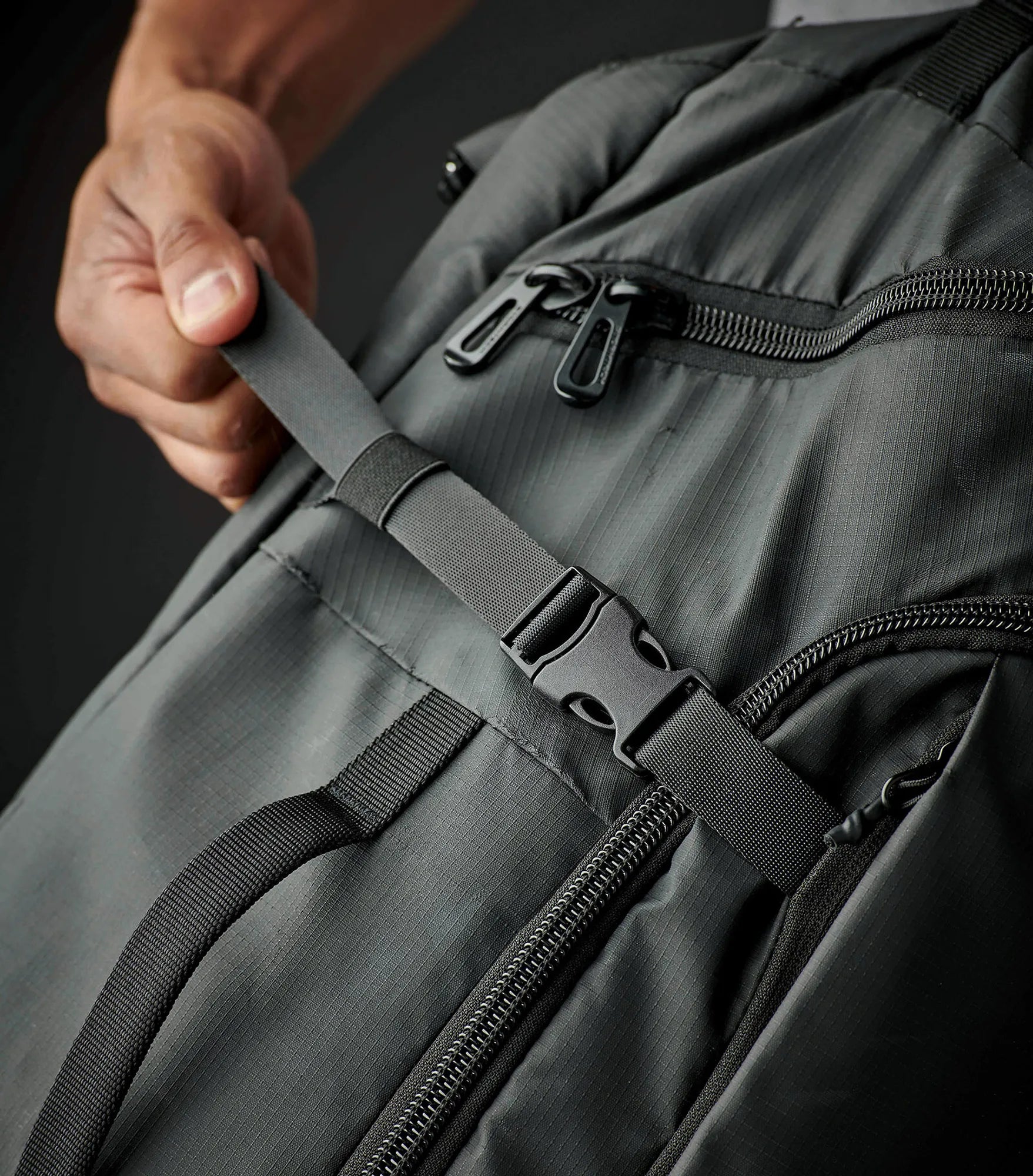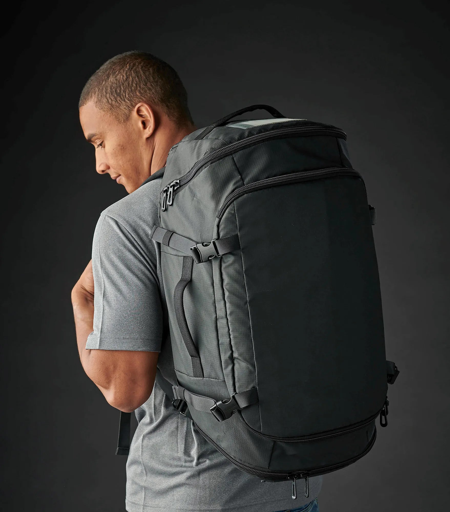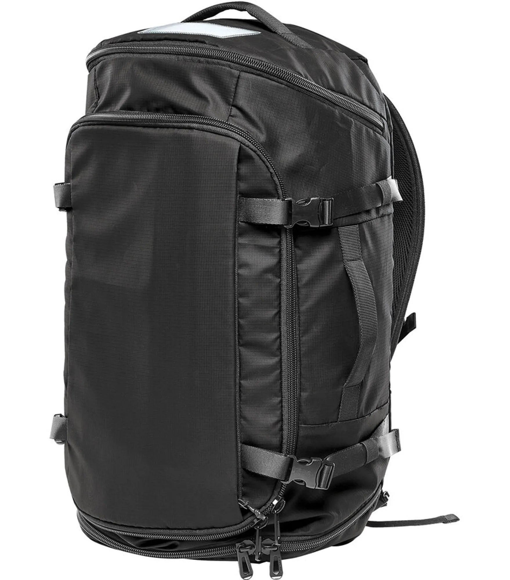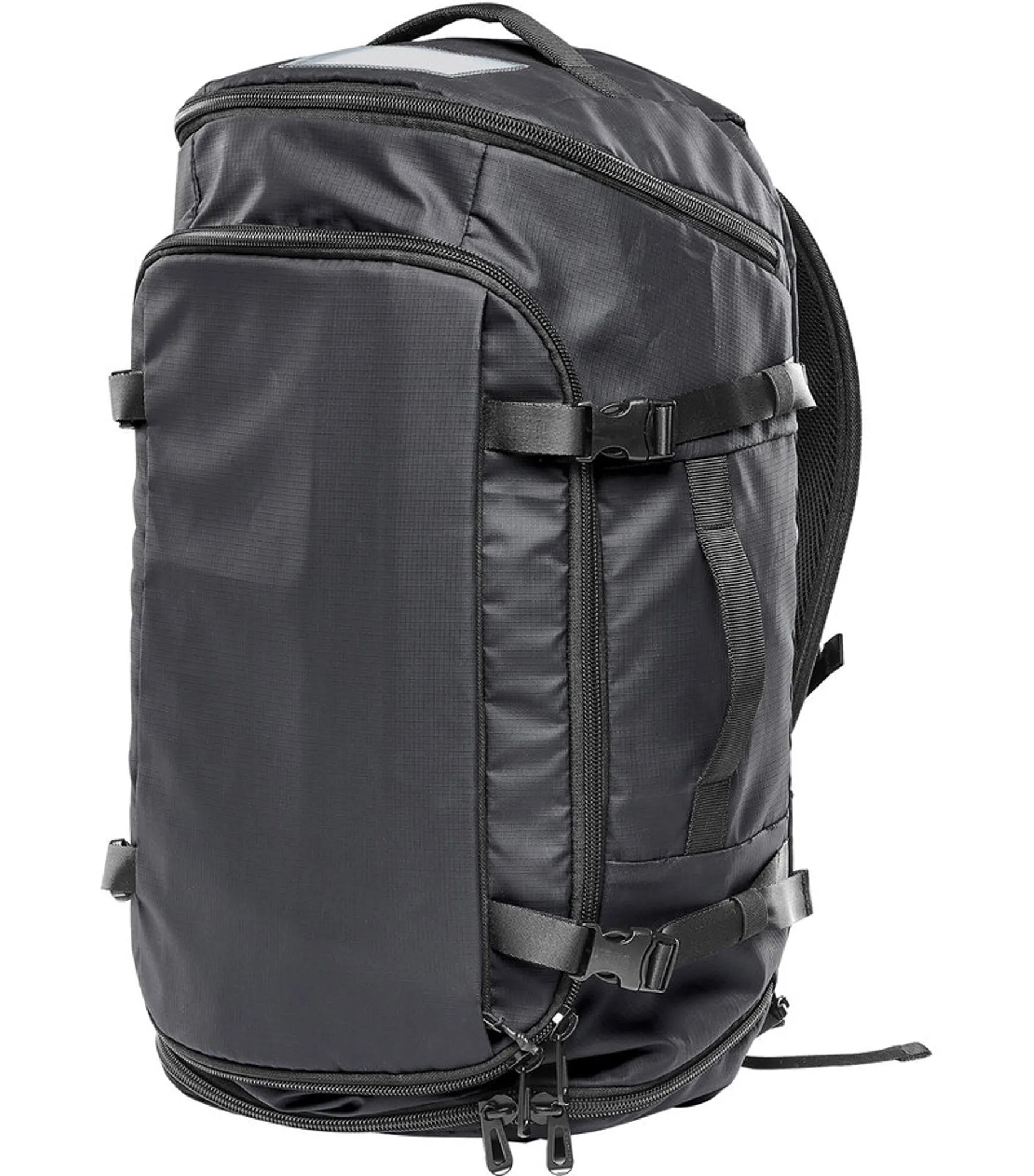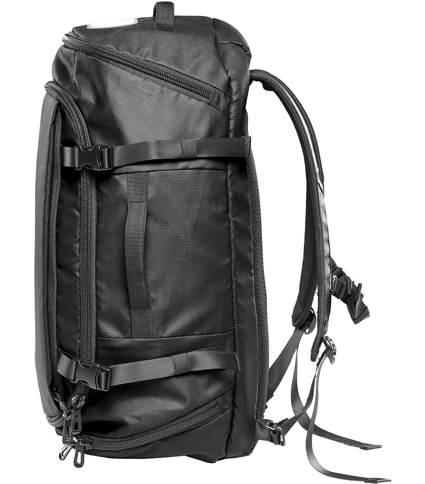 Vandtæt taske, der kan bæres som en rygsæk eller i et af flere bærehåndtag. Stort rum til opbevaring, indvendigt mesh-rum og tre ydre rum med lynlåse gør denne taske perfekt til rejsen. Siderummet er perfekte til skoopbevaring og eller andre genstande, som du har brug for med hurtig adgang til.