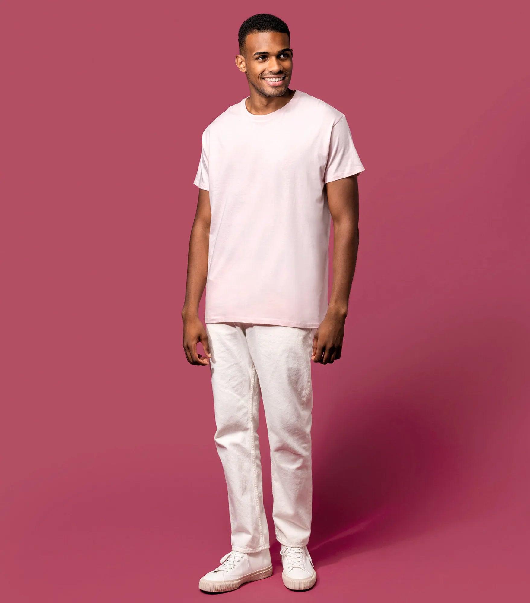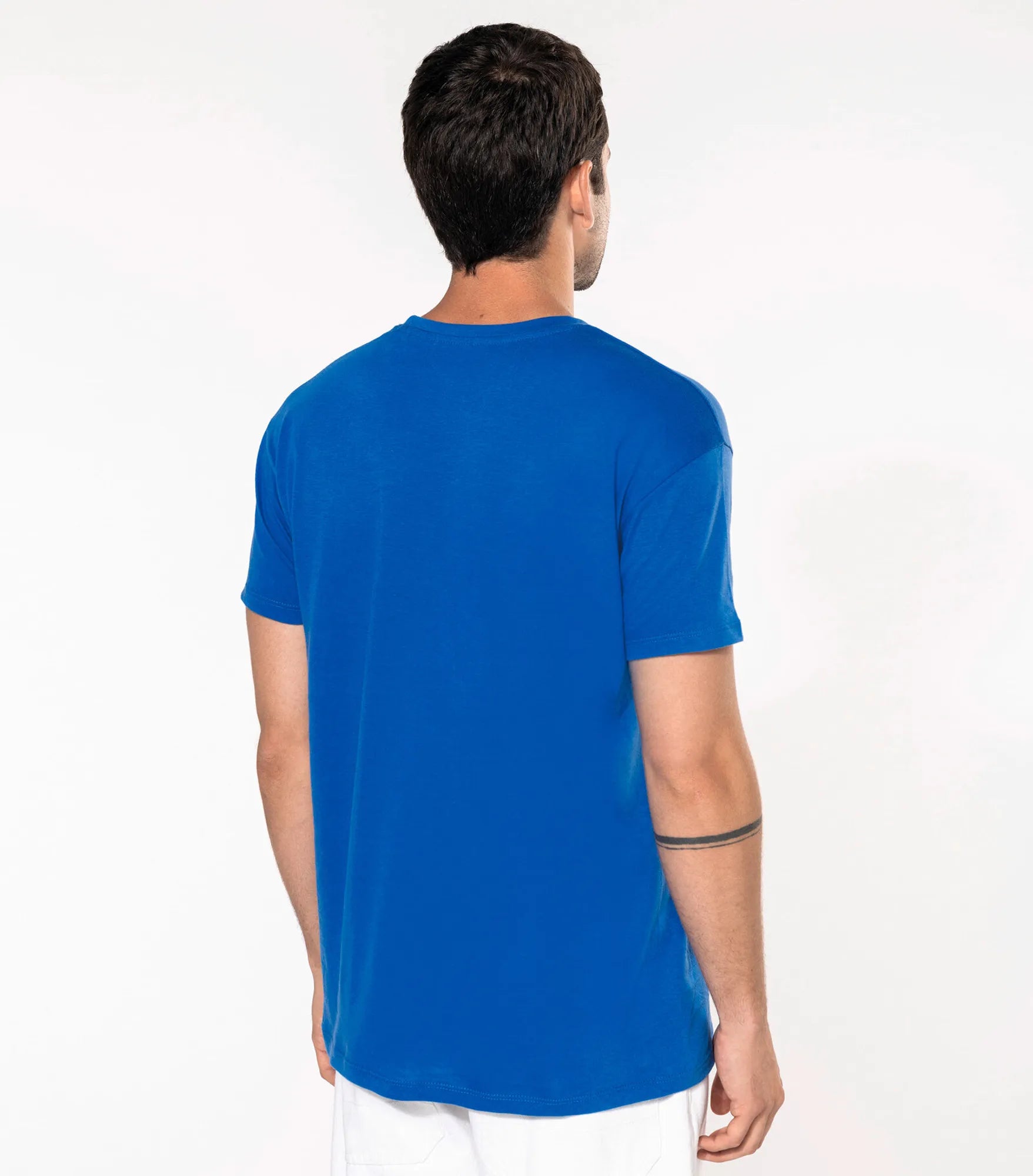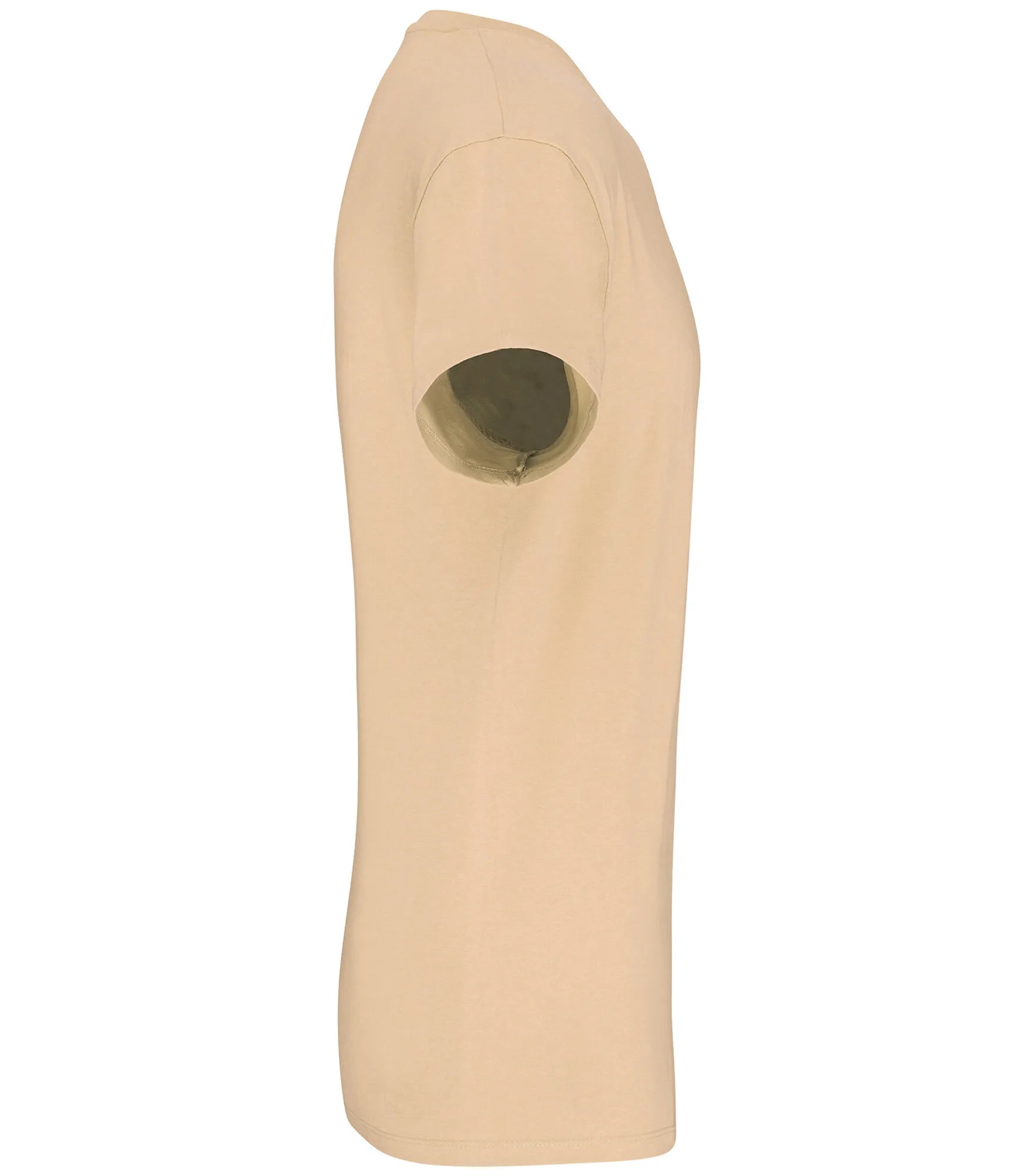 T-shirt lavet af økologisk bomuld under forvandling. Ribstrikket rund hals med elastan. Matchende tapede hals. Tubestrik. Dobbelte sømme ved ærmeafslutning og forneden.