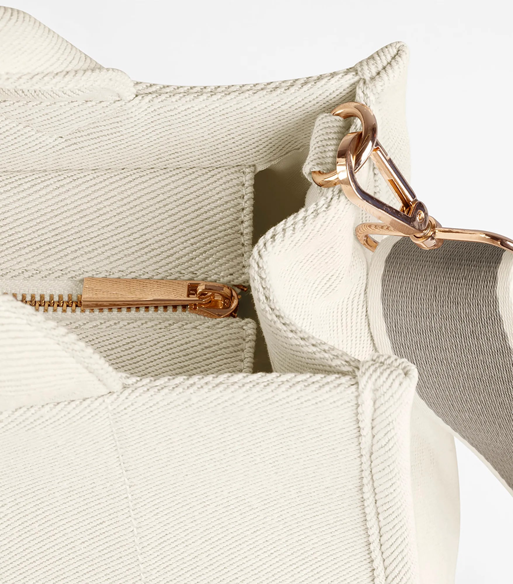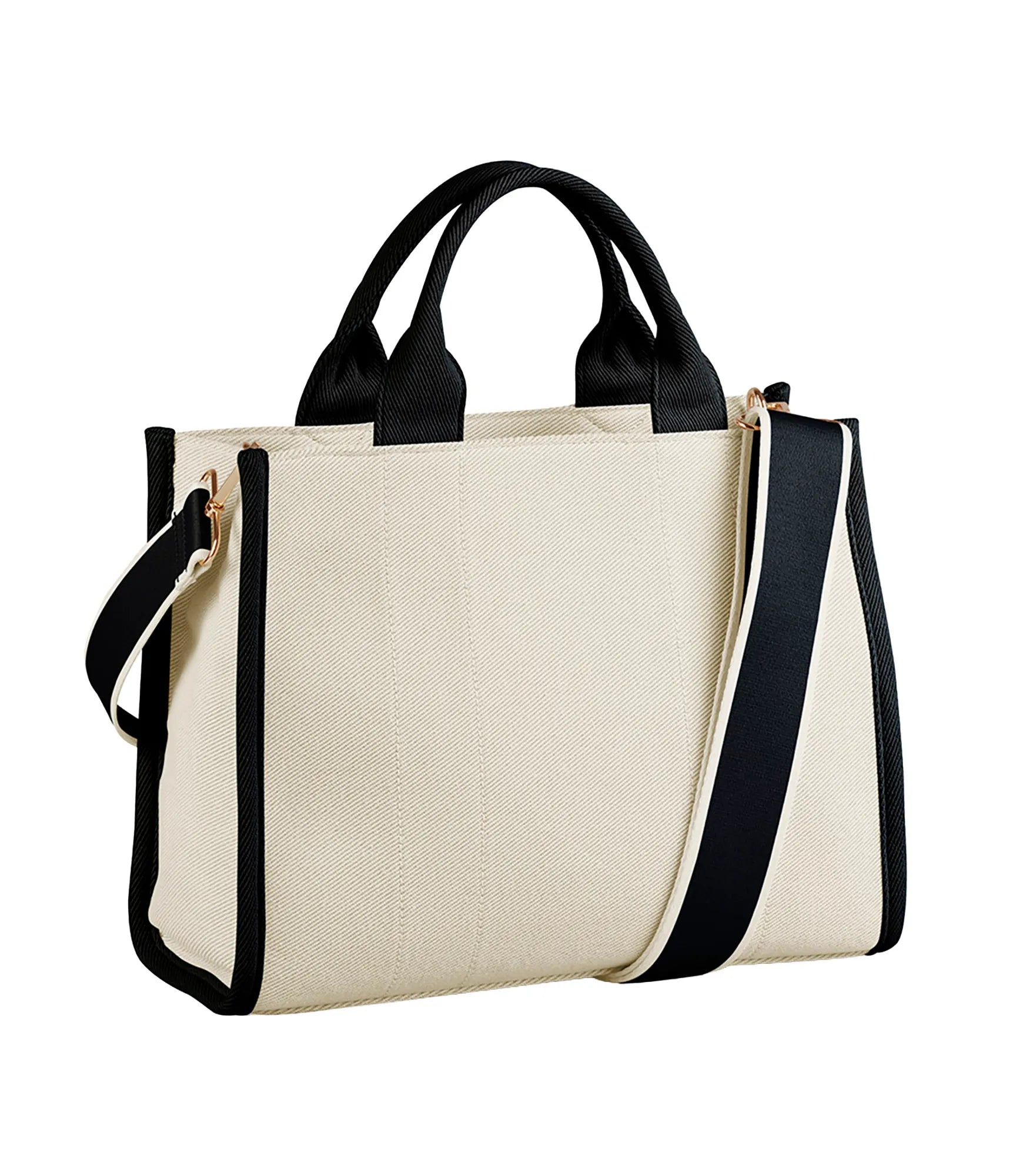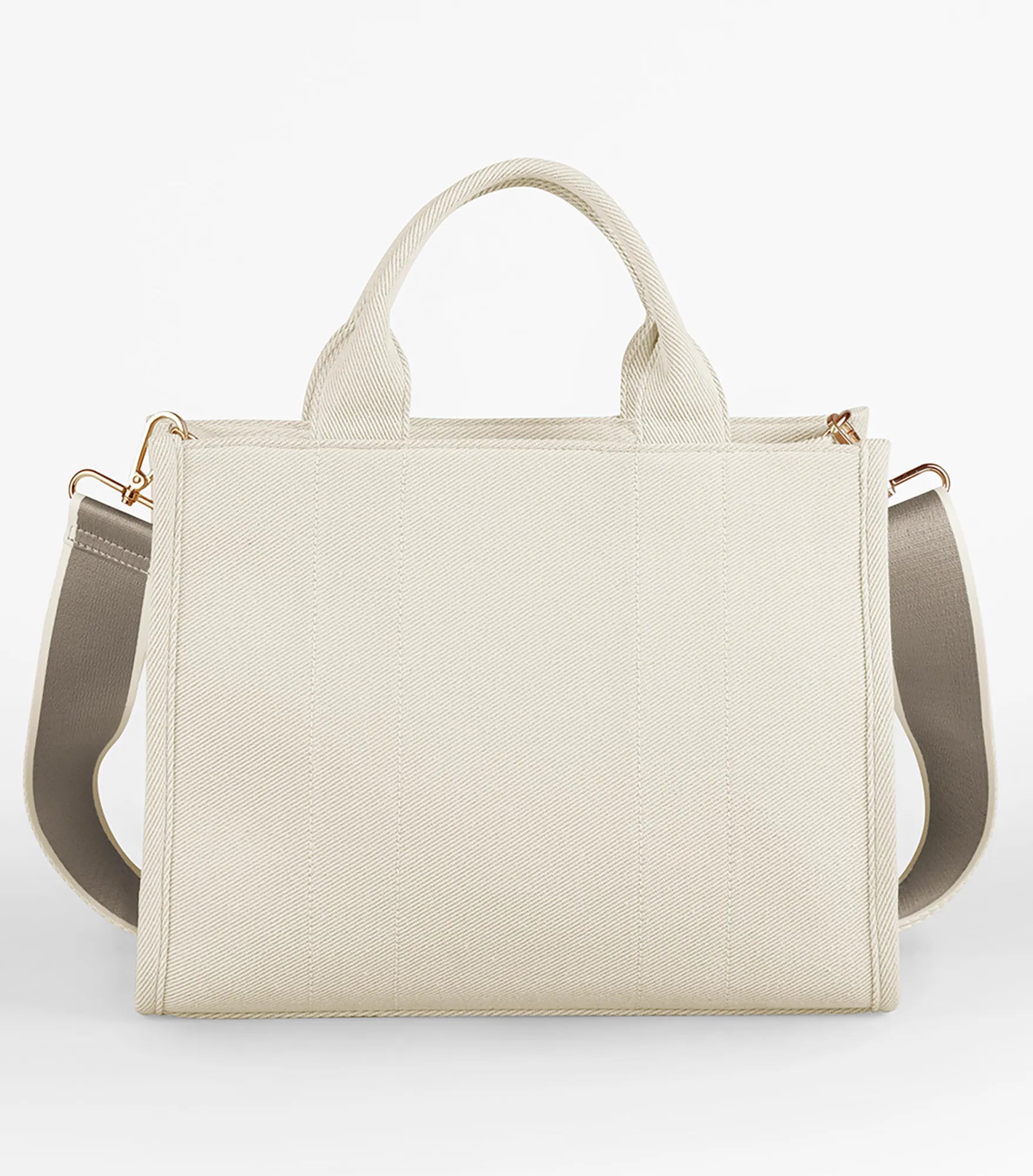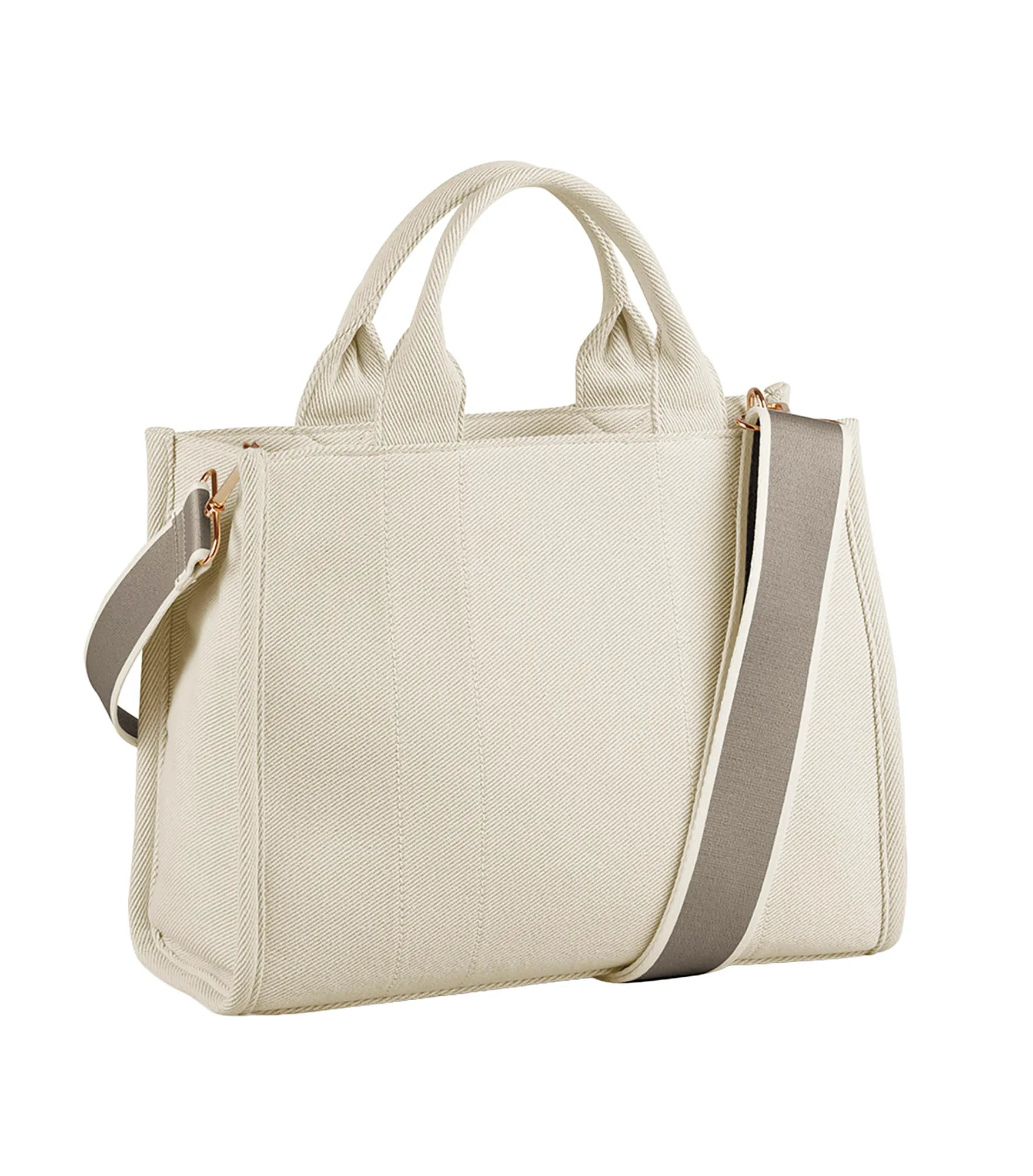 Stilren og funktionel håndtaske i eksklusivt twillstof med struktureret design og smarte, organiserede rum. Hovedrummet lukkes med lynlås, og indvendigt findes både en sikkerhedslomme til værdigenstande og en skjult lynlås i foret for nem dekoration. Blødt for og skumpolstring beskytter indholdet, mens indrammede syningsdetaljer og guldbelagte metaldetaljer giver en luksuriøs finish. Indvendig bundplade. Aftagelig, justerbar skulderrem og bærehåndtag i samme materiale gør den nem at bære. Håndtagets længde: 32 cm. Skulderremmens længde: 172 cm. TearAway-mærkat for nem omprofilering.