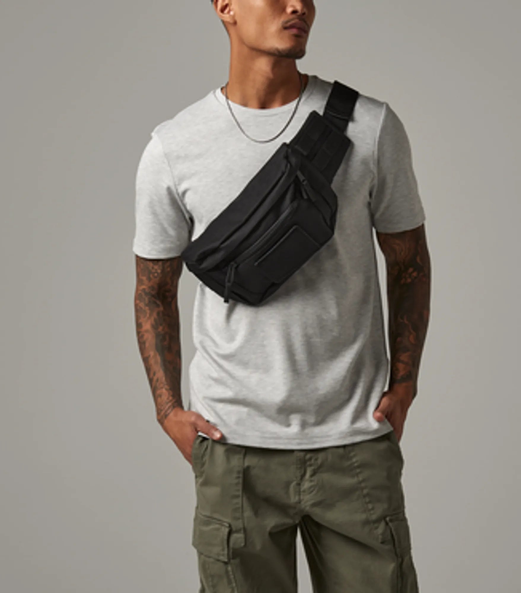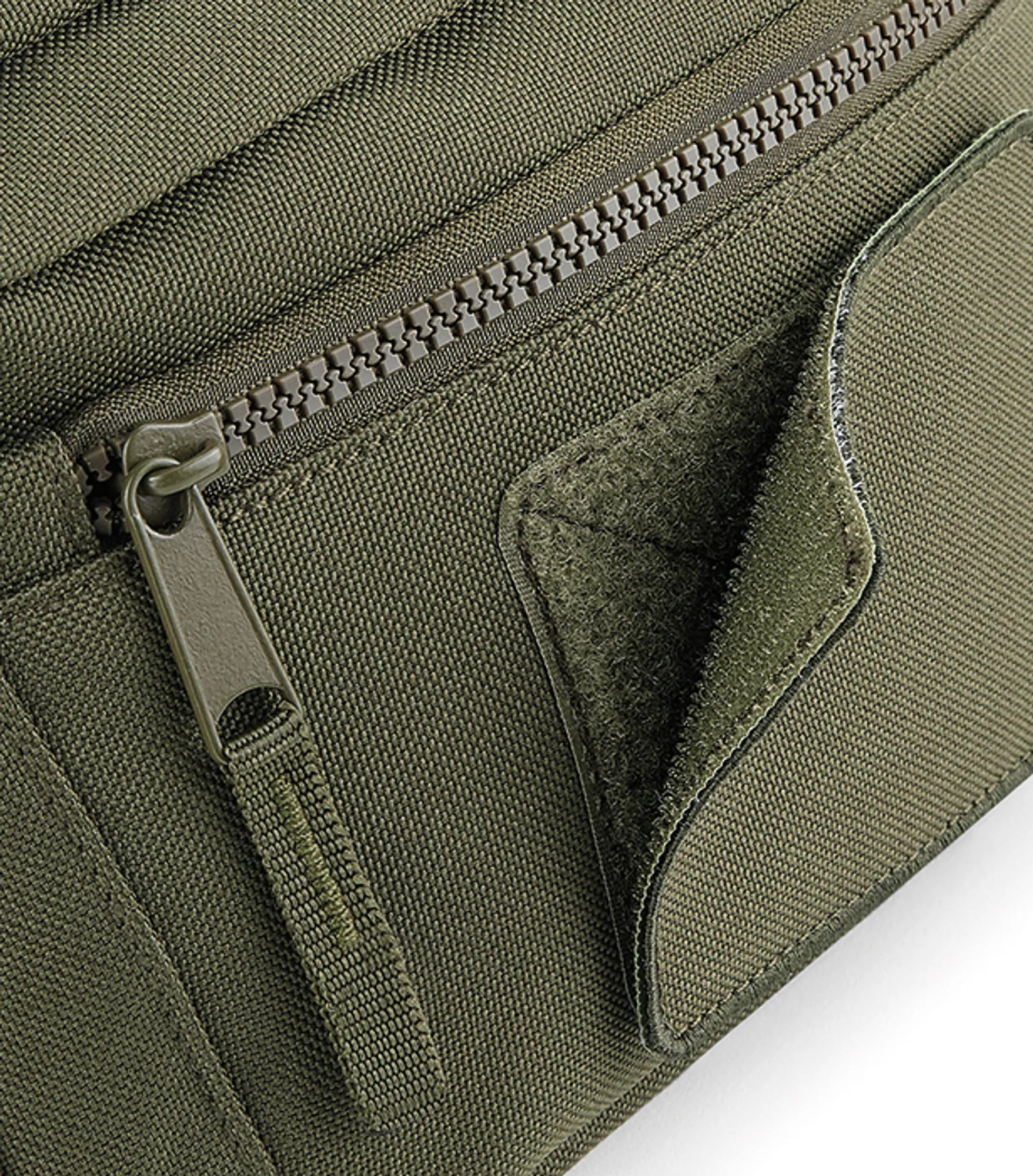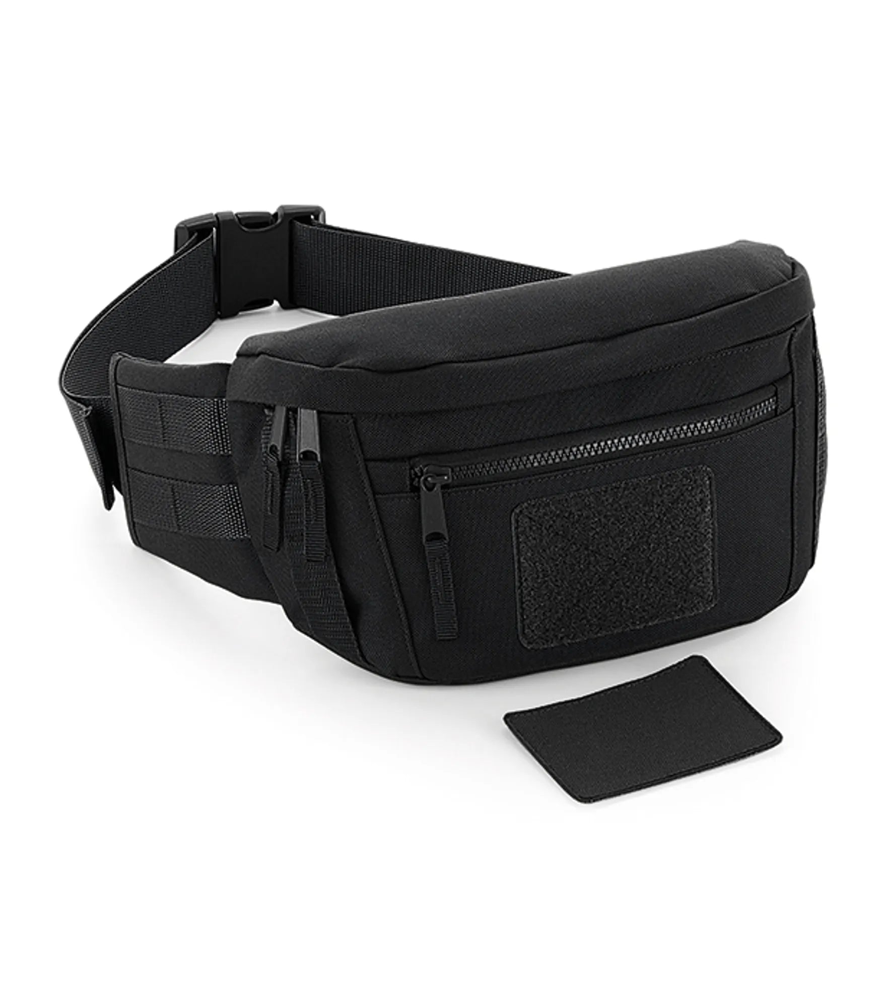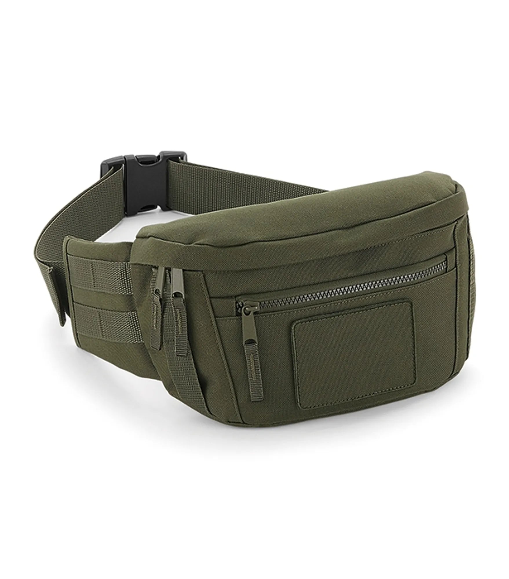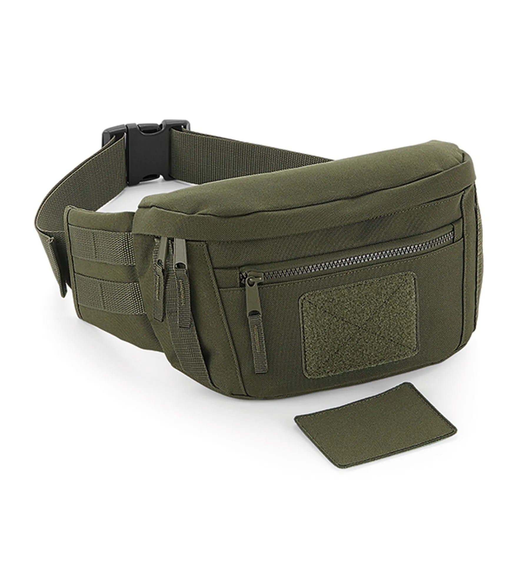 Waist bag in military-inspired design. Smart interchangeable patch for decoration. Spacious main compartment and exterior pocket with zipper. Adjustable waist belt.