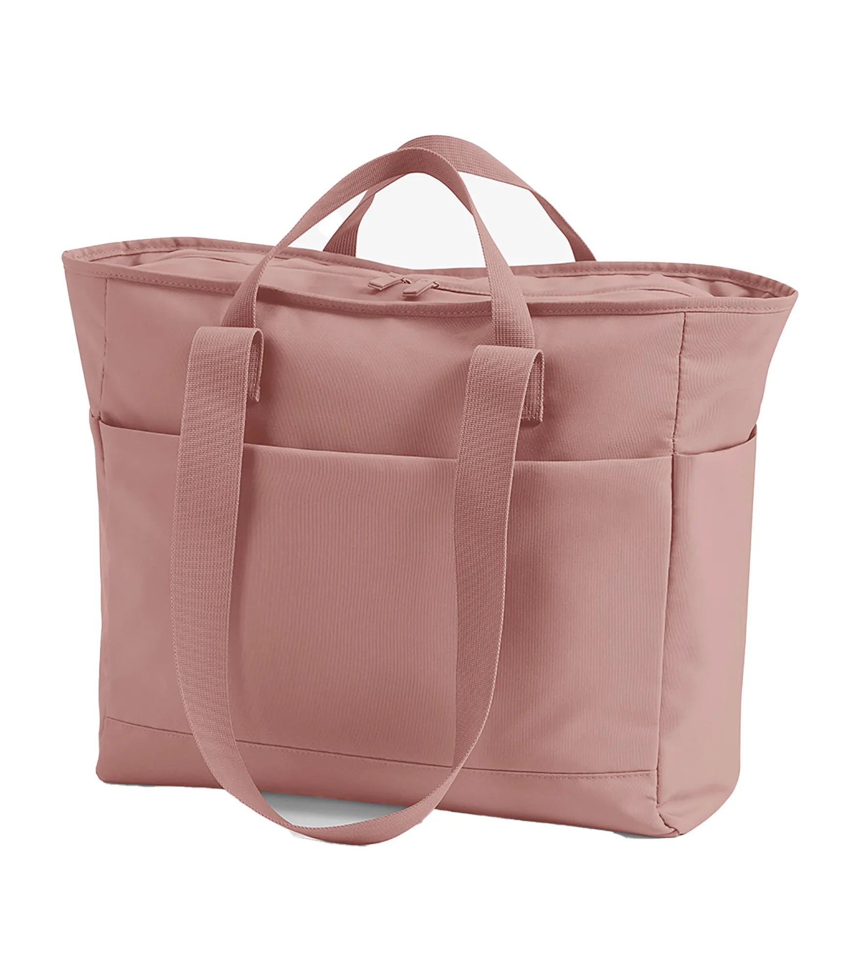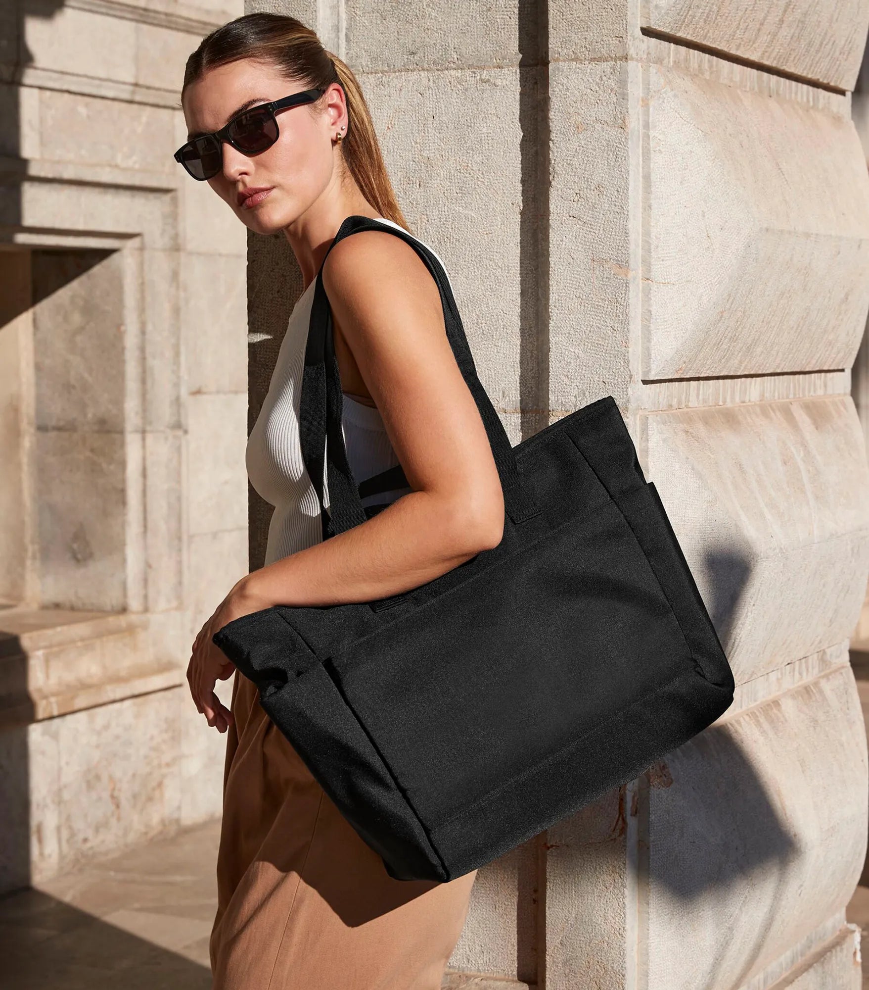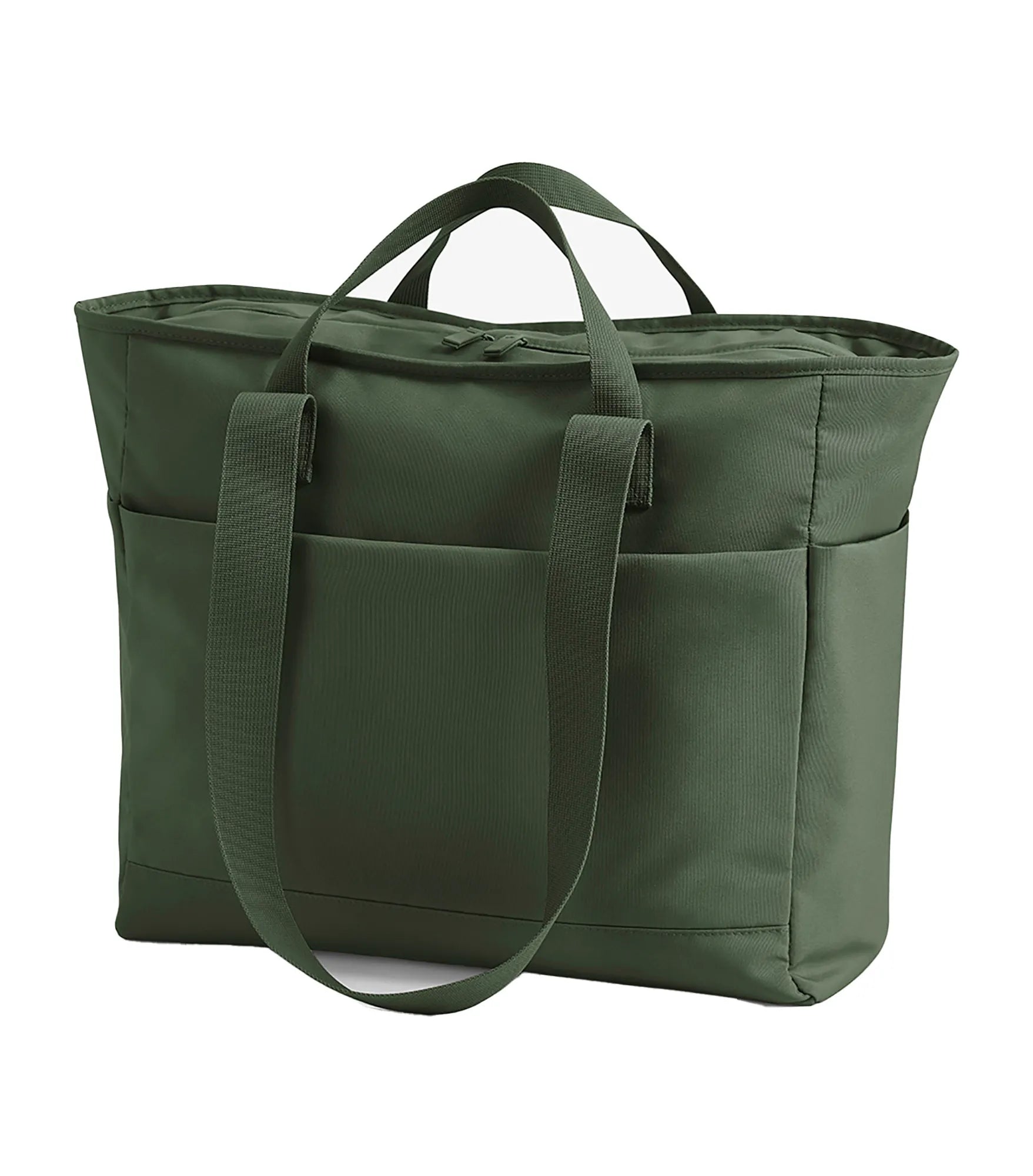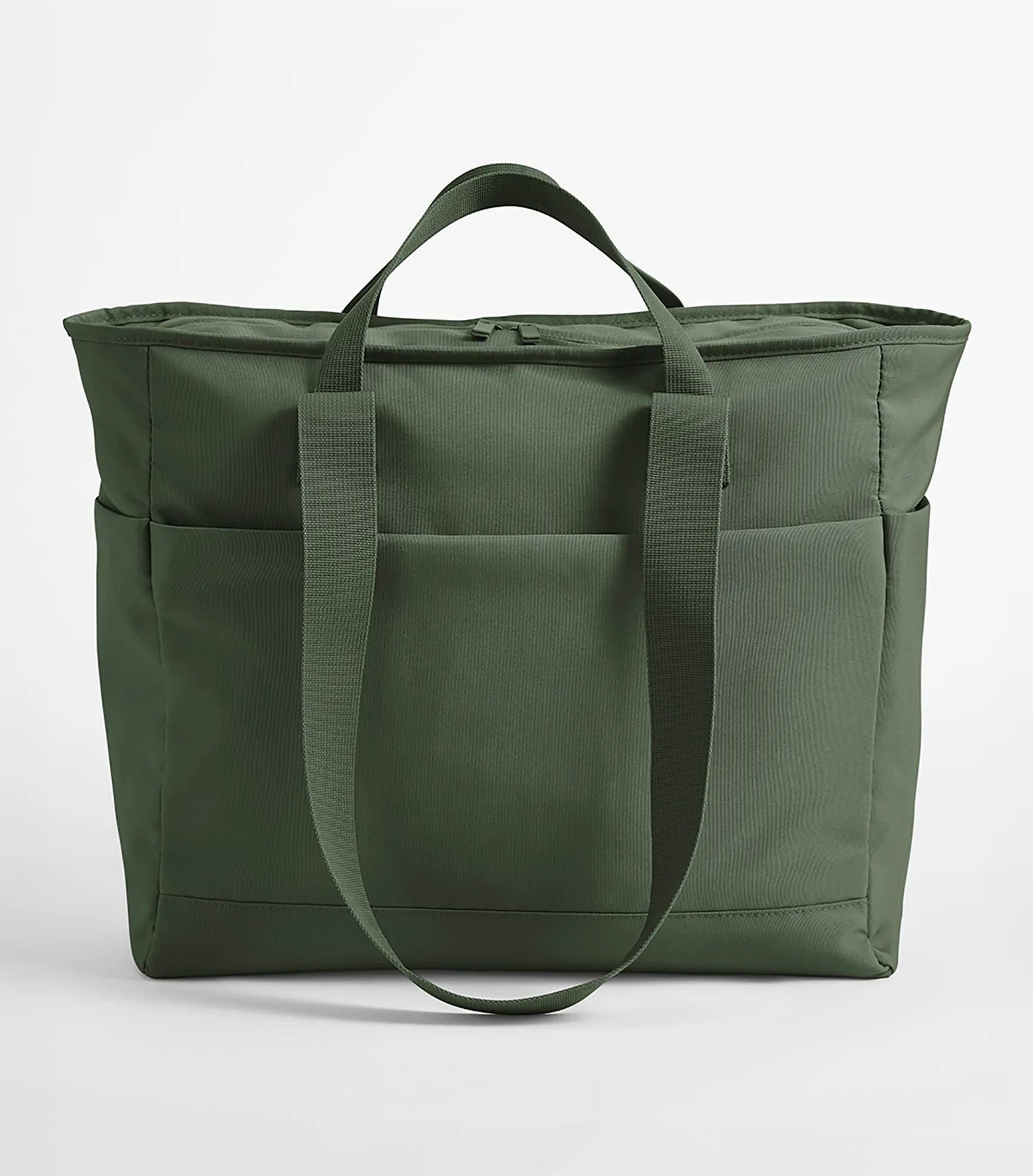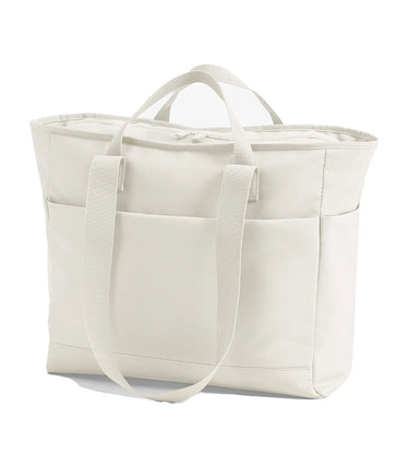 Bag with minimalist design, made of water repellent recycled polyester. Contains 100% GRS certified recycled polyester, certified by Control Union CU811033. Large main compartment with zipper. Interior pocket with zipper. Side pockets. Lightly padded for extra protection. Double carry handles, for hand or shoulder. TearAway label.