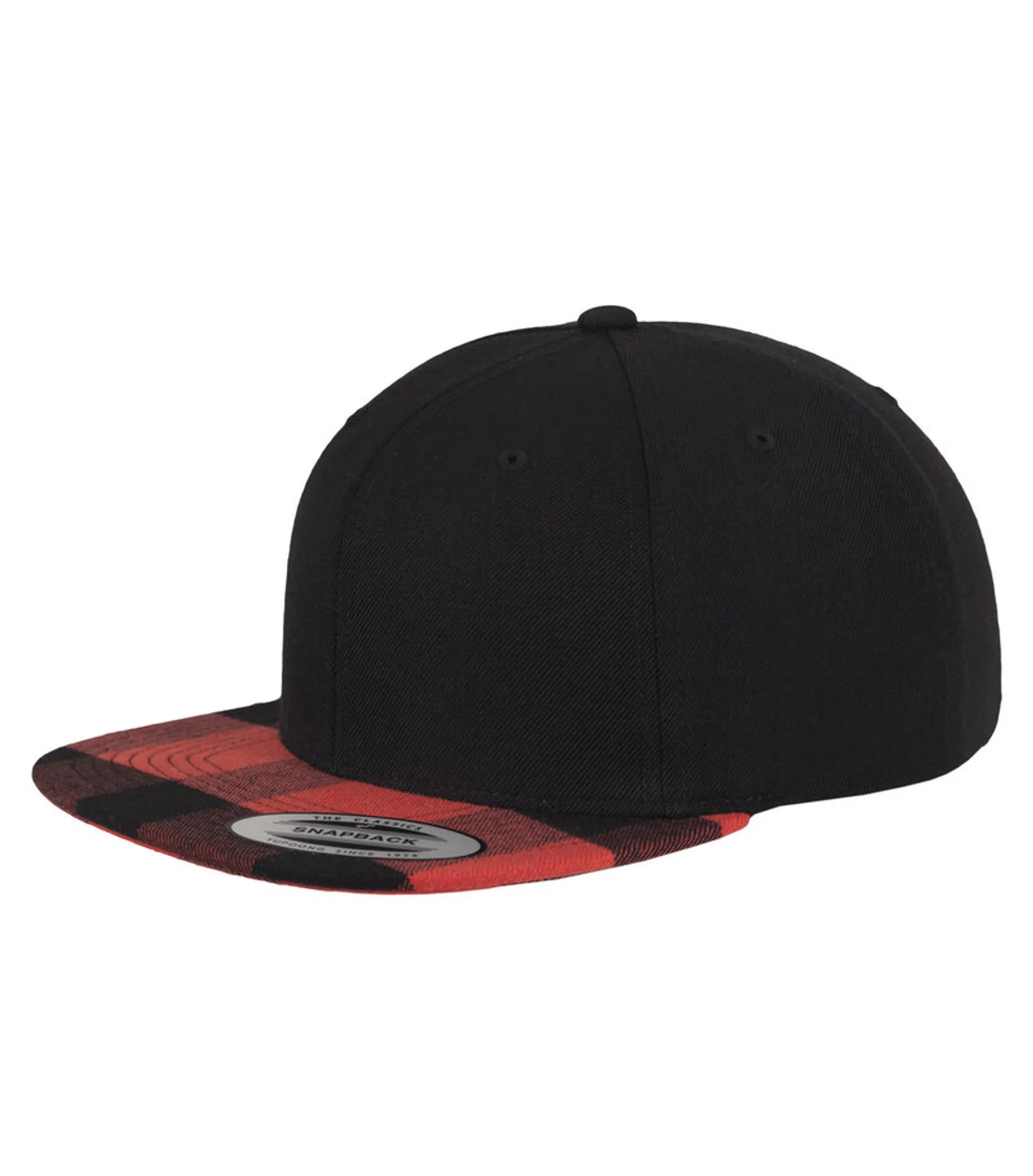 Classic snapback model. Reinforced front. Matching snap buttons. Plaid flannel visor.