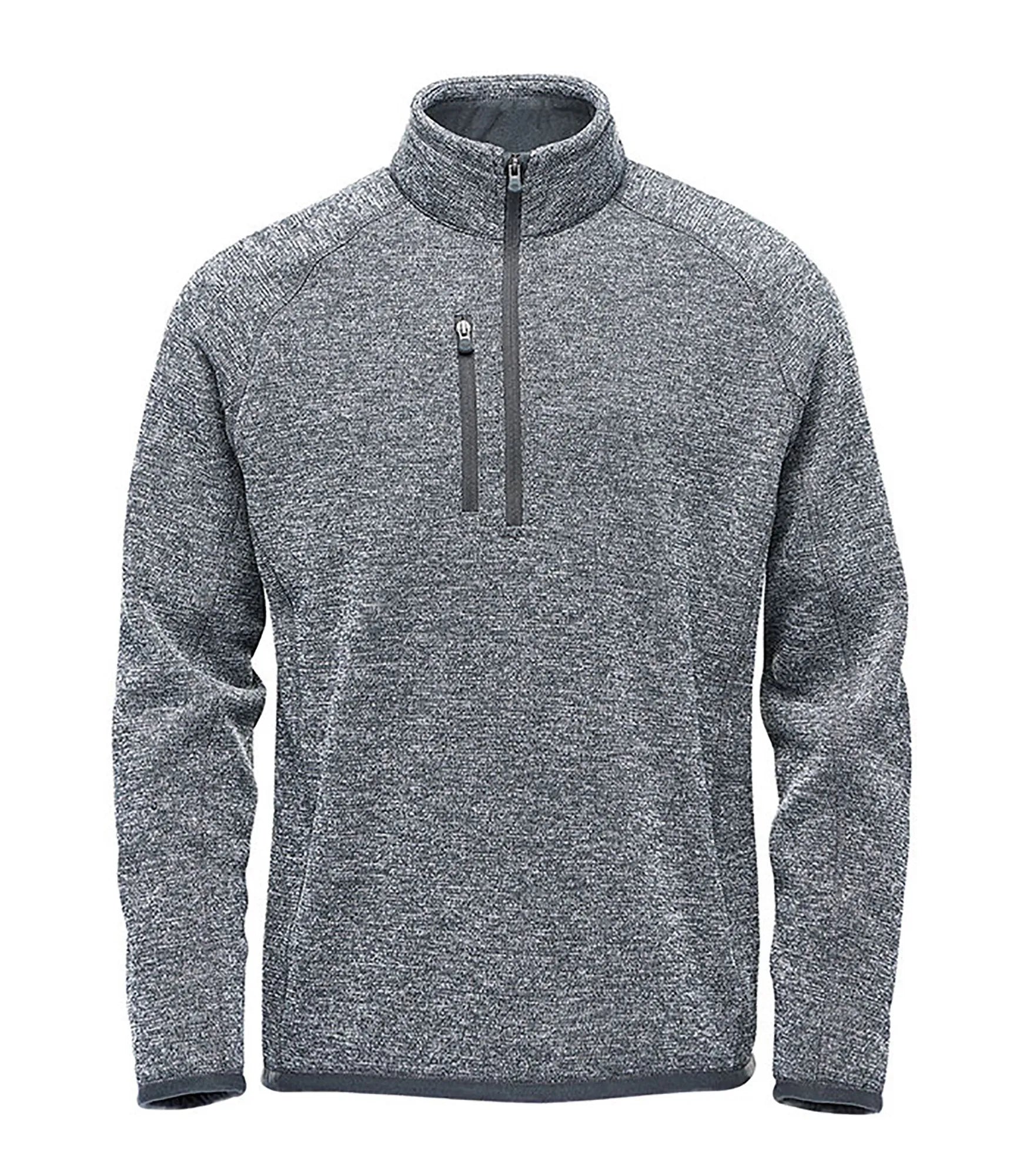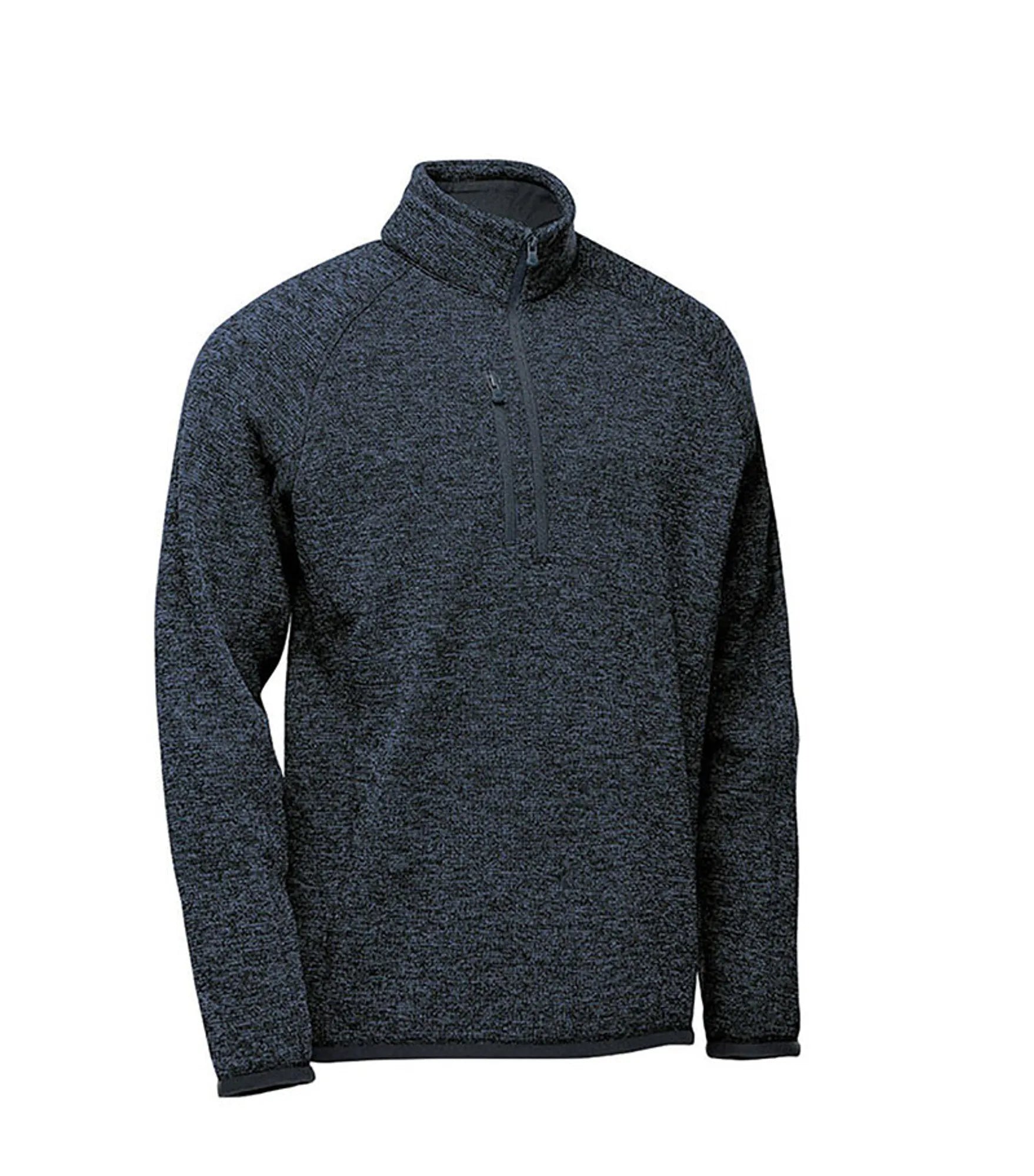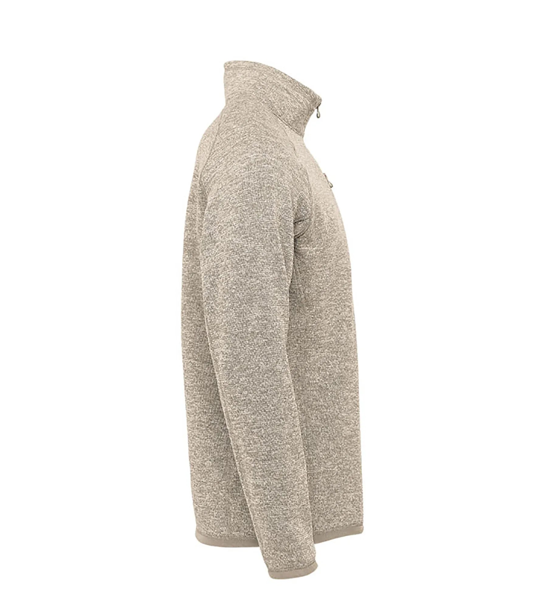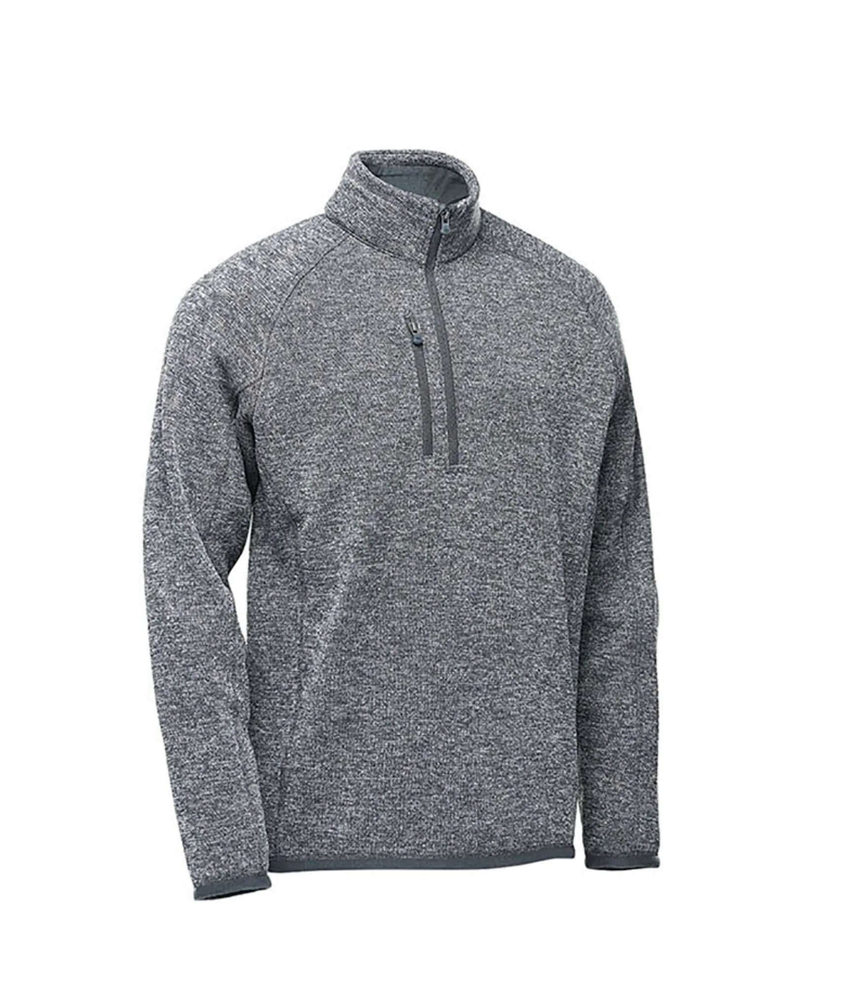 Fleece sweater with extended ¼ zipper for men. Brushed interior. Lined collar, cuffs and hem. Color-matching edge tape on sleeve cuffs and hem. Flatlock seams. Raglan sleeves for better freedom of movement. Pocket with zipper on chest. Chin guard. Made with recycled polyester for reduced environmental impact.
