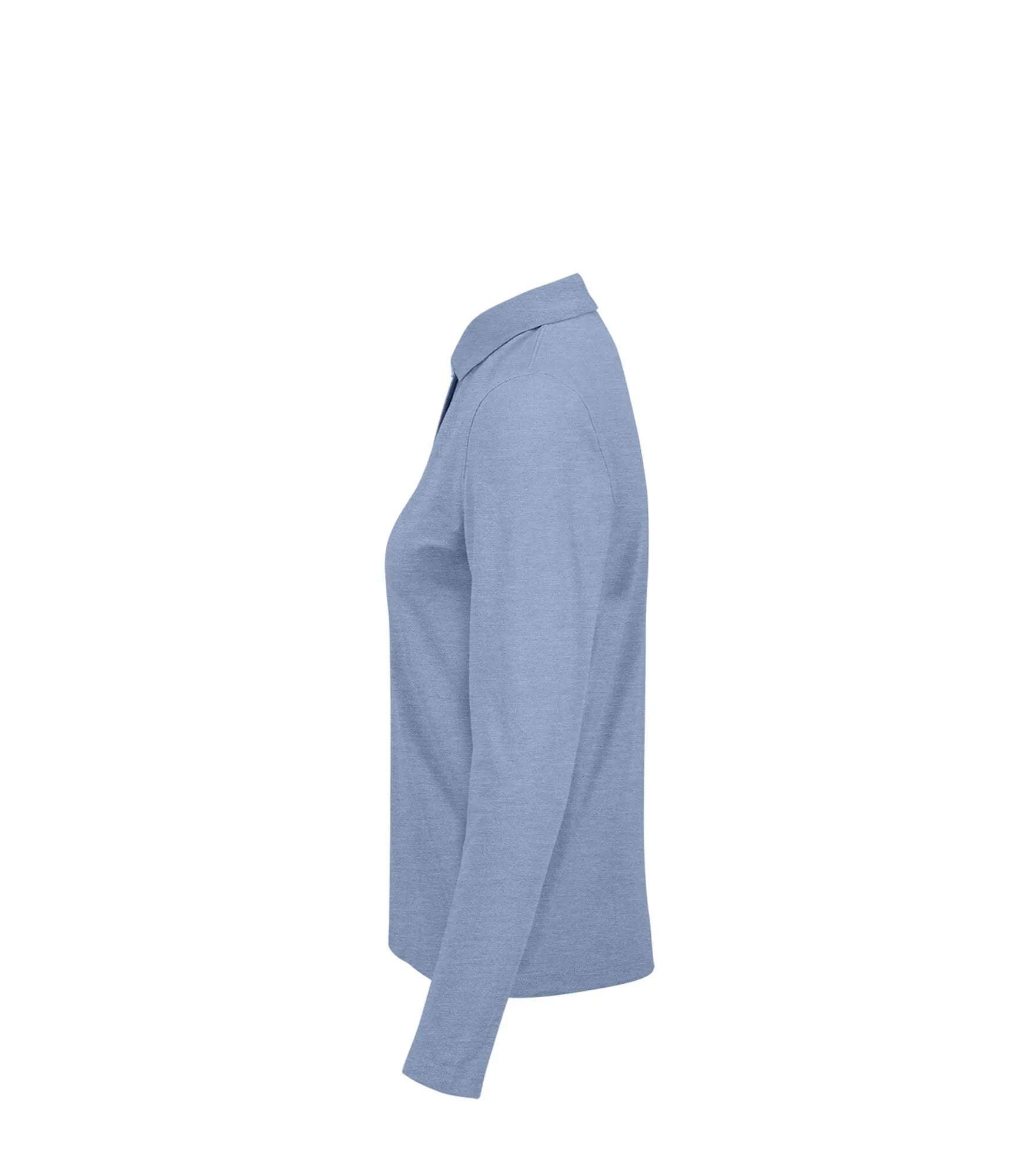 Long-sleeved ladies' polo shirt in modern classic style, made of 100% pre-shrunk ringspun cotton. Two tone-on-tone buttons on the placket. 1x1 ribbed collar. Shoulder seams with reinforcement tape. Herringbone patterned edge band on the neck. Side slits. Ultra-soft satin label.