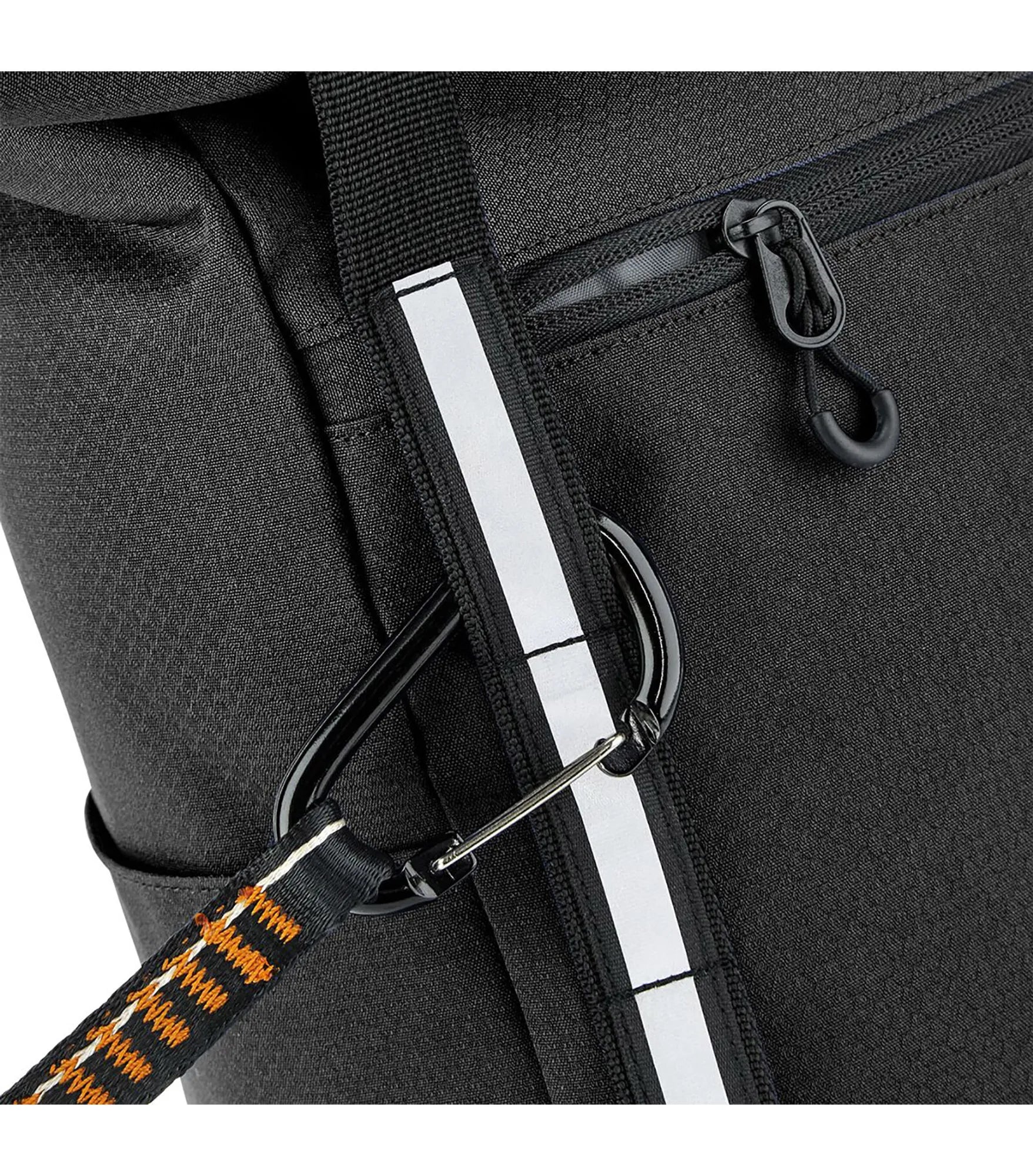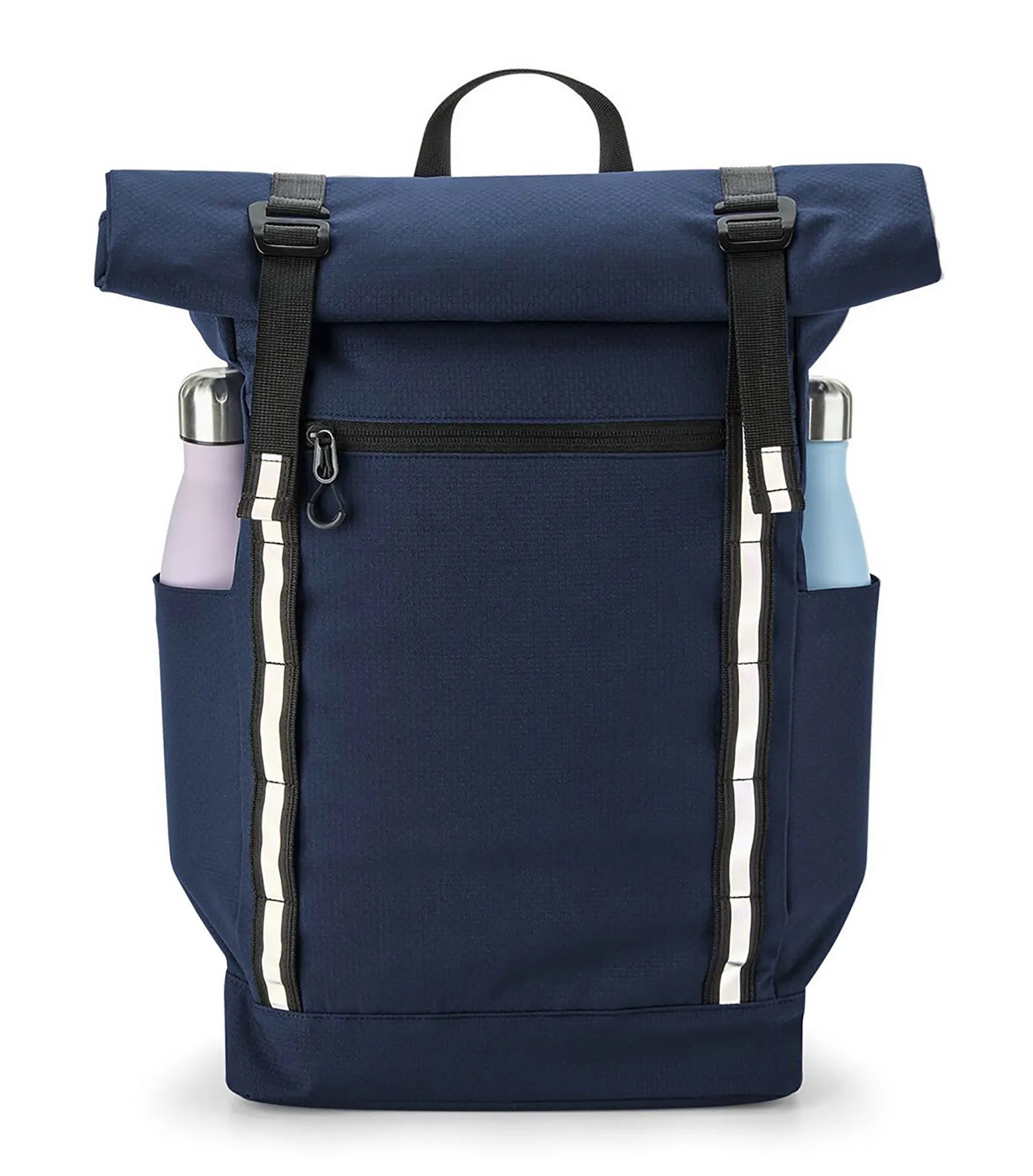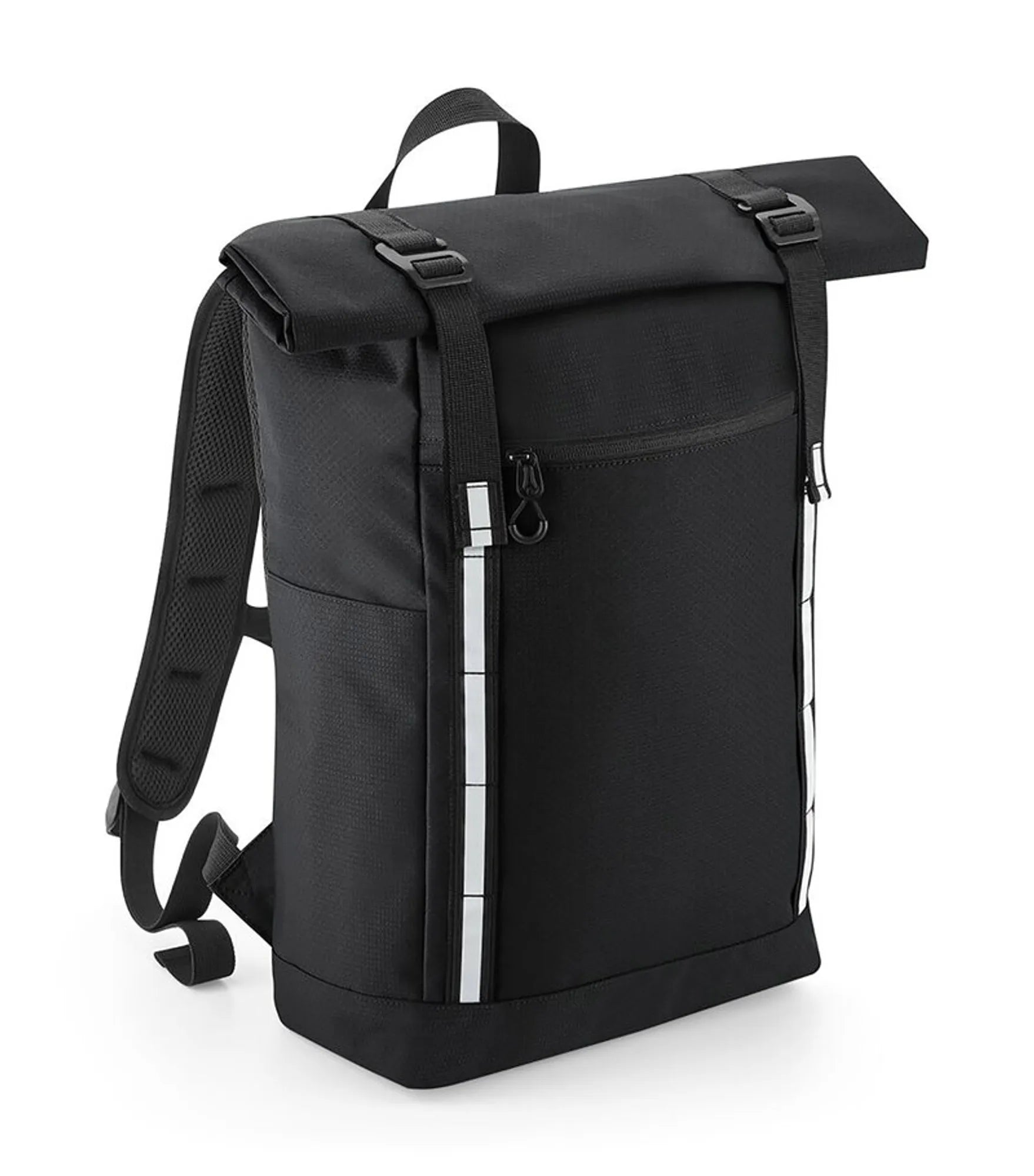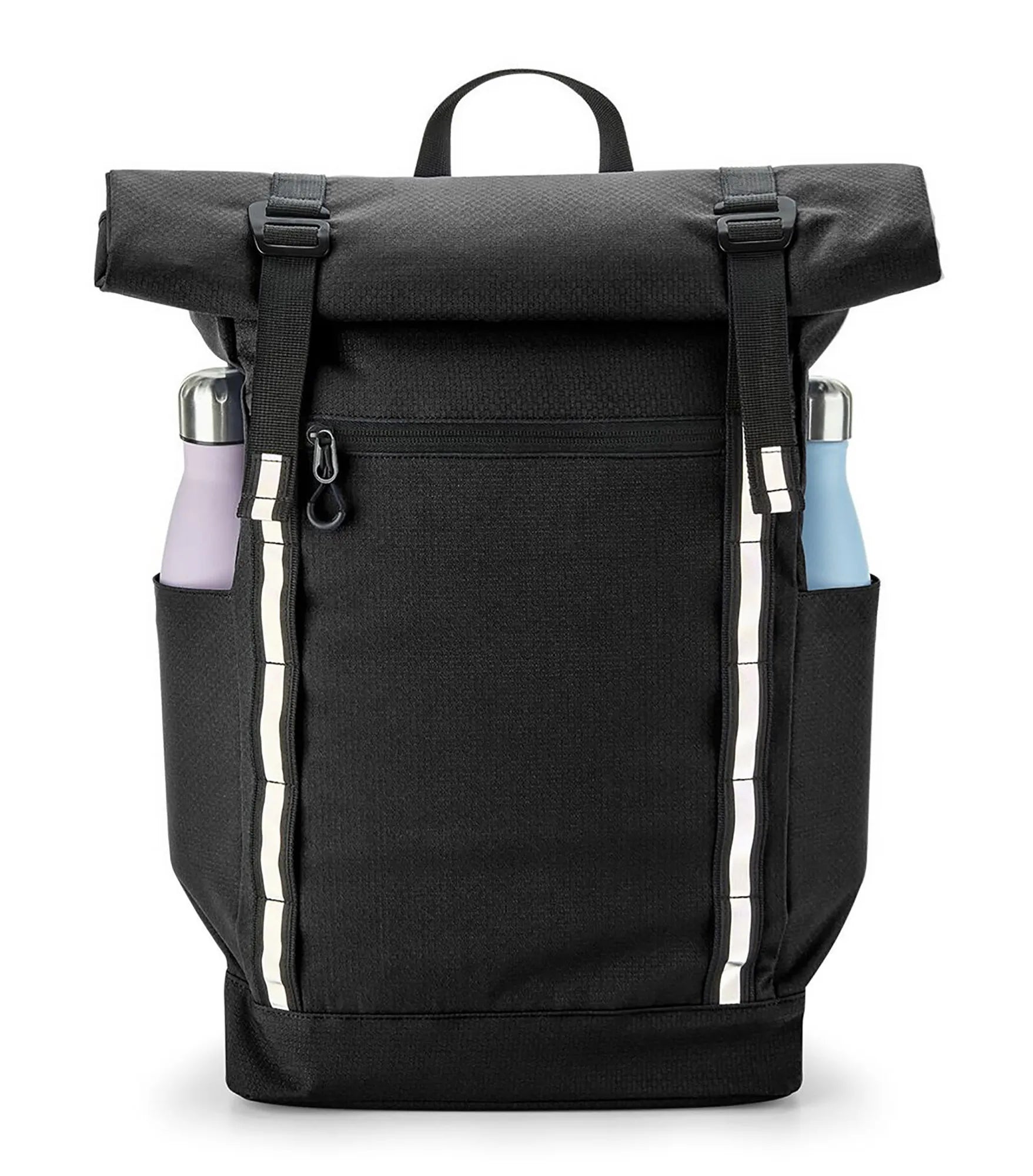 Backpack with roll-top closure in streamlined design. Padded internal laptop pocket with room for a 15.6" laptop. Durable water-resistant treatment for increased weather protection and weather-resistant roll closure. Reflective stripes for improved visibility. PVC free. Quick access pocket with zipper on the front. Two external bottle pockets. Ergonomic ventilating padded back panel in mesh. User-friendly metal buckles. Ergonomically designed adjustable shoulder straps. Adjustable chest strap. Attachment loops for multiple purposes. Carrying handle. TearAway label.