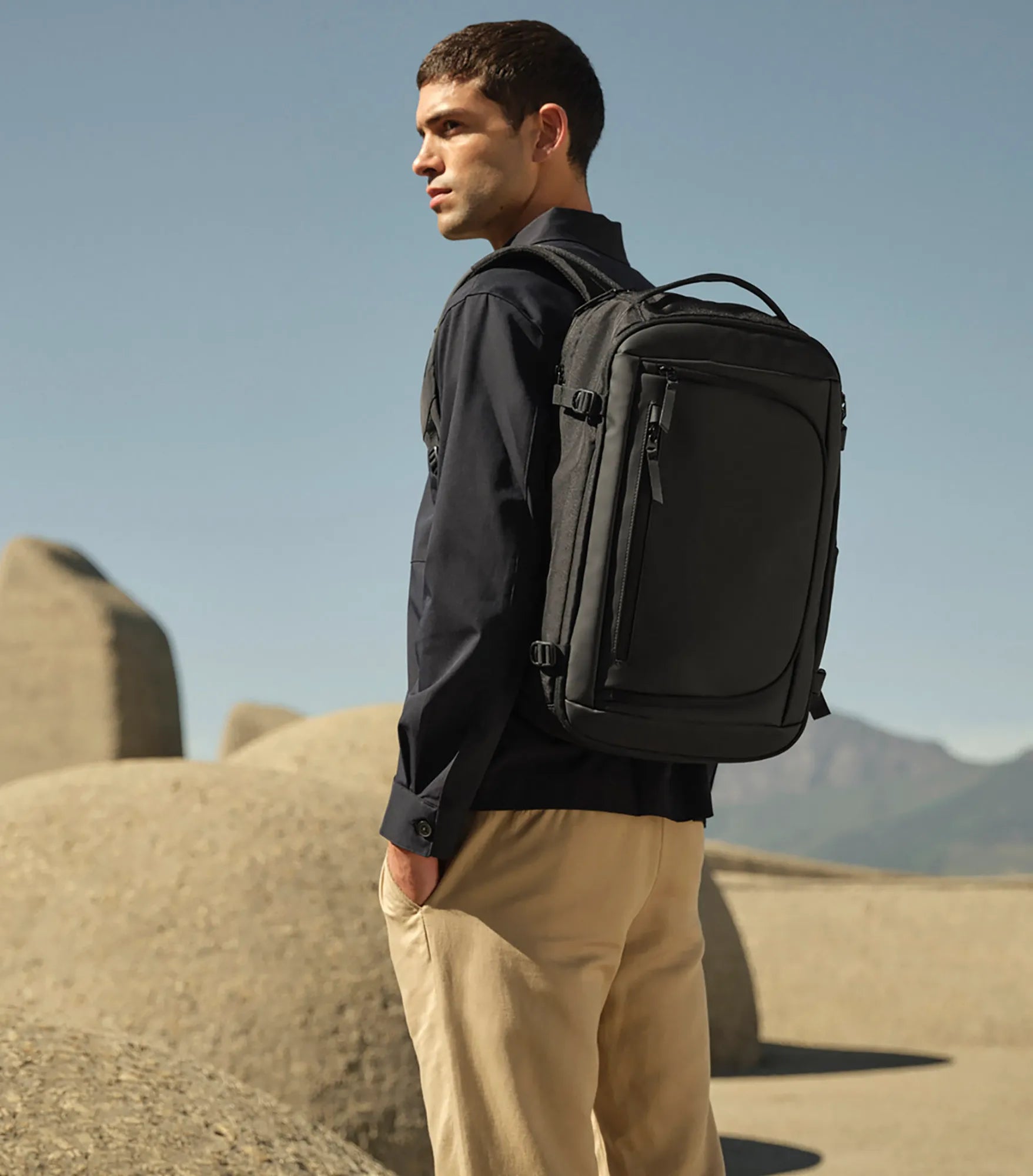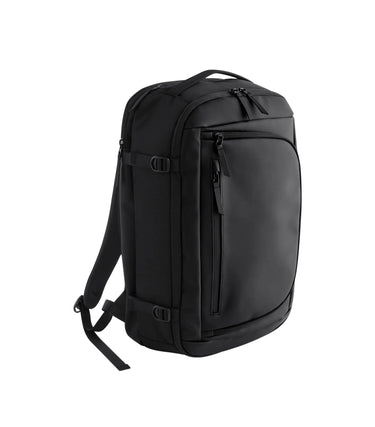 Zürich Travel Backpack is the perfect backpack for those who want to combine style, function and sustainability. Designed for a modern life on the move, it features a smart clamshell opening, a generously padded laptop compartment for up to 16", zippered front pockets with internal organization to keep both tech and personal items in order. The padded airmesh shoulder straps and back panel provide high comfort even during long days, while the luggage strap for suitcases and compression straps make travel smoother. Made from GRS-certified recycled polyester and equipped with a TearAway label — a sustainable and professional choice for branding.