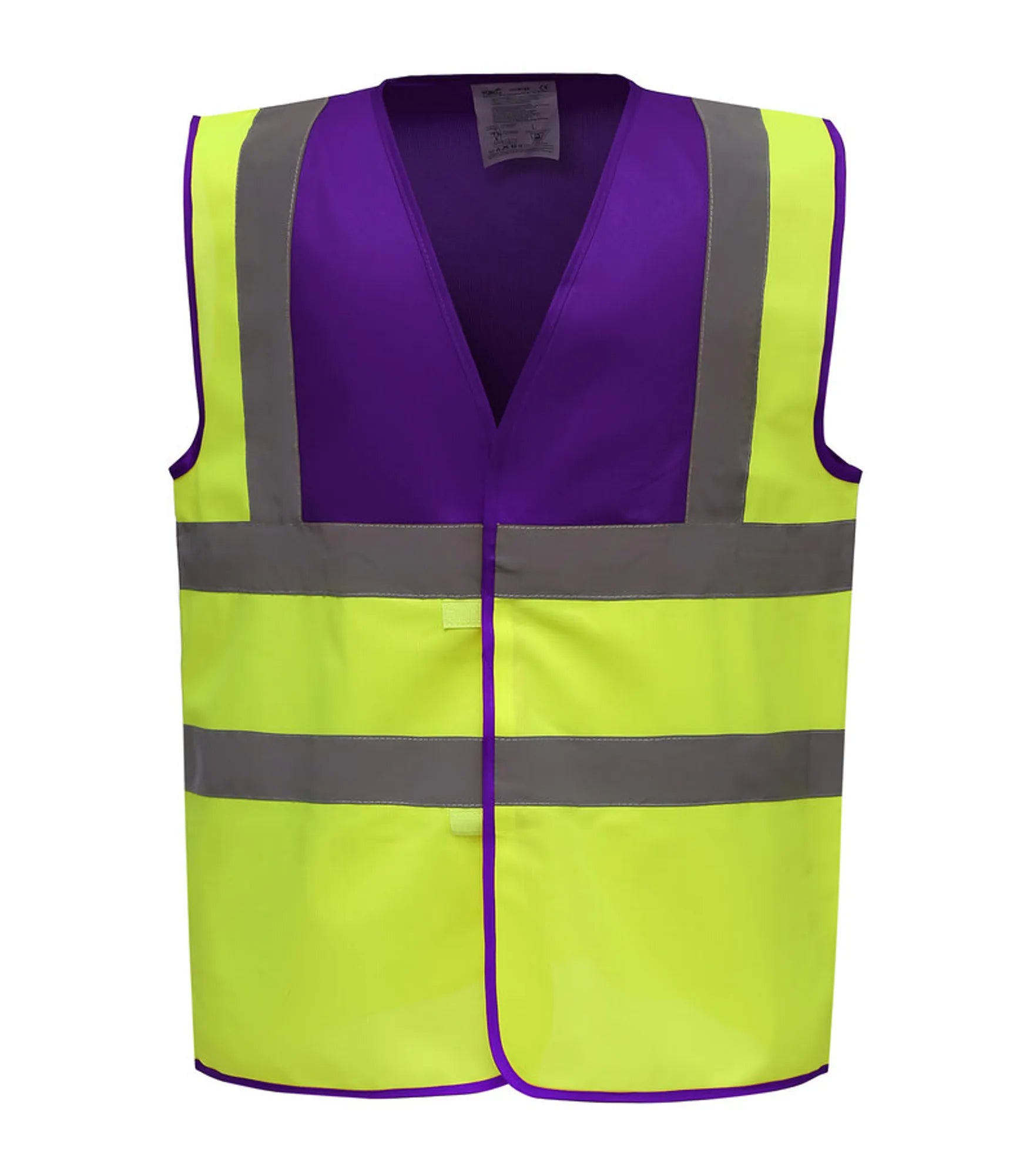 West with velcro opening and 5 cm wide reflective bands around body and over shoulder. Hi-Vis Yellow, Orange, Yellow/Orange comply with EN ISO20471: 2013 Class 2; Black, Lime, Navy, Purple, Paramedic Green, Red, Raspberry, Royal Blue Yoke and Hi Vis Yellow meet EN ISO20471: 2013 class 1. All other colors provide increased visibility in all types of environments.