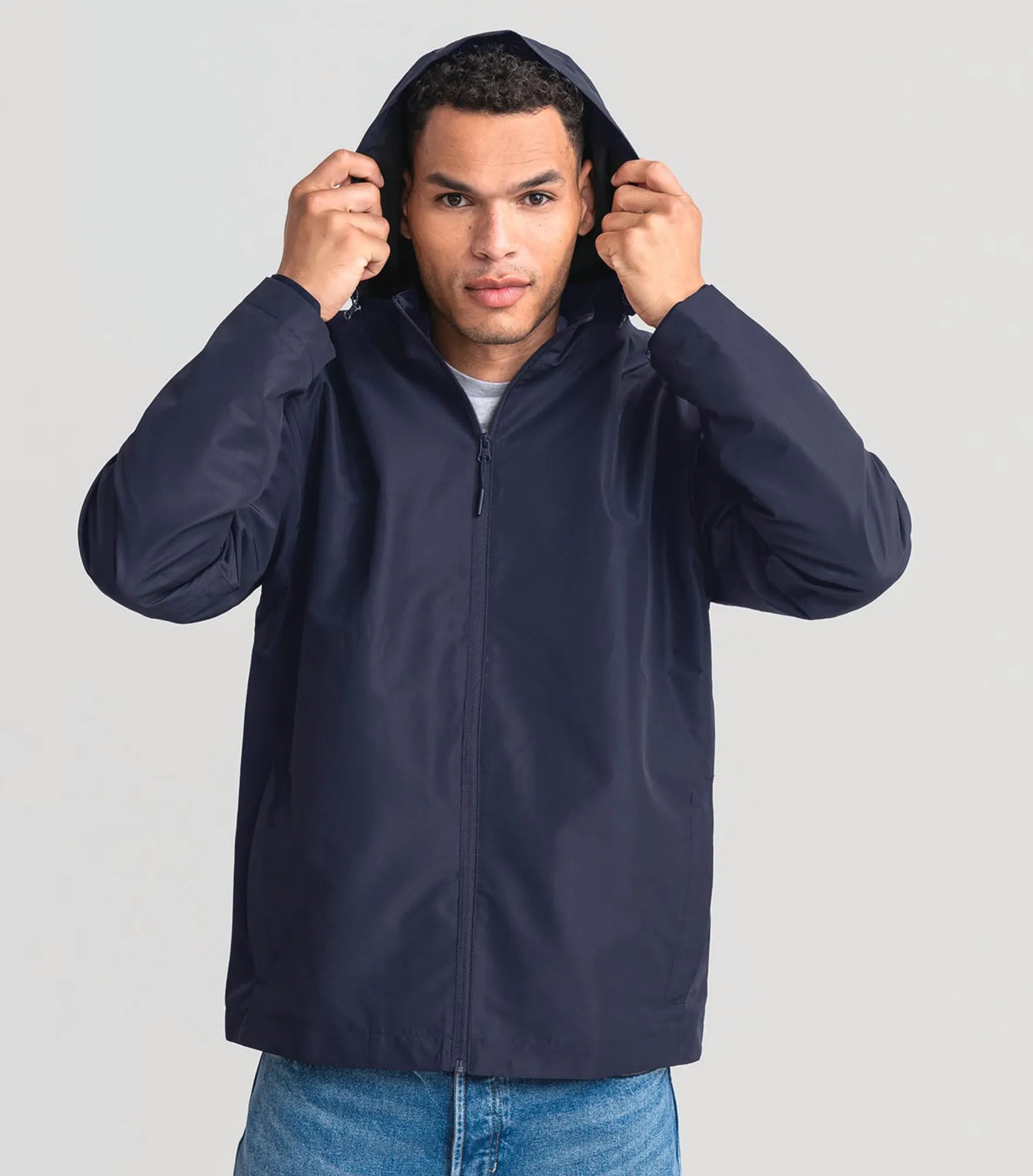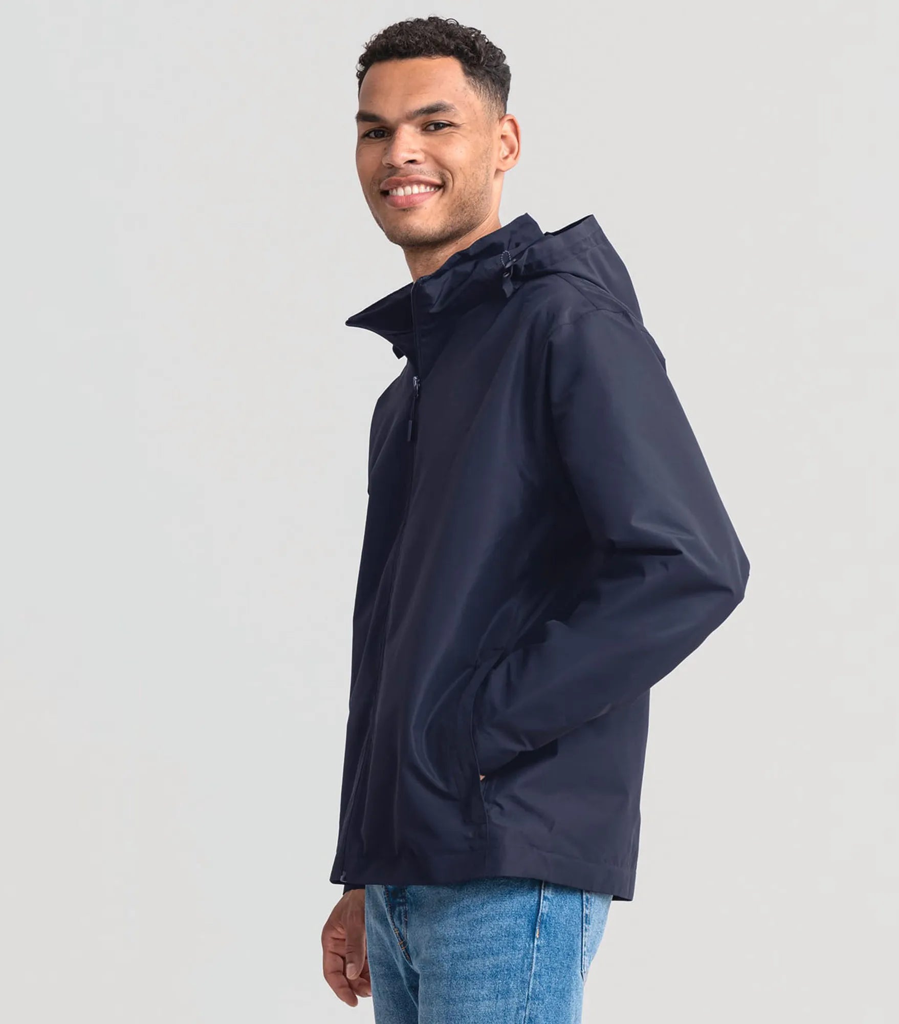 A light weight jacket with wind- and water-repellent properties that make it a versatile and reliable companion in any situation. Made from 100% recycled polyester. Classic fit. Two side pockets and an inner pocket. Detachable and adjustable three-piece hood. Reversed front zipper. Removable label for easy customization to your brand.