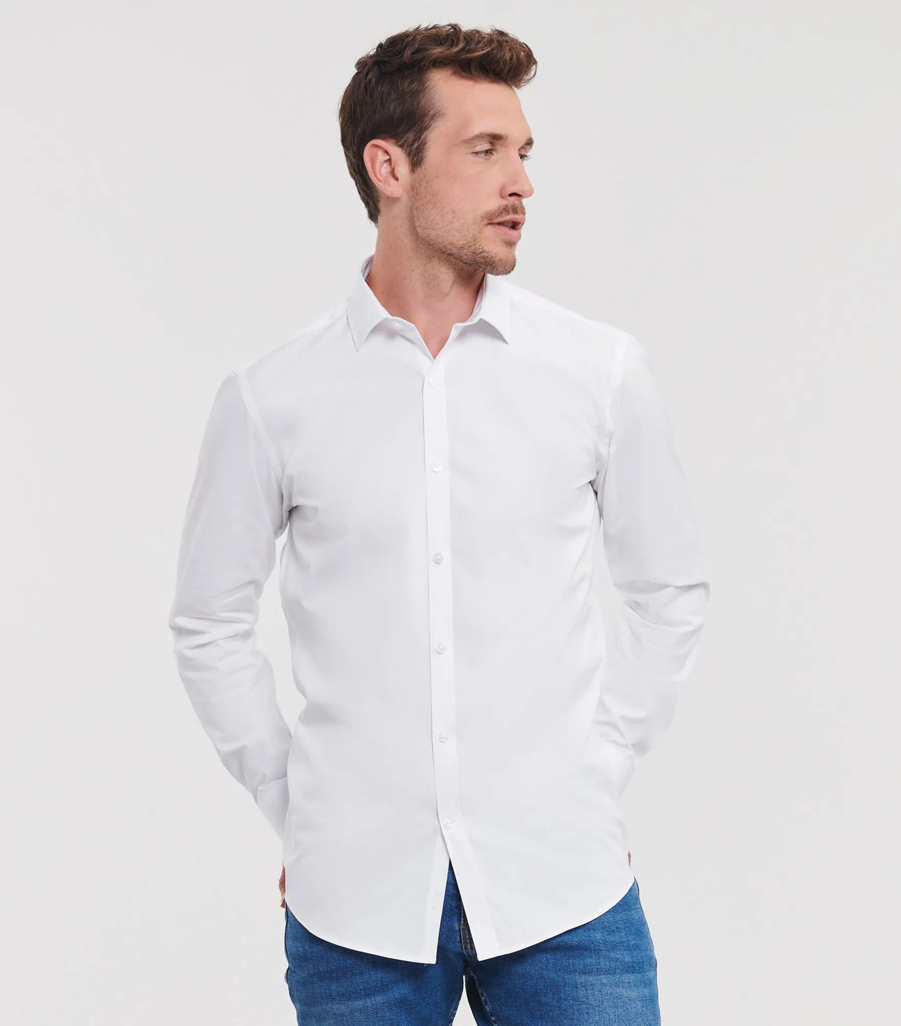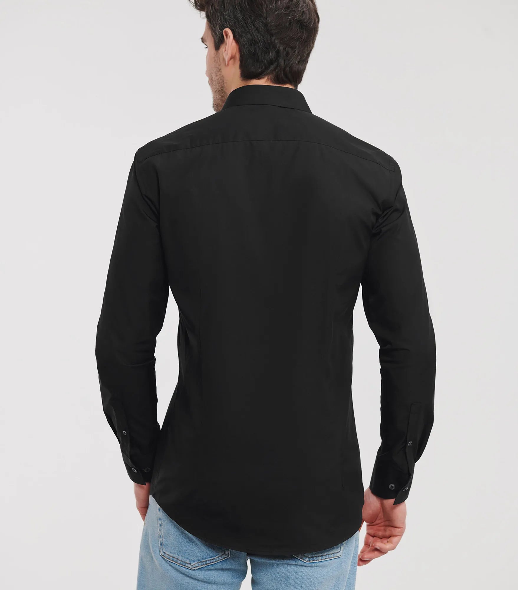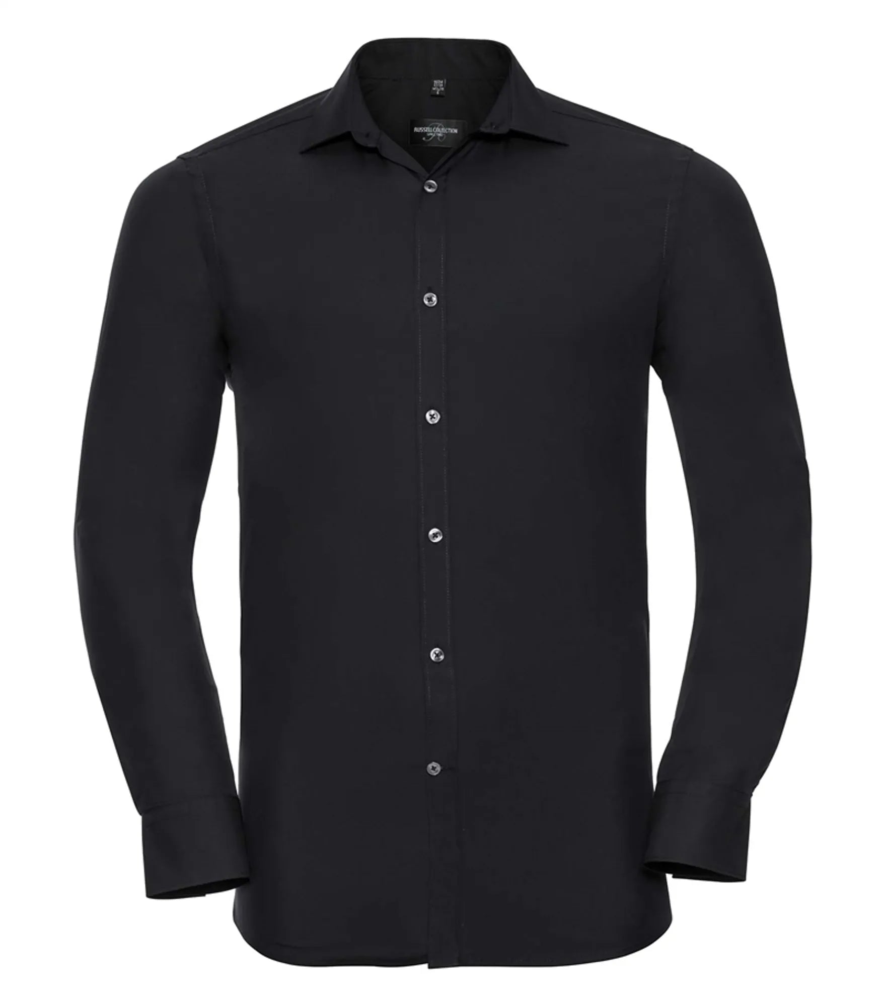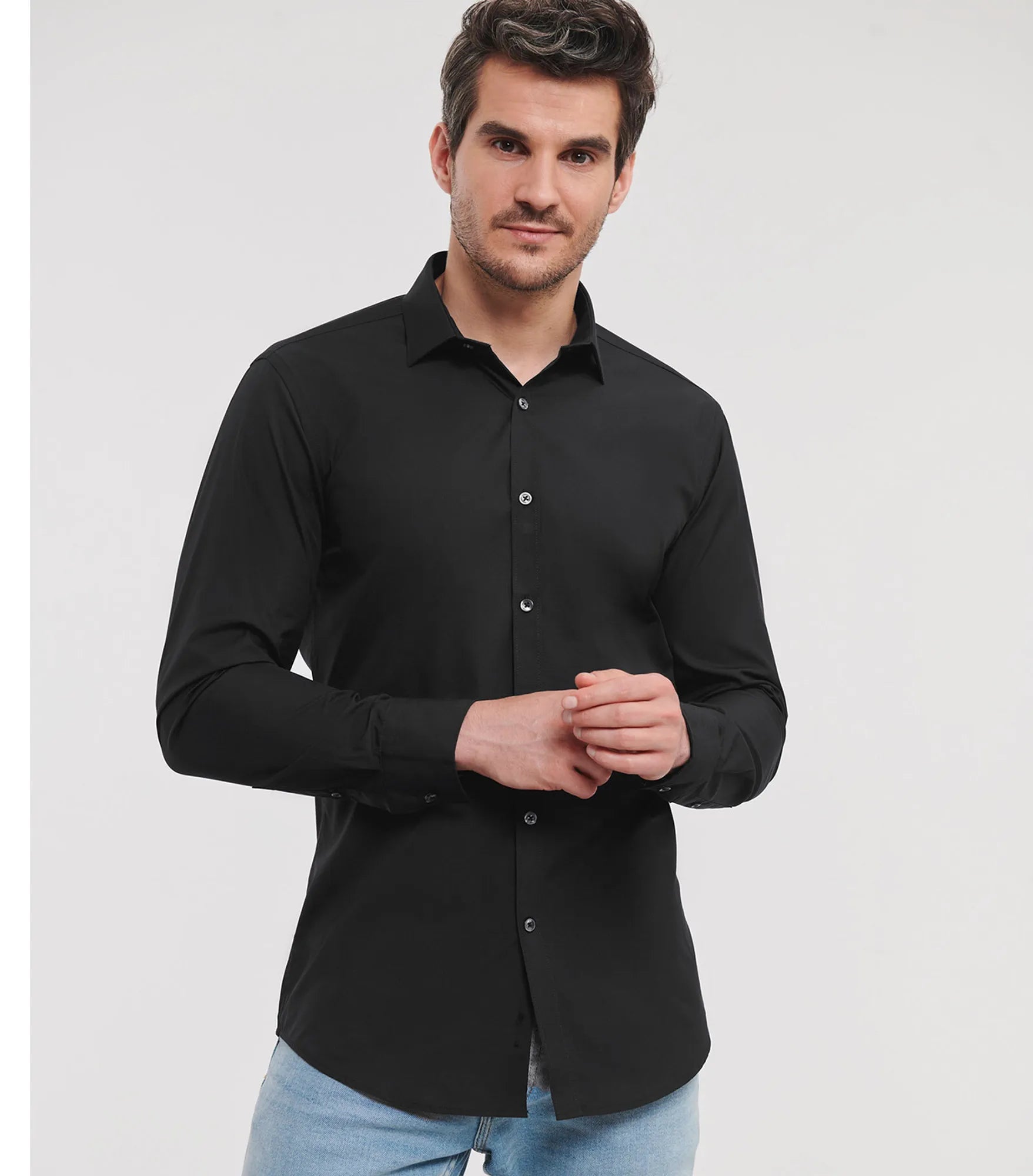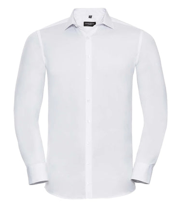 Men's shirt in long sleeve with maximum comfort through stretch material Lycra.T400. Figure-hugging fit. Cuff buttons can be used. Longer in the model.