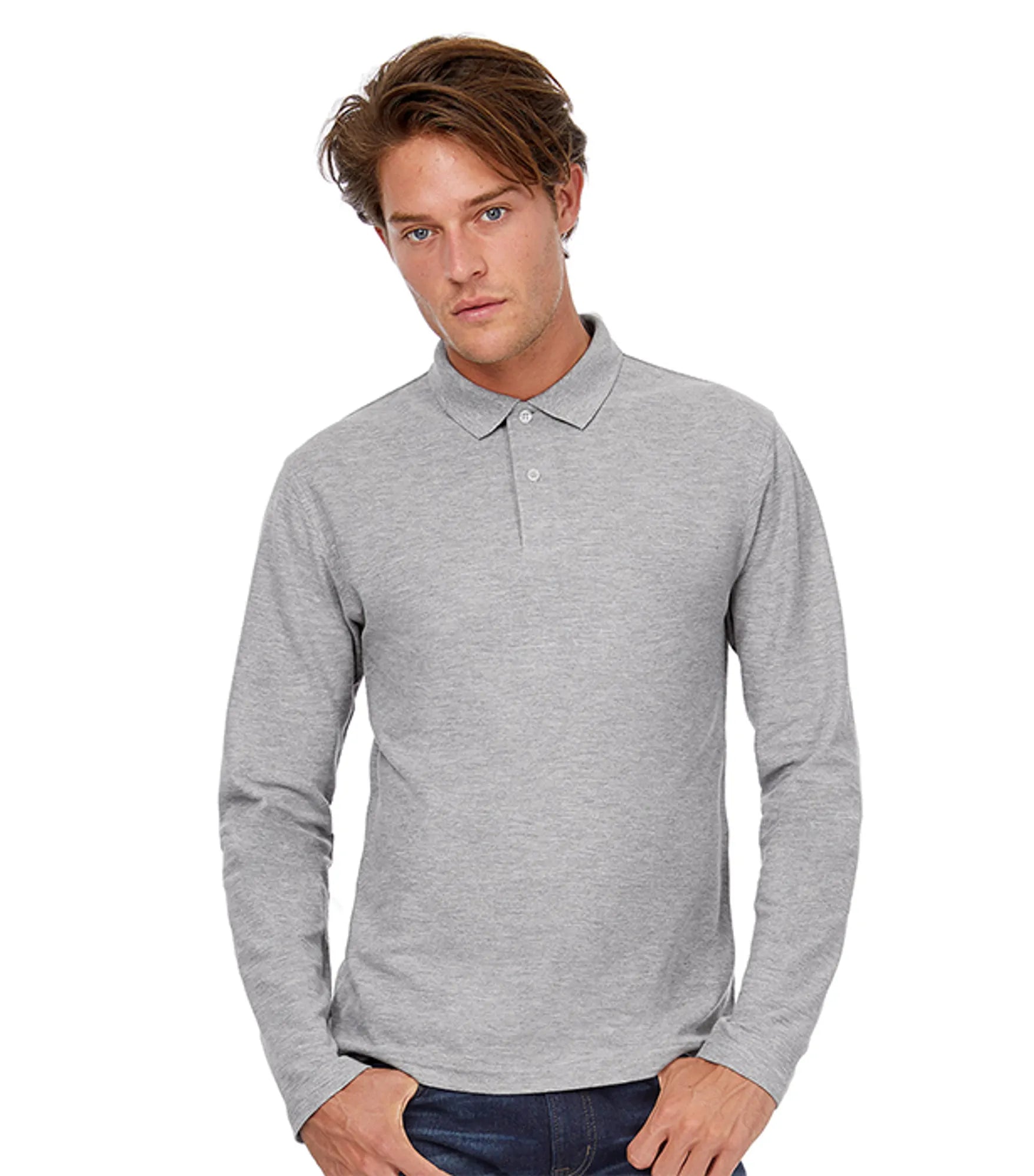 Long-sleeved pique polo in 100% ring-spun cotton for men. 2 tone-on-tone buttons on the placket. Side seam.