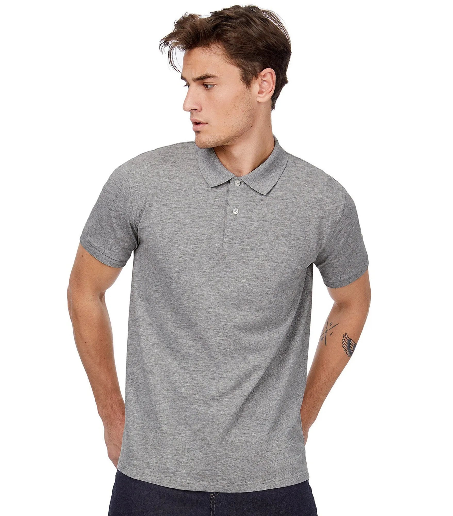 Men's piqué polo in 100% ring-spun combed organic cotton. Modern fit. Two tone-on-tone buttons on the placket and side vents. Ribbed sleeve cuffs. Rebrandable.