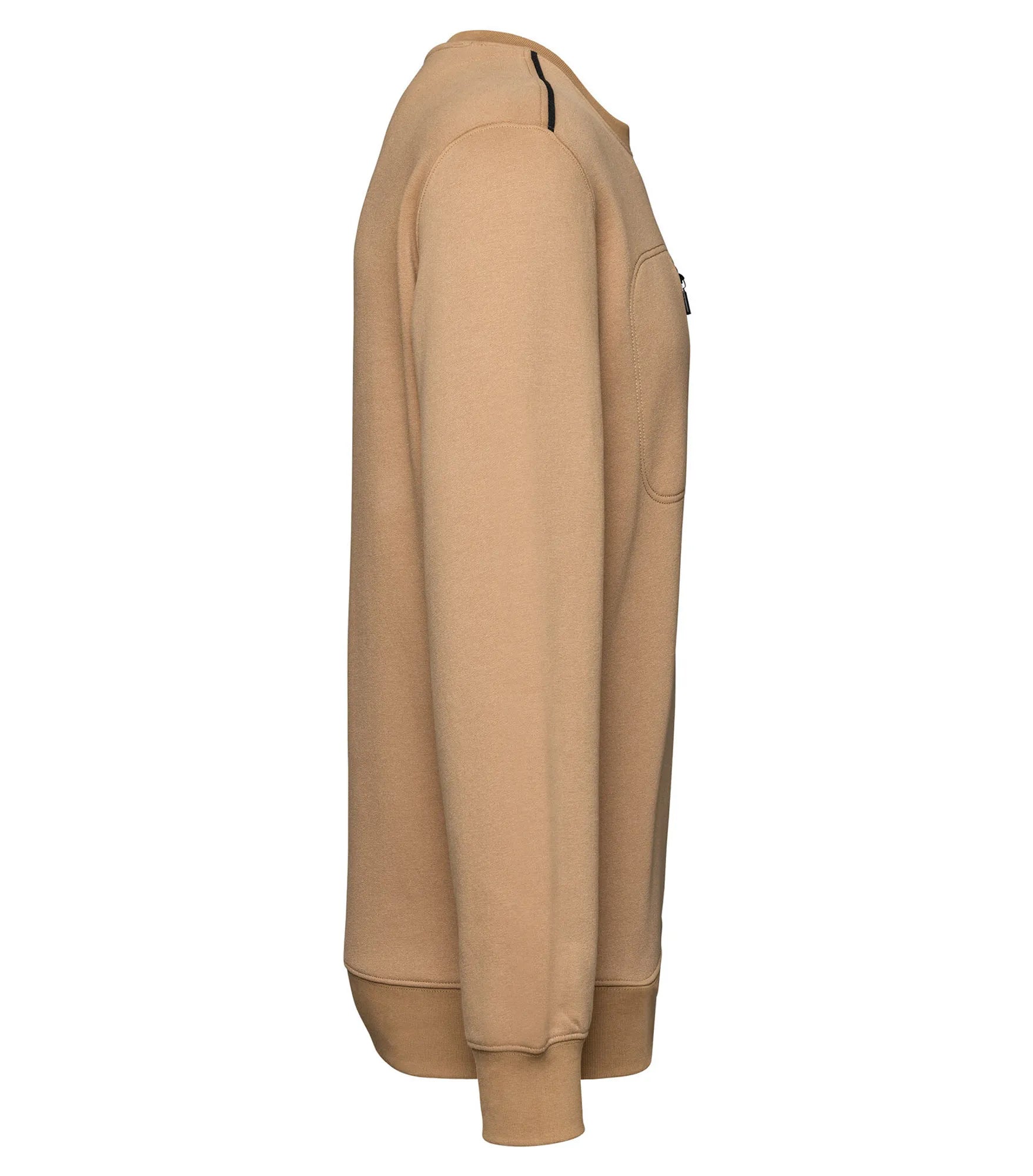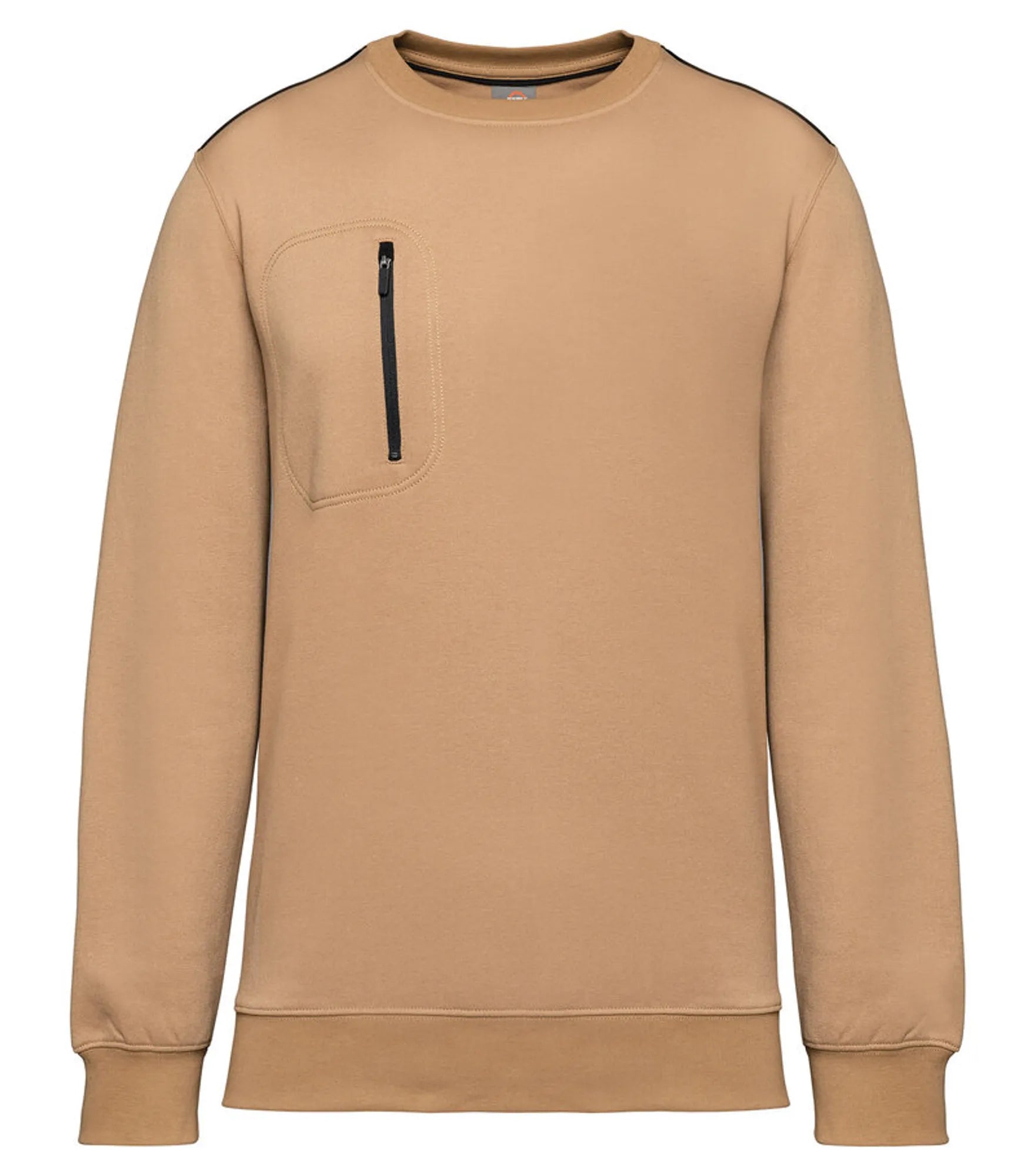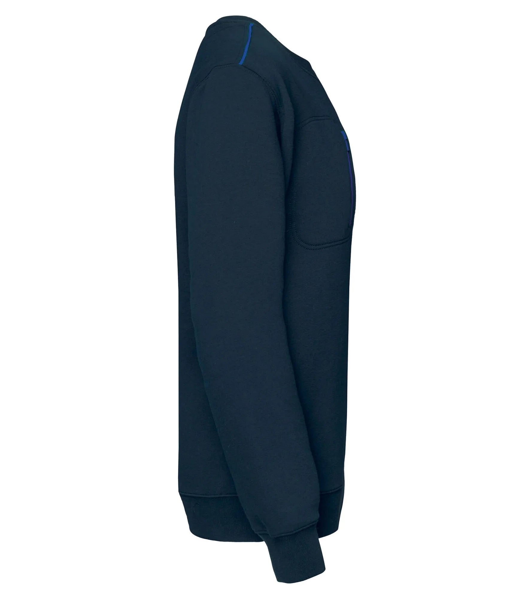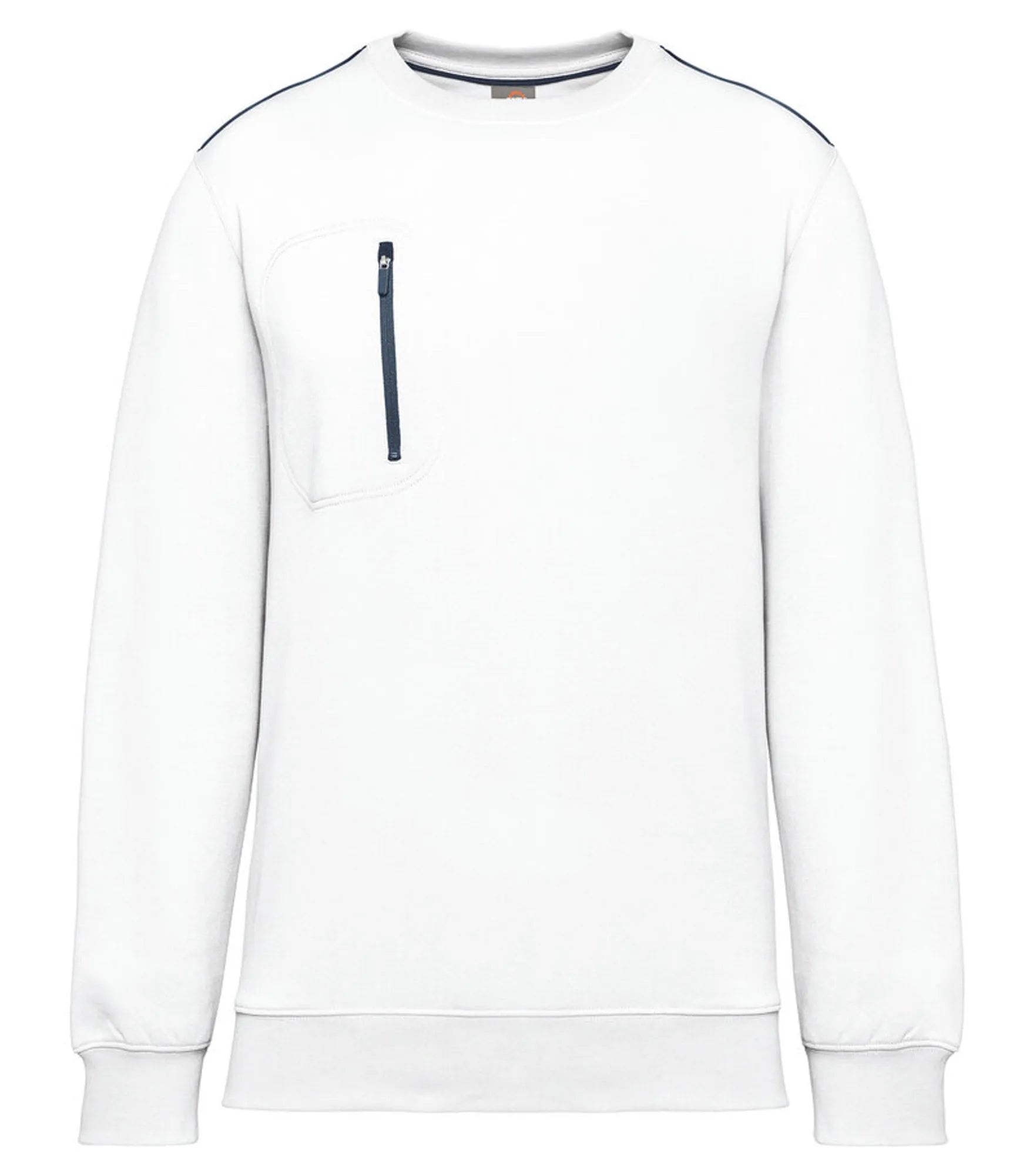 Unisex sweatshirt made of polyester and combed cotton. Brushed 3-layer fleece, LSF (Low Shrinkage Fleece). Vortex thread. Slim fit. Crescent moon at the back and inner taped neck with contrast color. 1x1 rib knit at neck, bottom hem and cuffs. Contrast color on shoulders. Chest pocket on right side with contrast colored nylon zipper. Double stitching around pocket, sleeves and cuffs. Can be washed at 60 degrees. TearAway label.