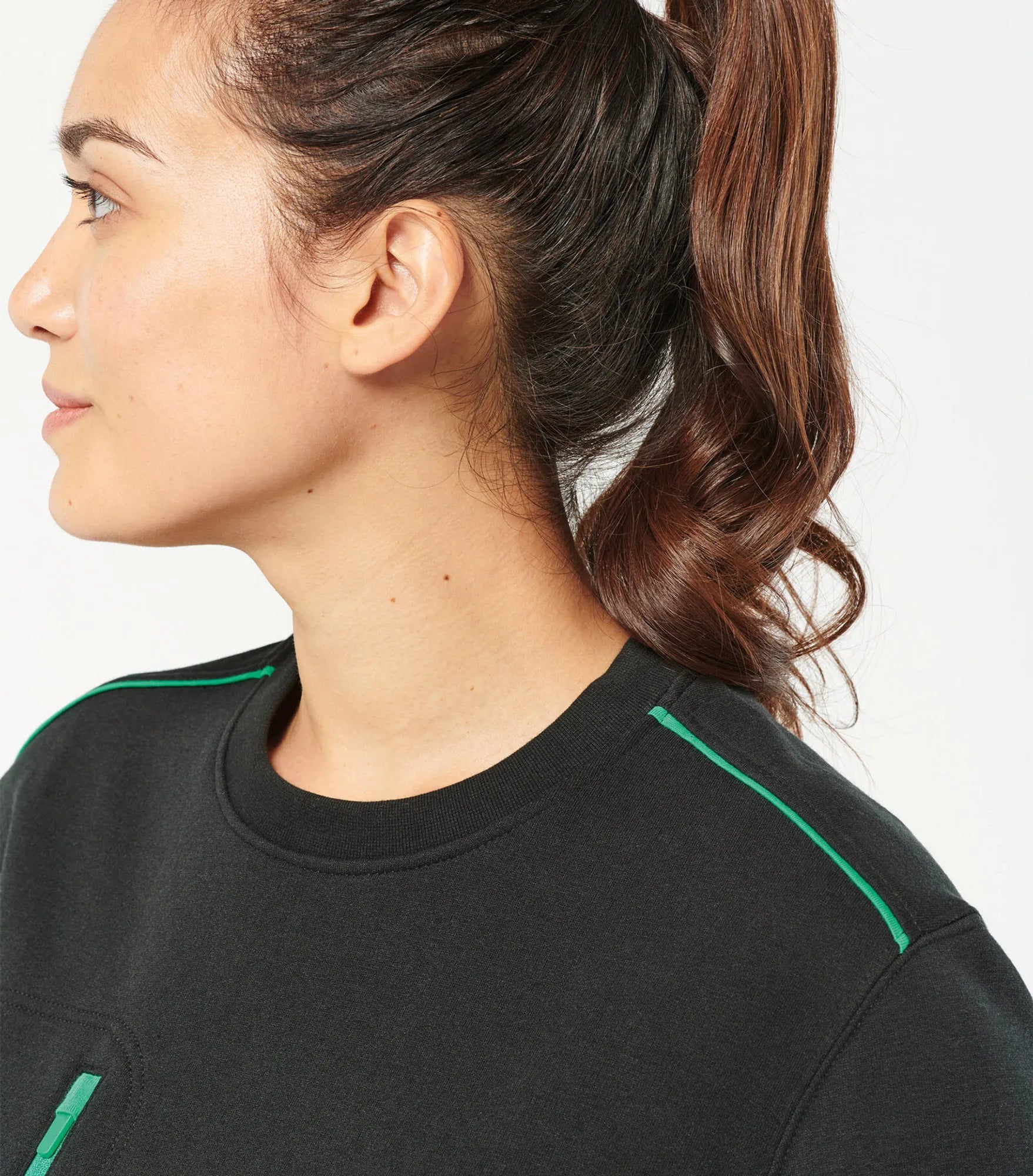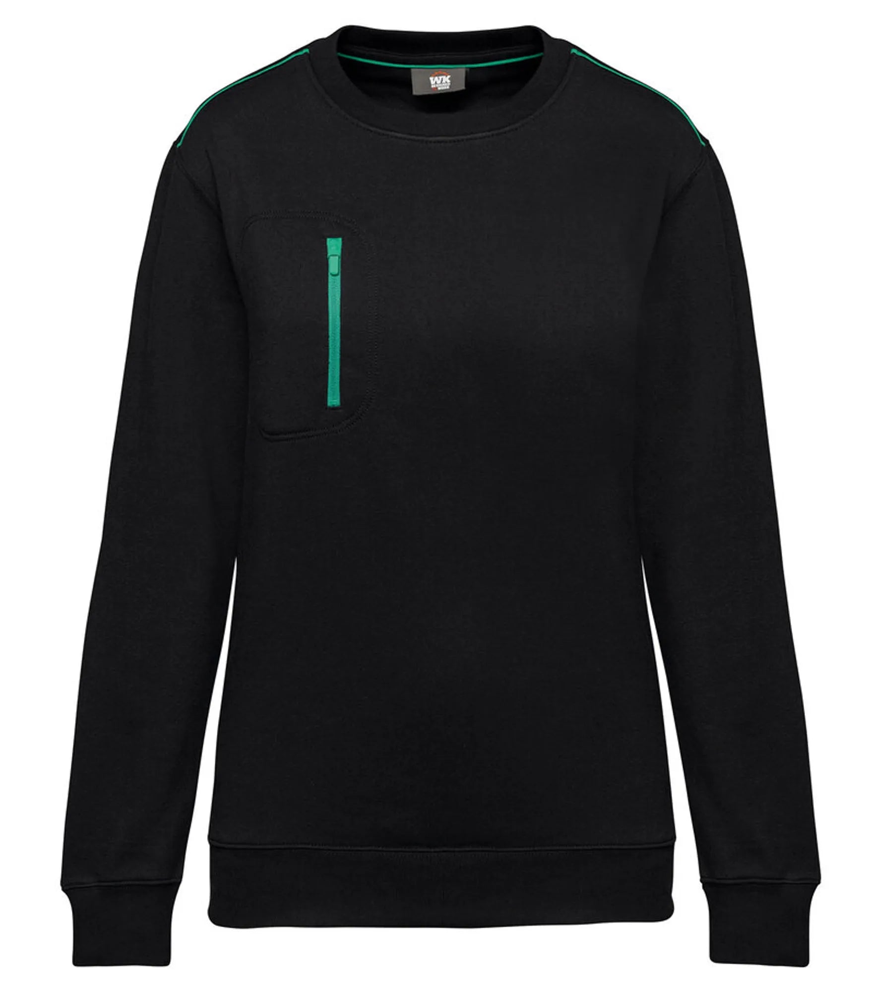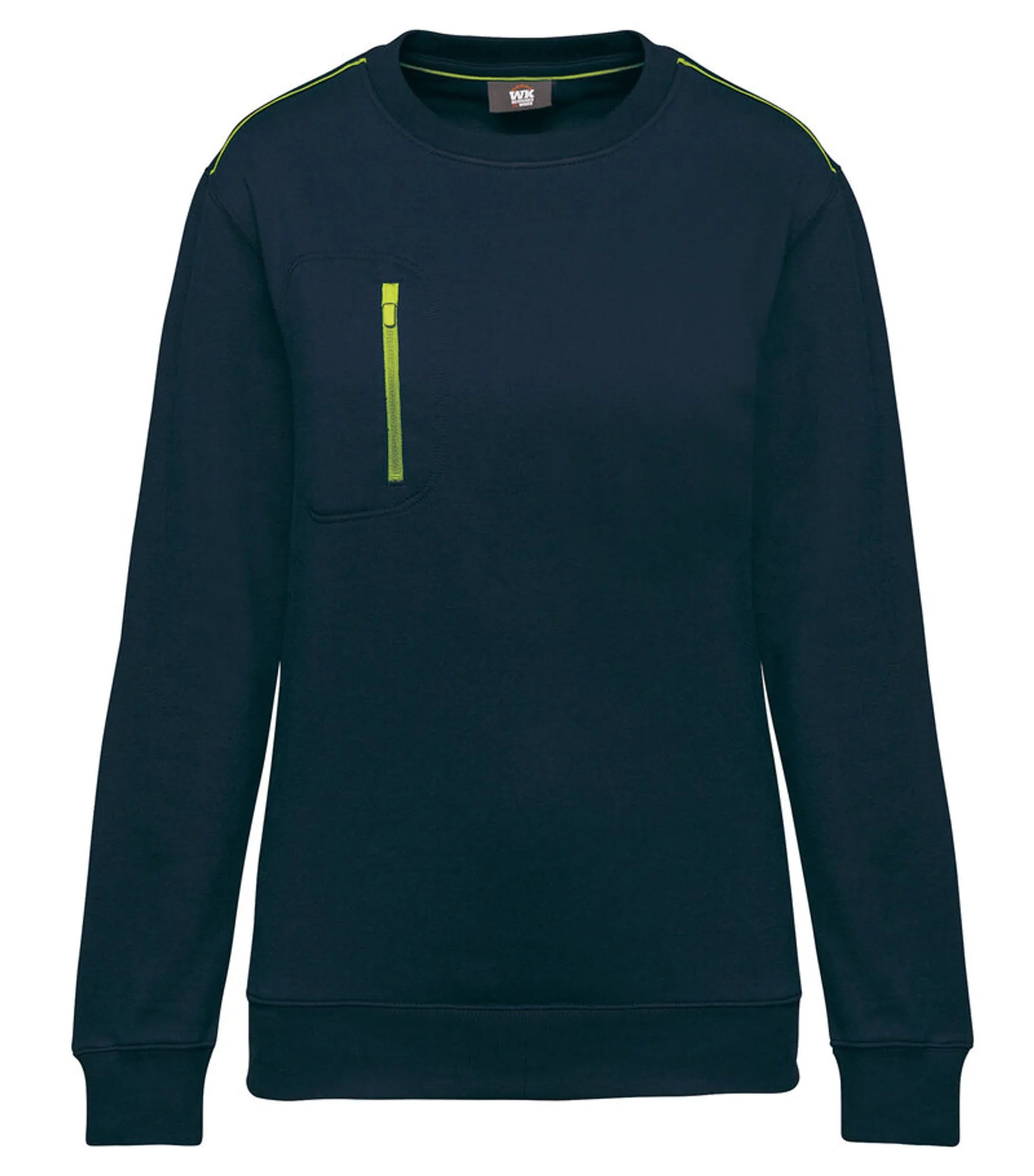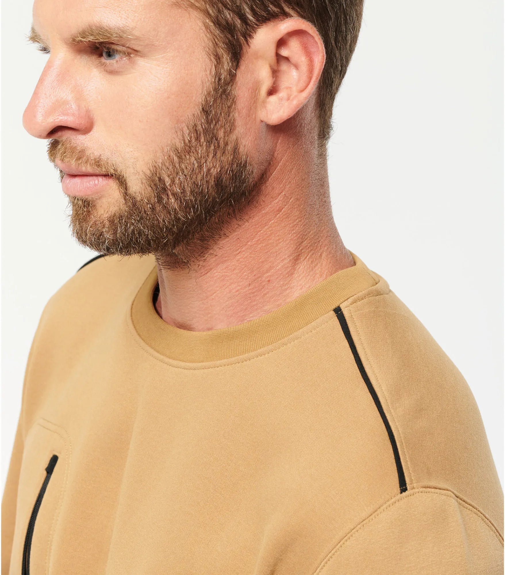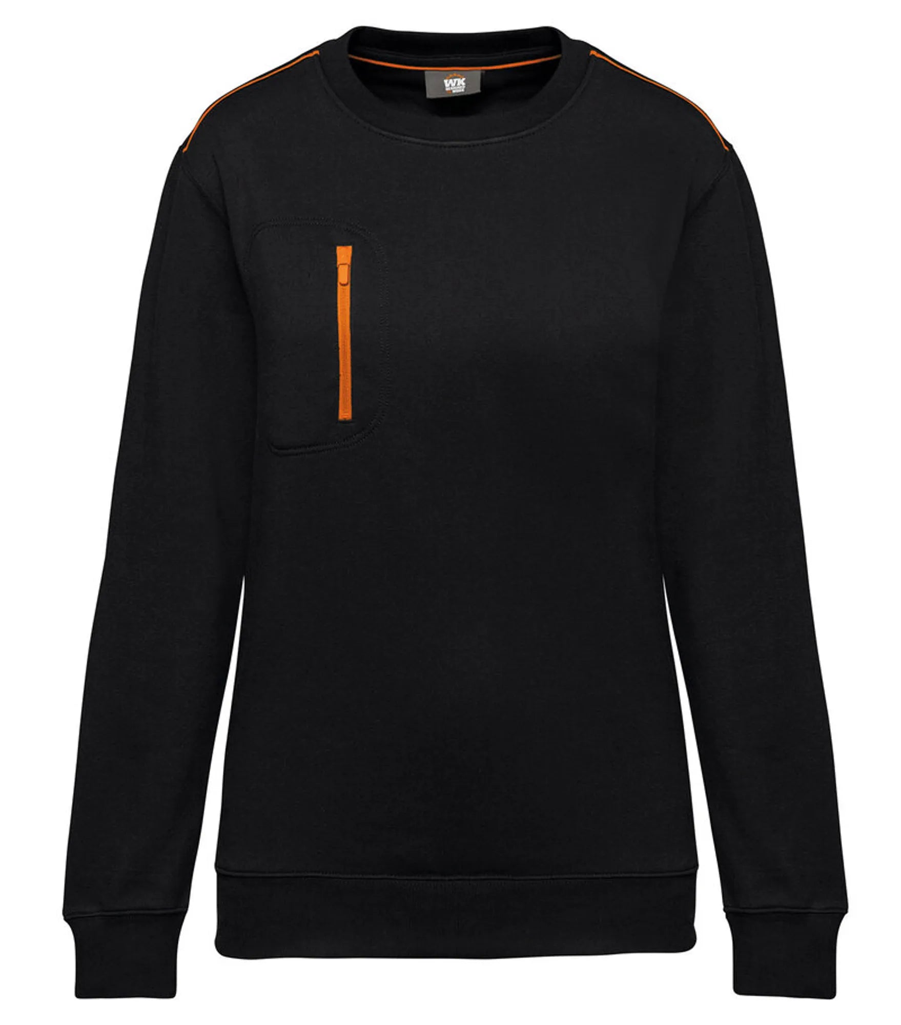 Unisex sweatshirt made of polyester and combed cotton. Brushed 3-layer fleece, LSF (Low Shrinkage Fleece). Vortex thread. Slim fit. Crescent moon at the back and inner taped neck with contrast color. 1x1 rib knit at neck, bottom hem and cuffs. Contrast color on shoulders. Chest pocket on right side with contrast colored nylon zipper. Double stitching around pocket, sleeves and cuffs. Can be washed at 60 degrees. TearAway label.