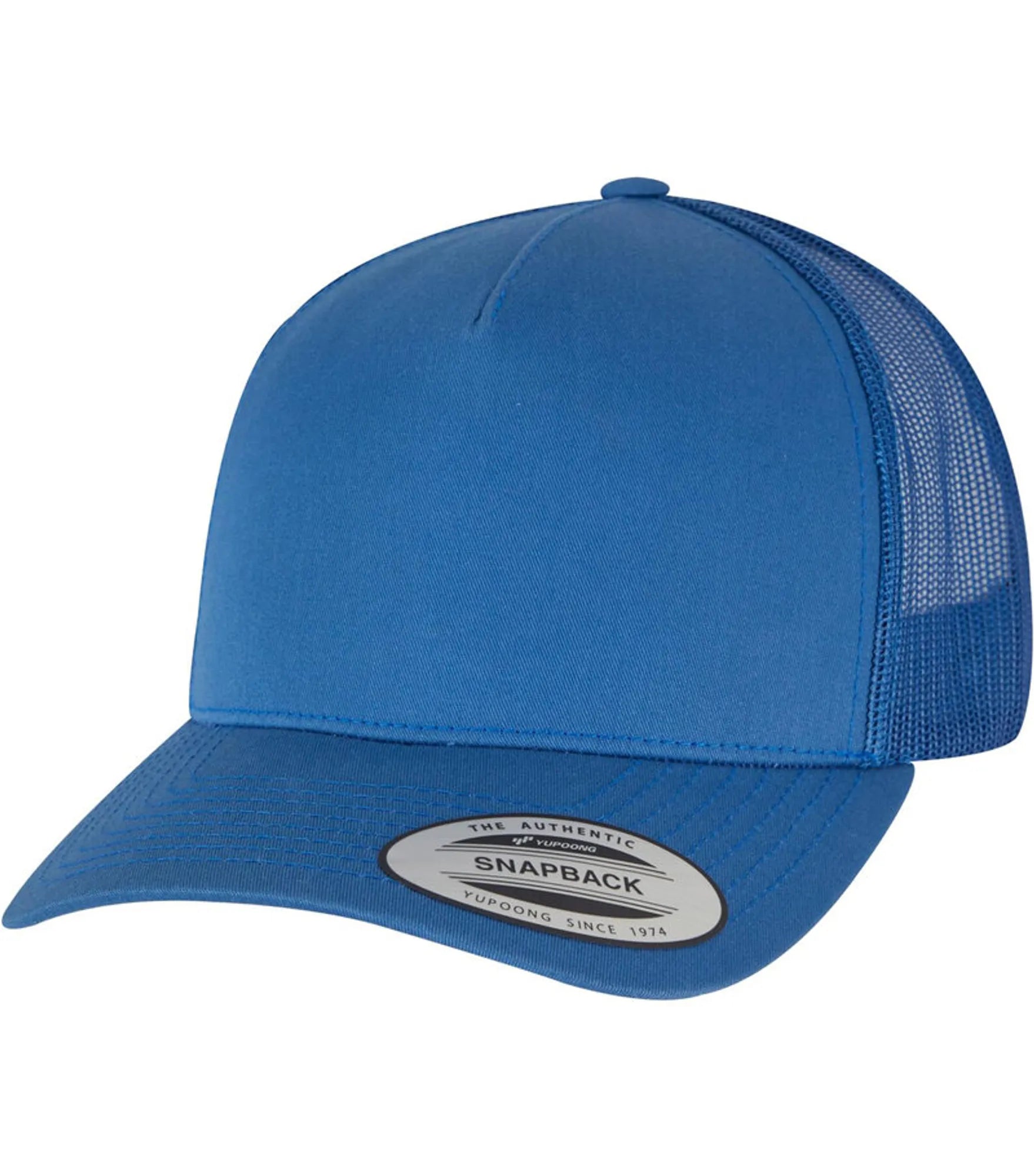Ensfarget retro truckercap med 5 paneler. Solid, forsterket front. Meshbakside med sportsaktiv 5-panelsform. Høykvalitativt bomullstwillstoff. Bøyd skjerm med matchende unerside. Justerbar snapbackspenne av plast i matchende farge.