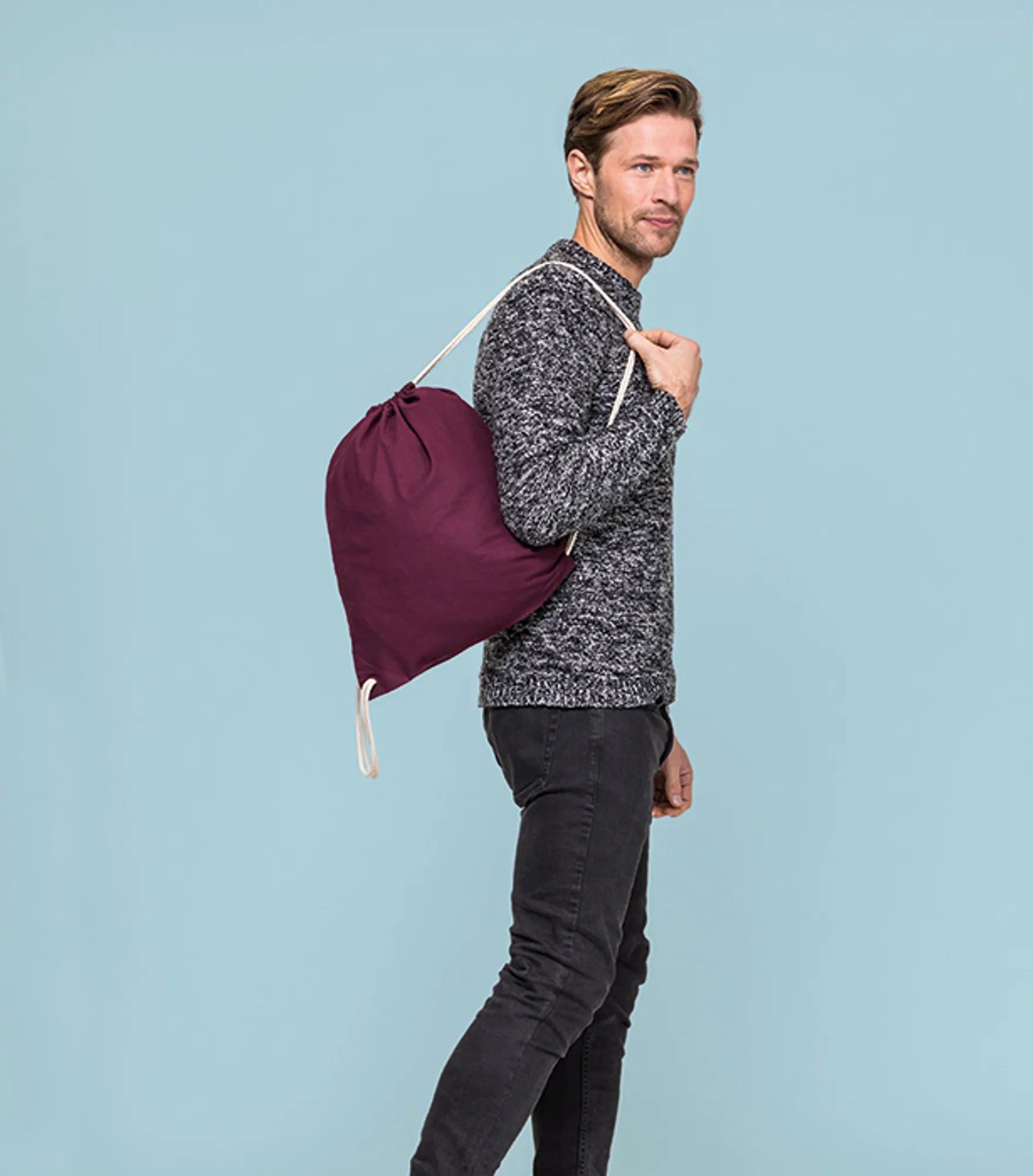 Klassisk gympose i ren bomull. Kan brukes som ryggsekk.