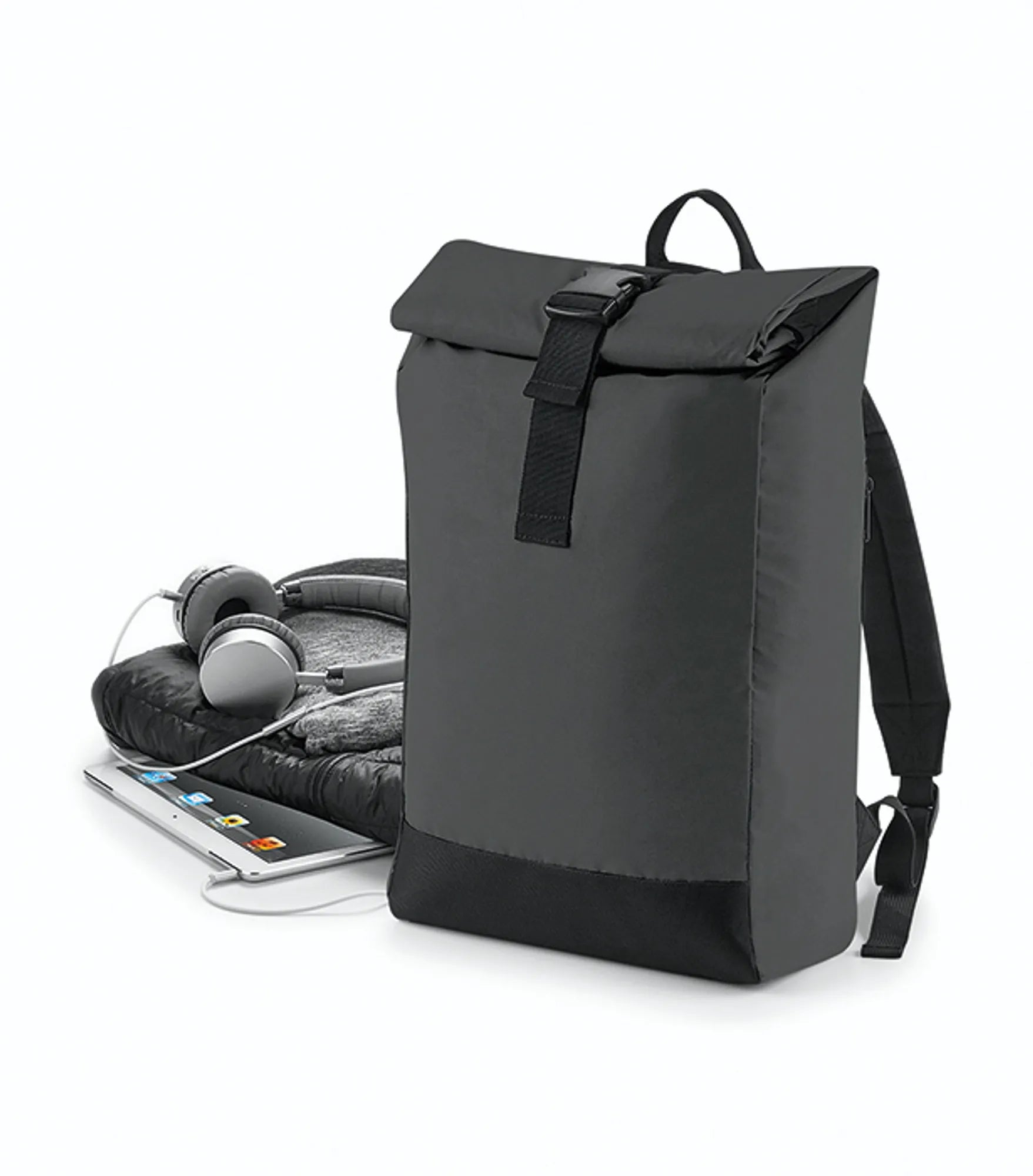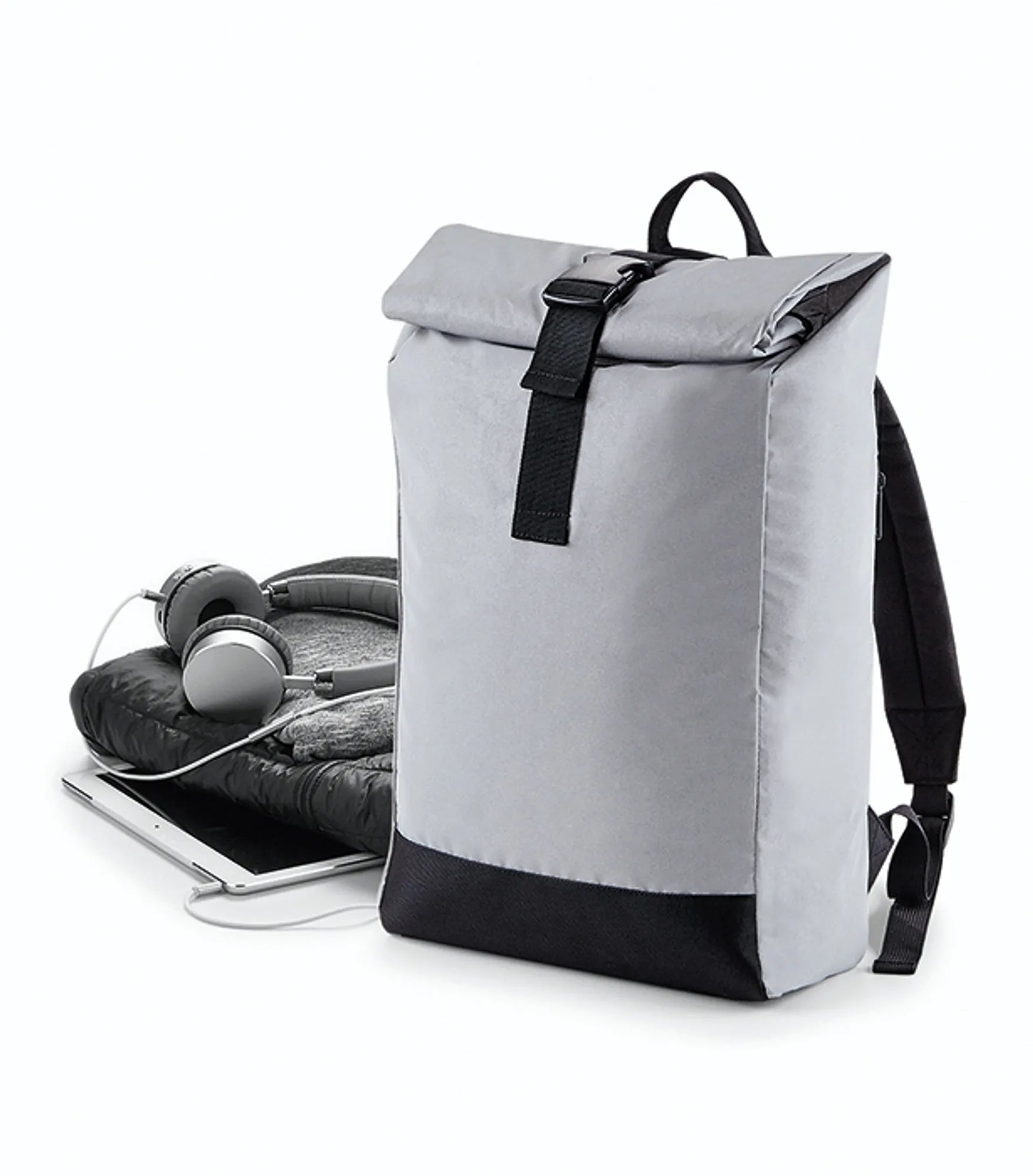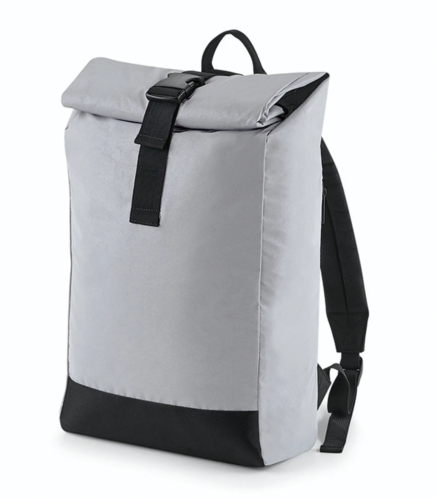 Ryggsekk med rullelukning i ”citylook”. Reflekterende ytterstoff for bedre synlighet. Stort hovedrom og utvendig lomme med glidelås. Justerbar, vatterte skuldreremmer. Bærehåndtak. Rebrandable.