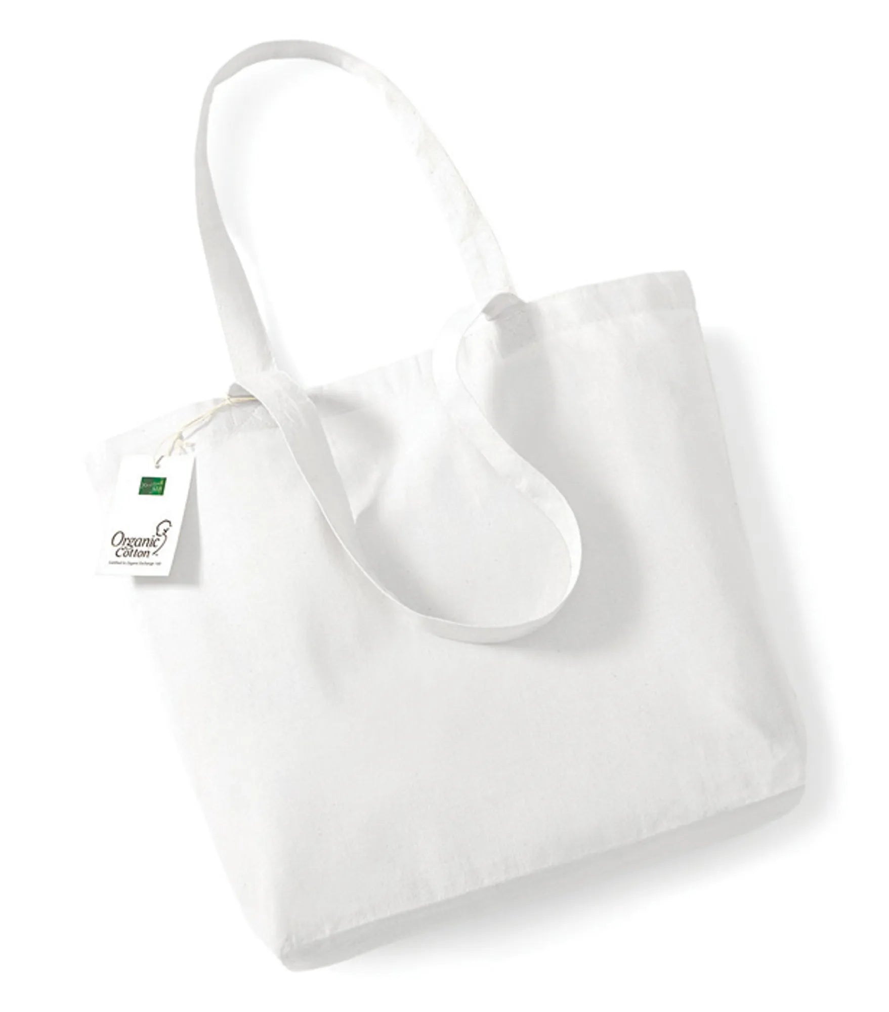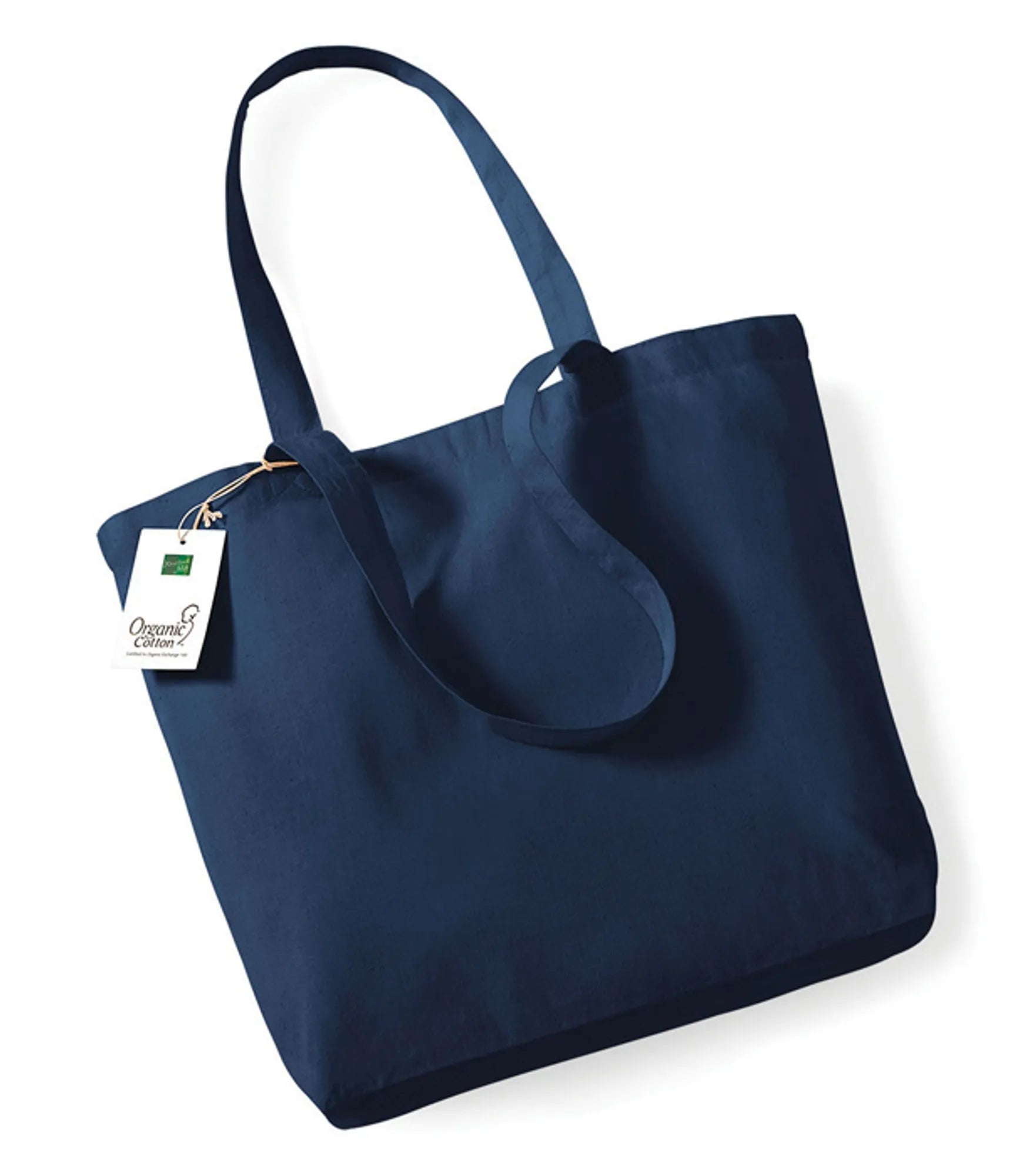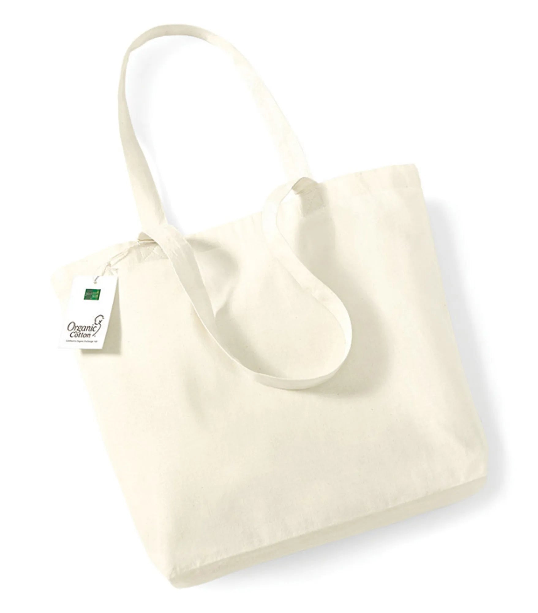 Handlenett produsert med sertifisert økologisk bomull og med bunn. Lengde på håndtak er ca. 58 cm. Kan bæres i håndtaket eller over akselen.