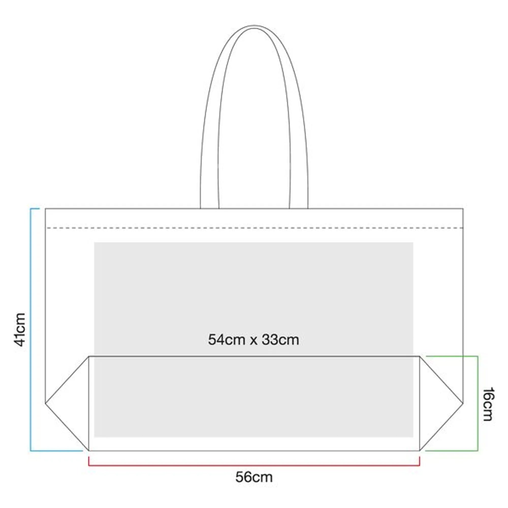 Tøyveske produsert i slitesterk canvas. Ekstra stor kapasitet og myke håndtak for maksimal komfort. Passer perfekt til strandturen. Bærehåndtakene er 61 cm. Kan derfor bæres både i hånden og over skuldrene.