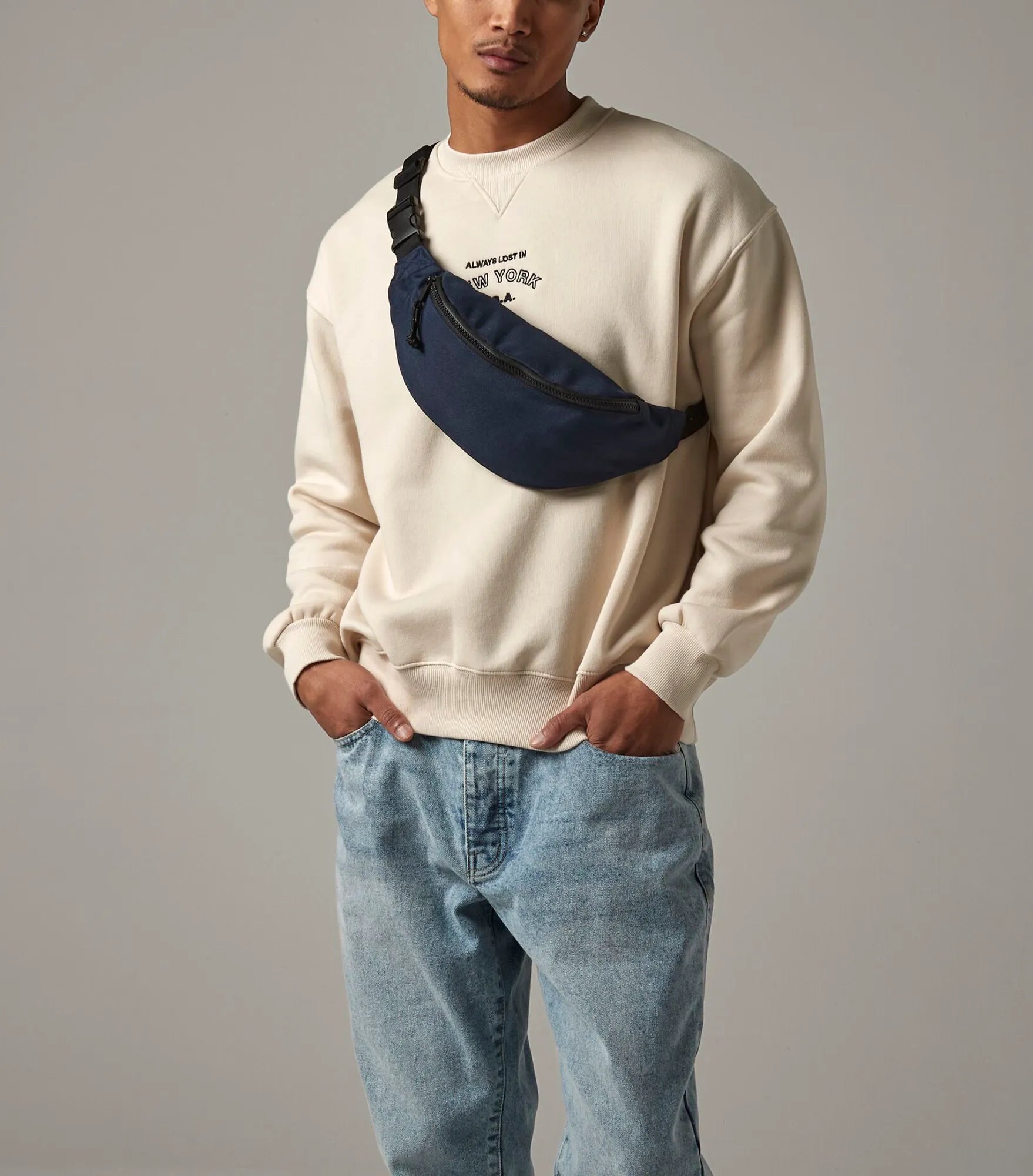 Rompetaske produsert i 100% resirkulert polyester. Stort hovedrom med reflekterende detaljer på glidelåsen. Lomme med glidelås på baksiden. Justerbart belte. TearAway etikett.