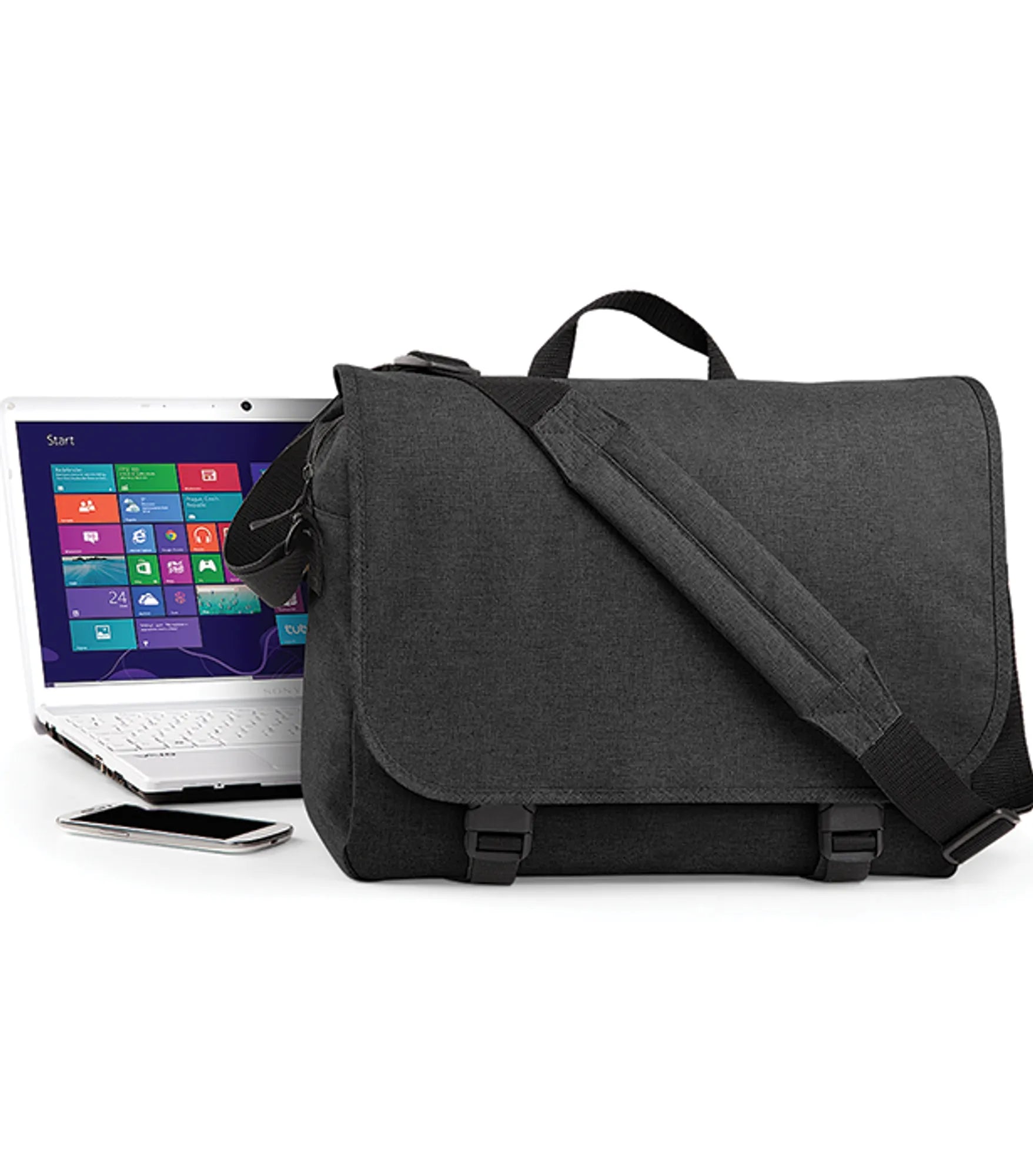 Vadderad laptop väska med ett dokumentfack. Justerbar axelrem.